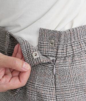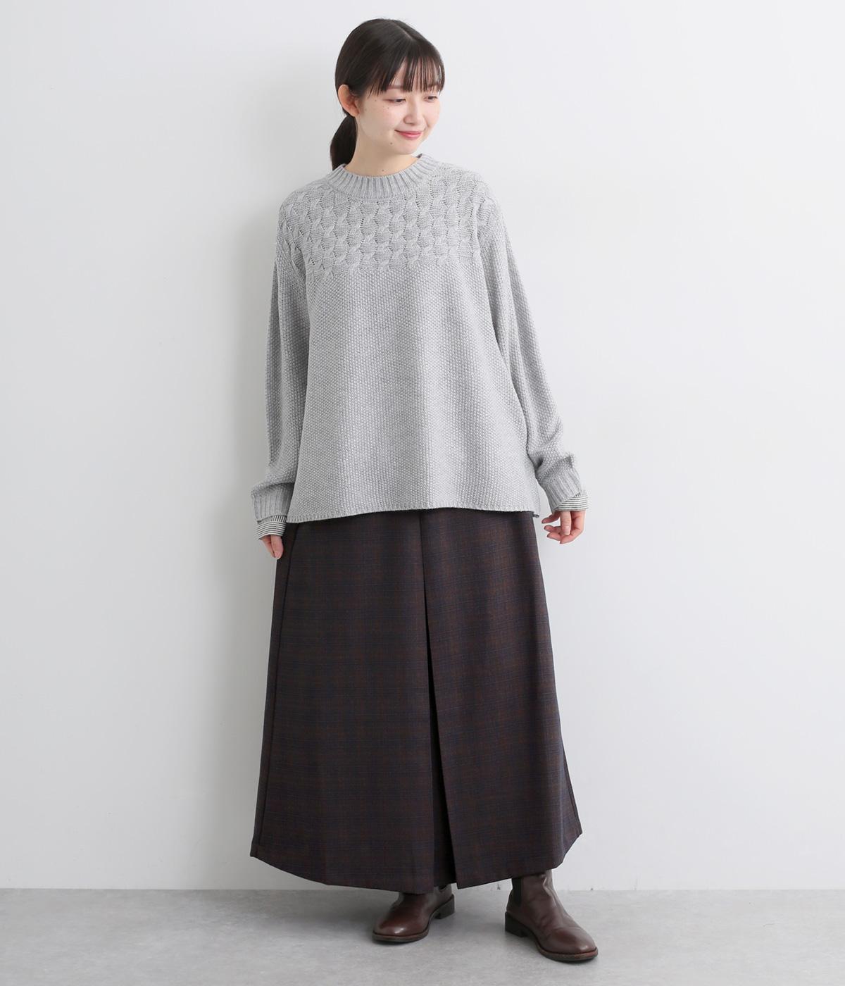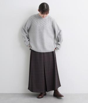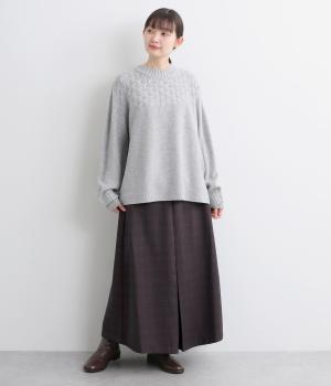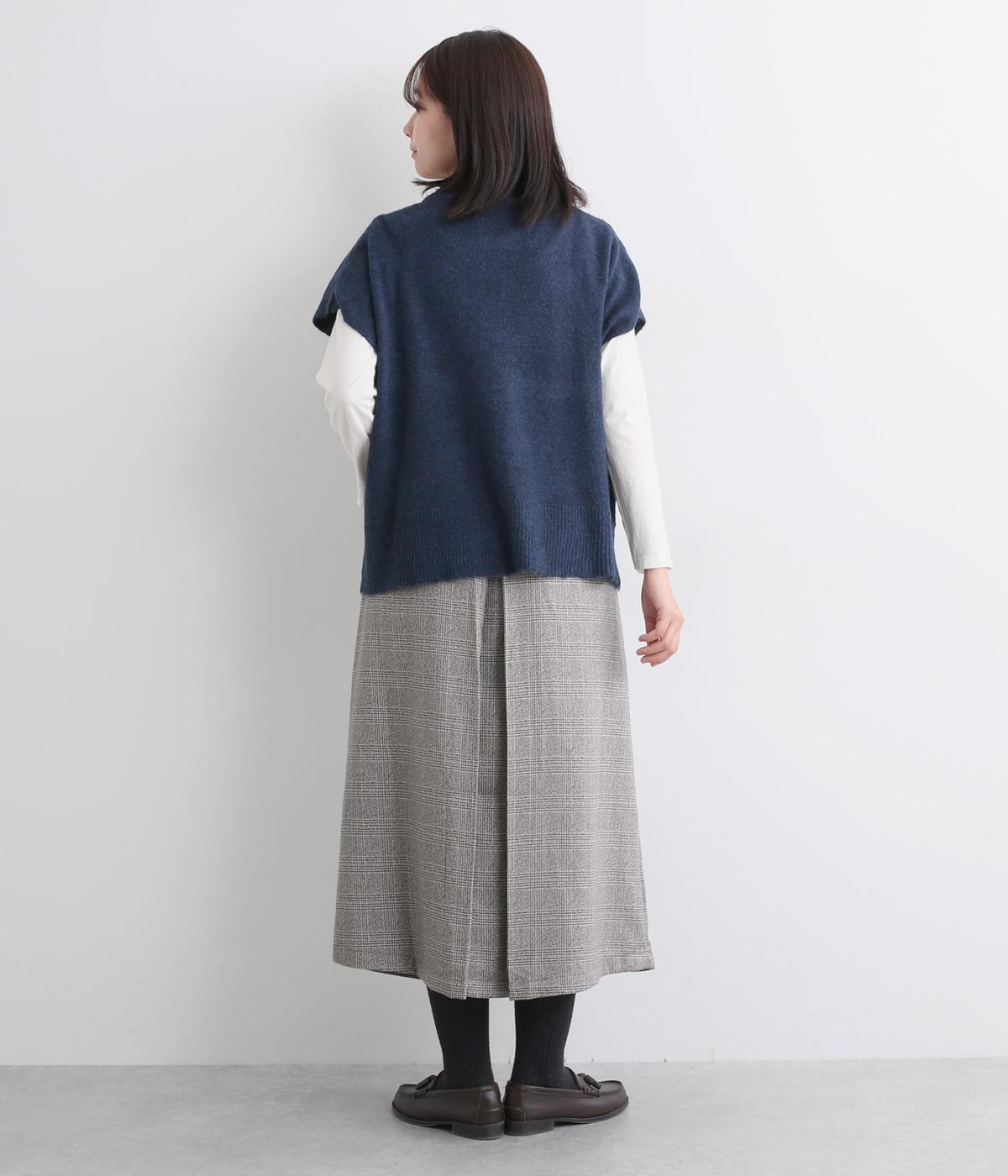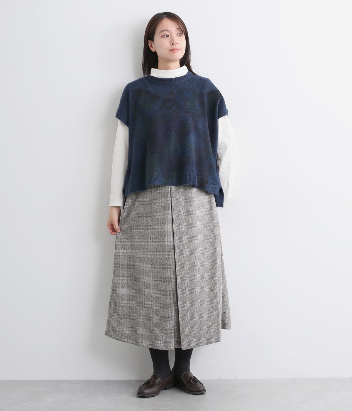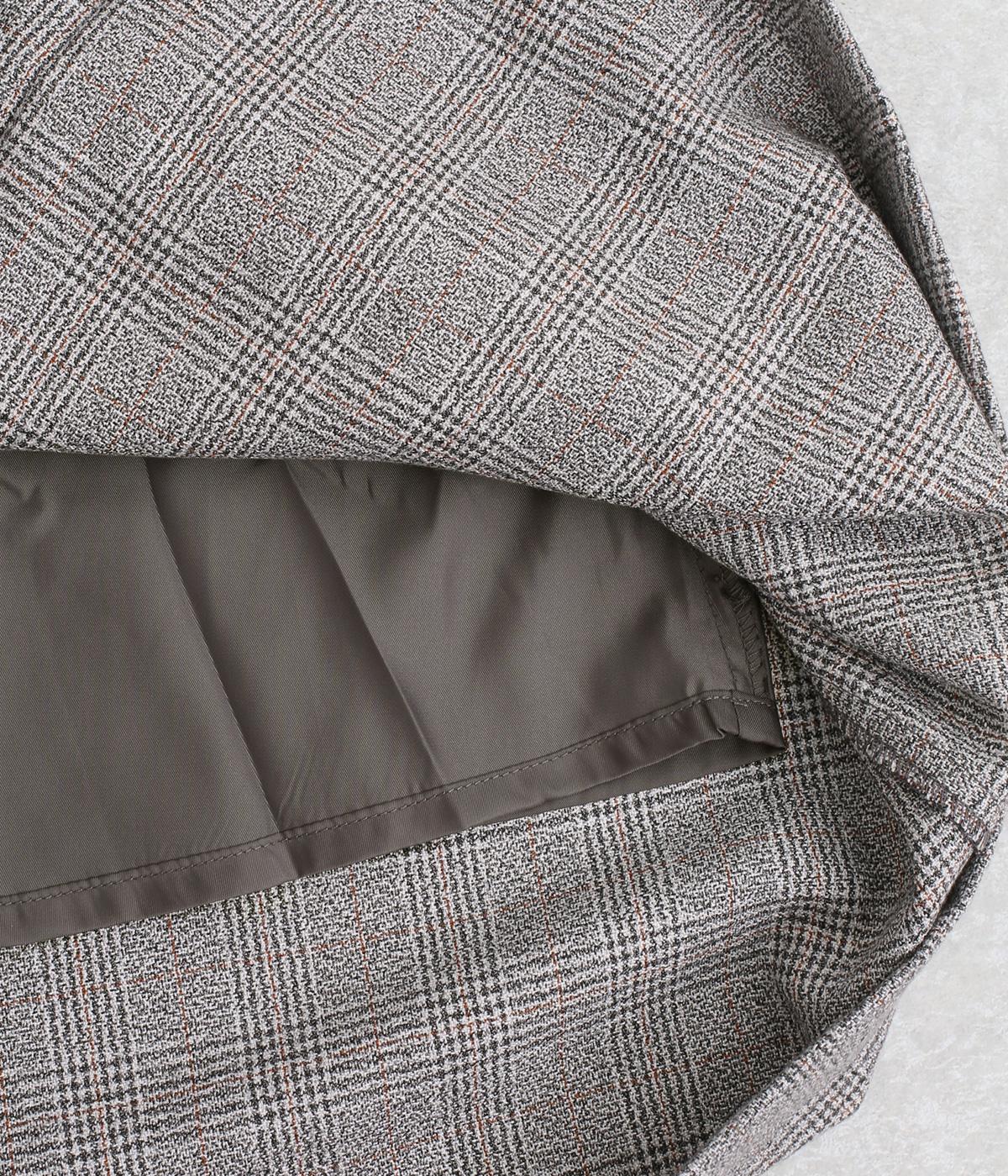 チェック柄やフロントポケットがクラシカルなロングスカート。前後に入れたタックが美しいAラインをつくります。ウエストは後ろゴム仕様でフロントまわりはすっきり。着脱しやすいサイドファスナー仕様です。