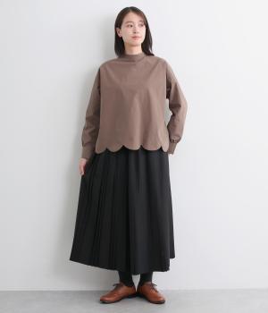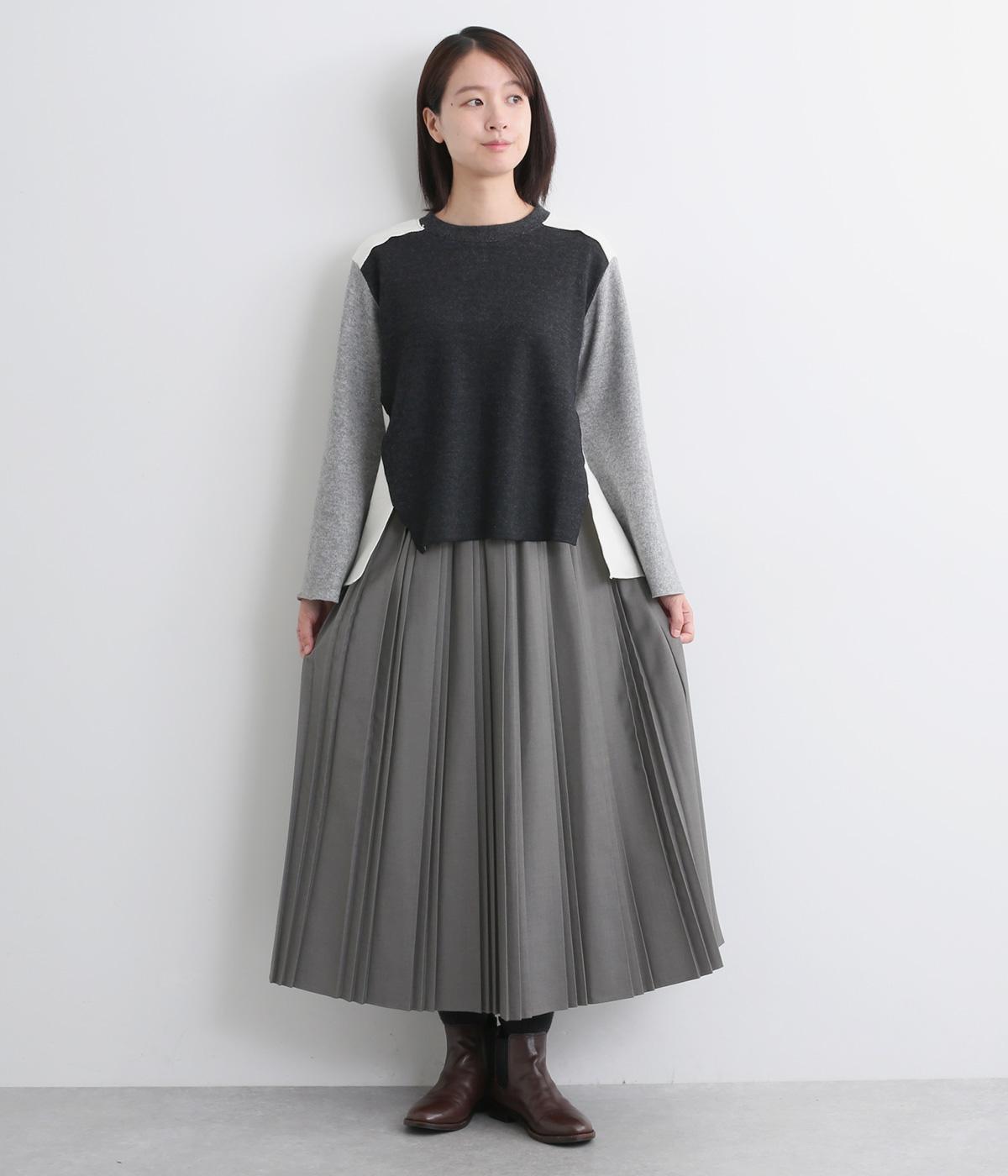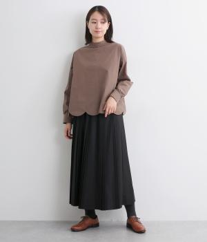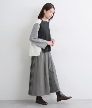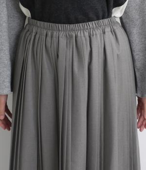 大、小、小のヒダをつけた「親子プリーツ」のスカート。動くたびに生まれる立体感が、女性らしさを演出します。かっちりしたデザインですがウエストは総ゴムで優しいフィット感。幅広いアイテムと好相性なスタメンアイテムです。
