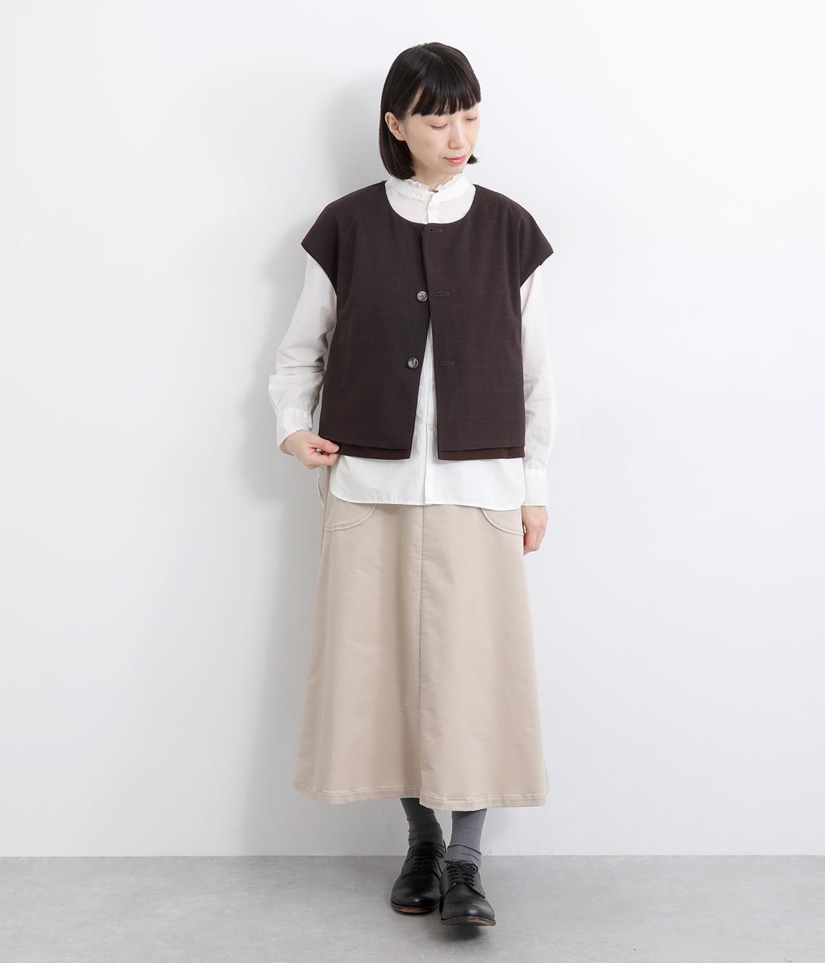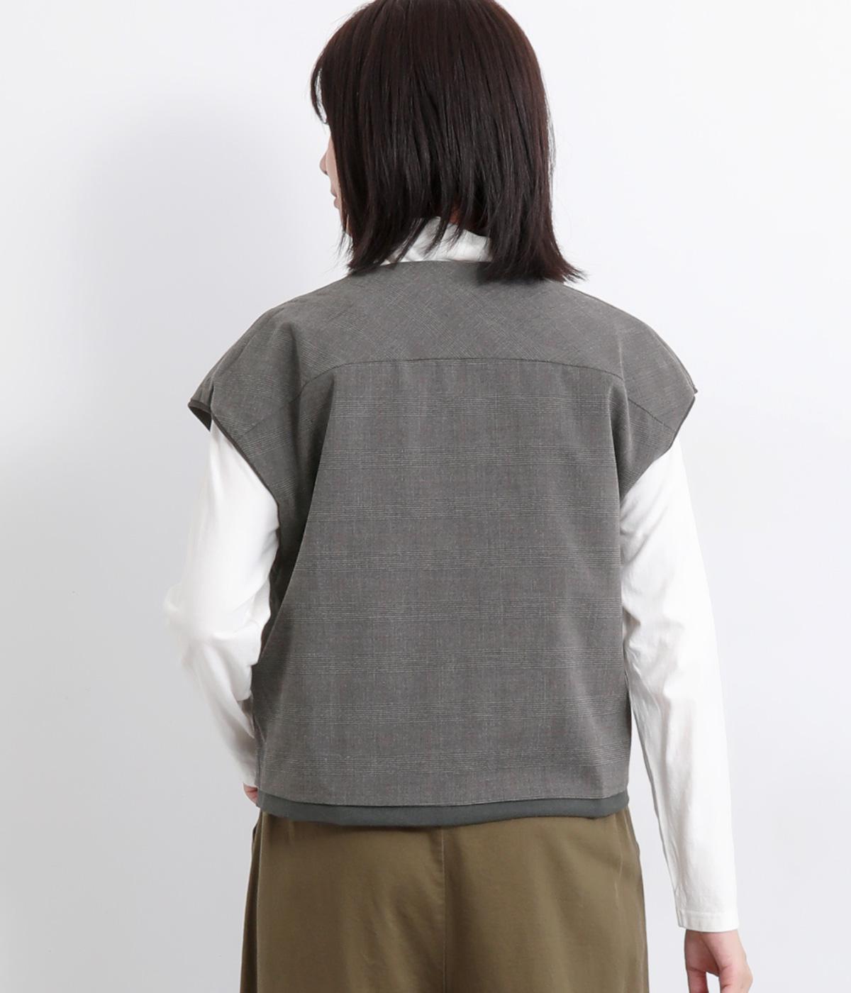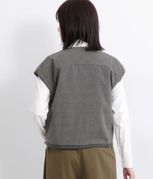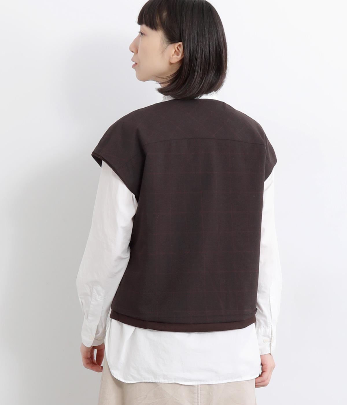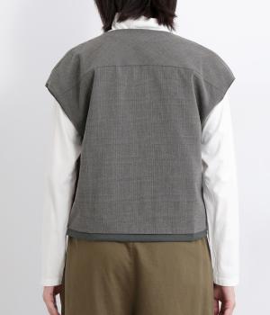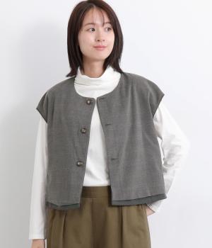 その日のコーディネートに合わせて無地もチェック柄もたのしめるリバーシブルベストです。肩はあえて落とすことできちんとした印象を和らげ、デイリー使いしやすく仕立てました。大きめボタンもレトロ&クラシカルな雰囲気です。