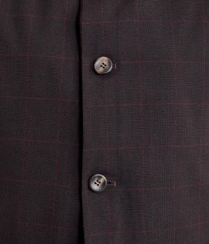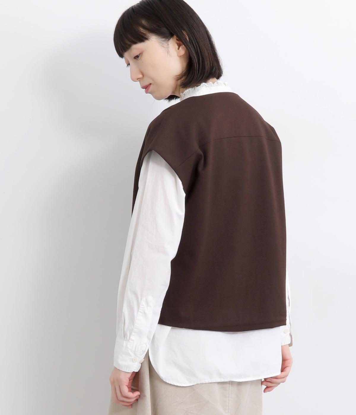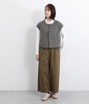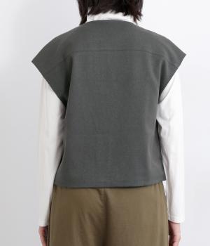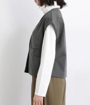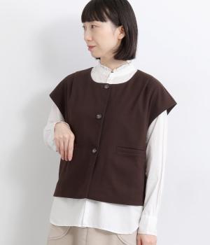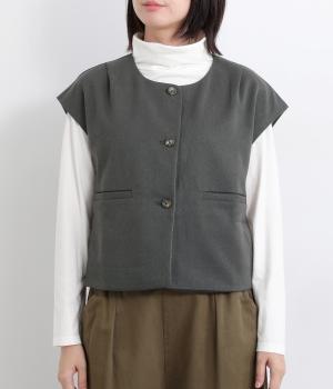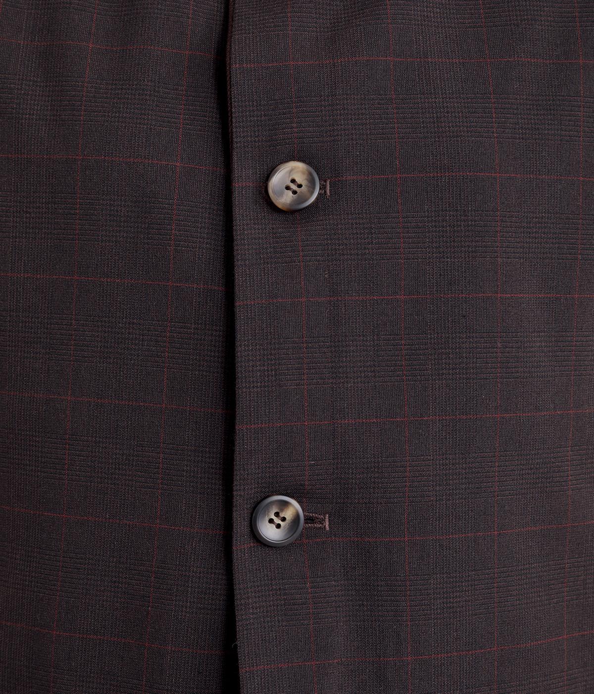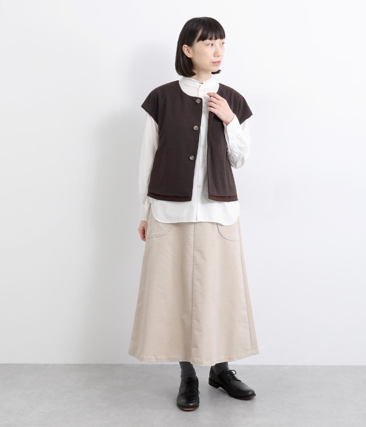 その日のコーディネートに合わせて無地もチェック柄もたのしめるリバーシブルベストです。肩はあえて落とすことできちんとした印象を和らげ、デイリー使いしやすく仕立てました。大きめボタンもレトロ&クラシカルな雰囲気です。
