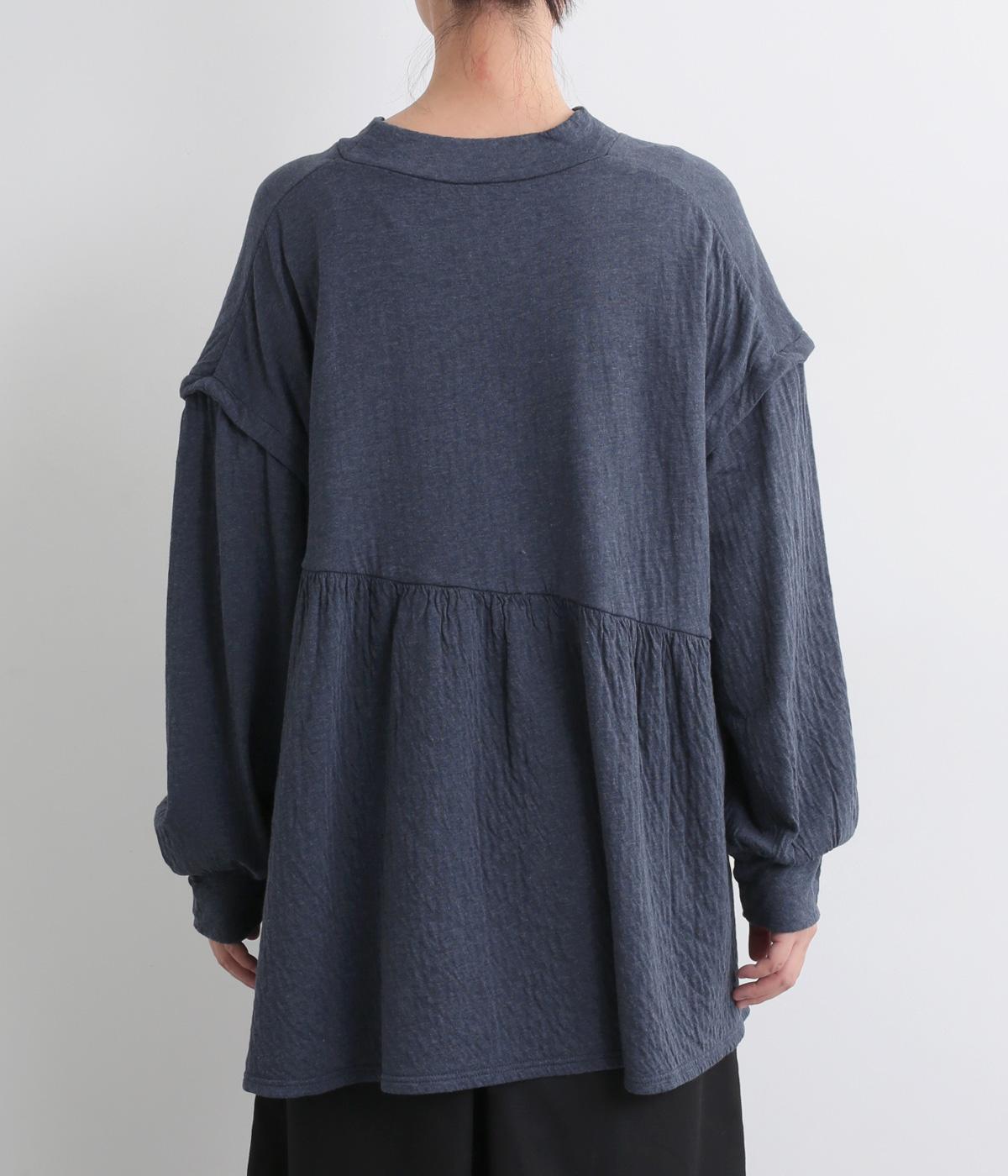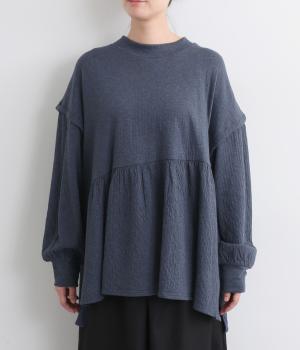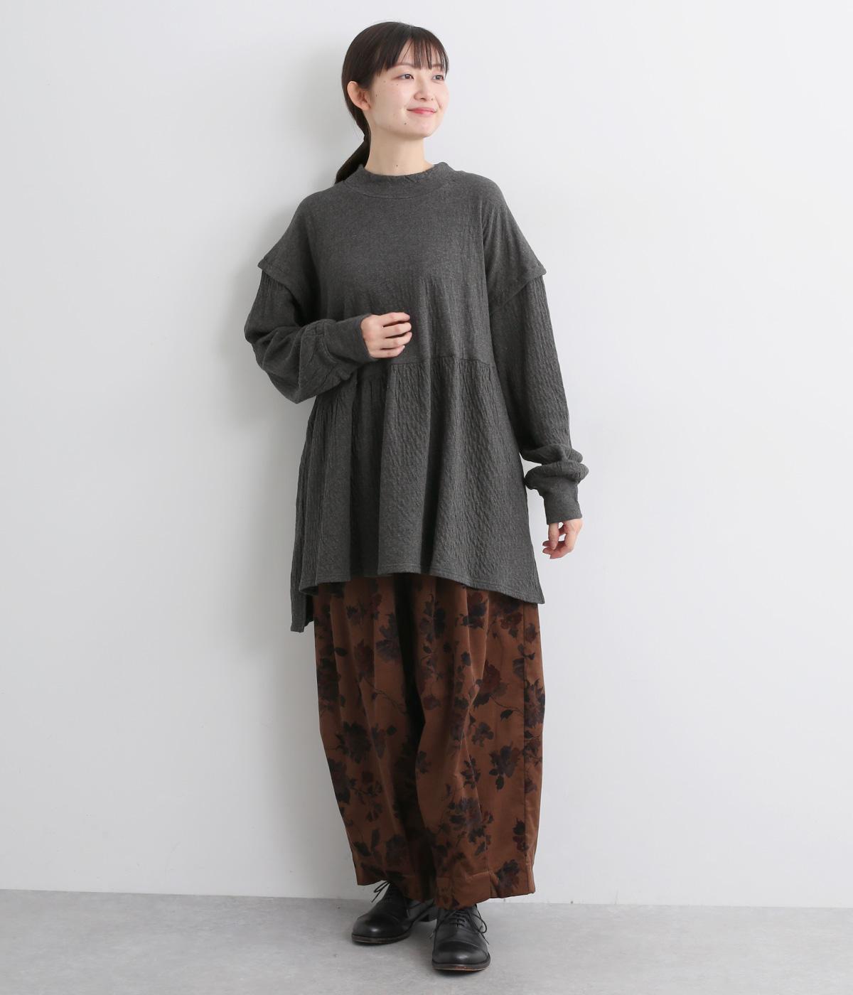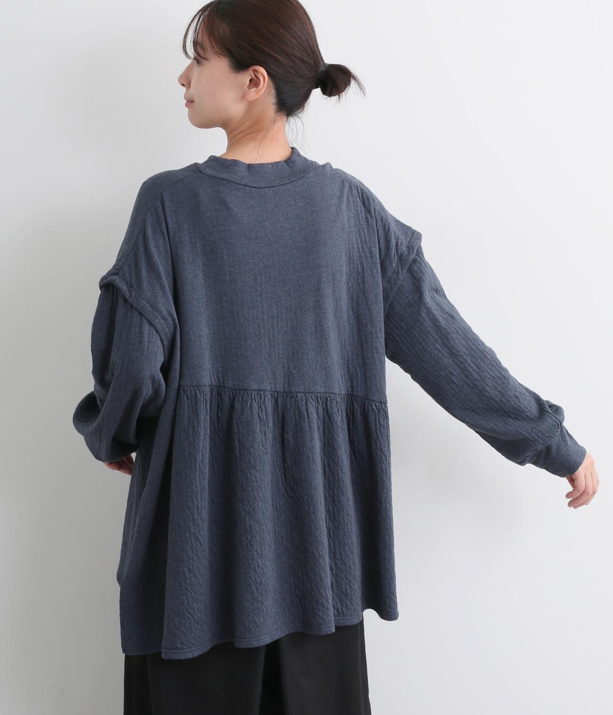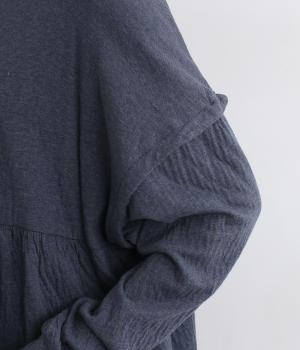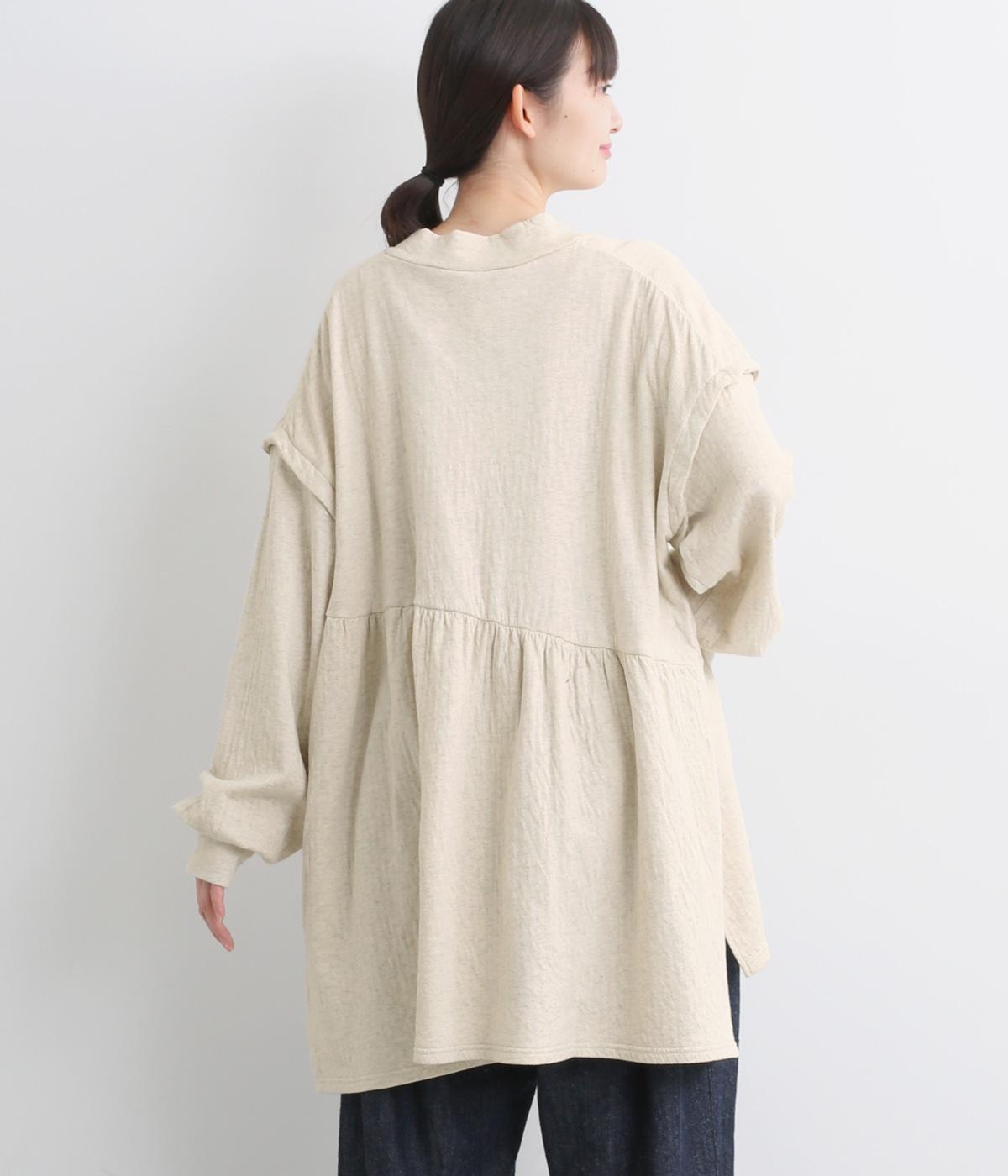 肩にアクセントをつけたドロップショルダーや、ほどよいハイネックで品のよさを演出。ウエストからのギャザーによる美しいドレープが、お腹まわりのカバーも叶えてくれます。シンプルながら細やかなディテールが光る、こだわりの1枚です。