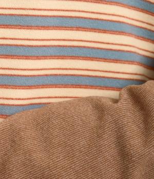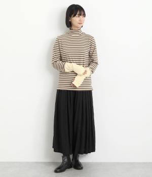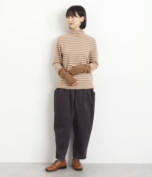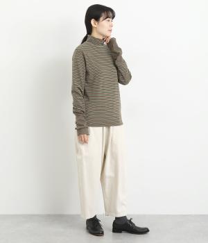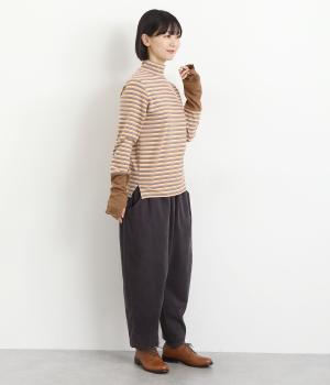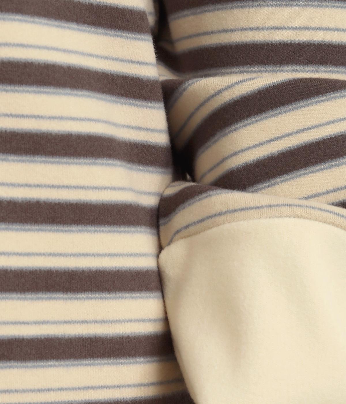 ほわほわとしたやさしい表情やもっちりとしたやわらかな肉感が特徴的な混紡生地を使用。無地とボーダー柄に切り替えてメリハリをつけています。