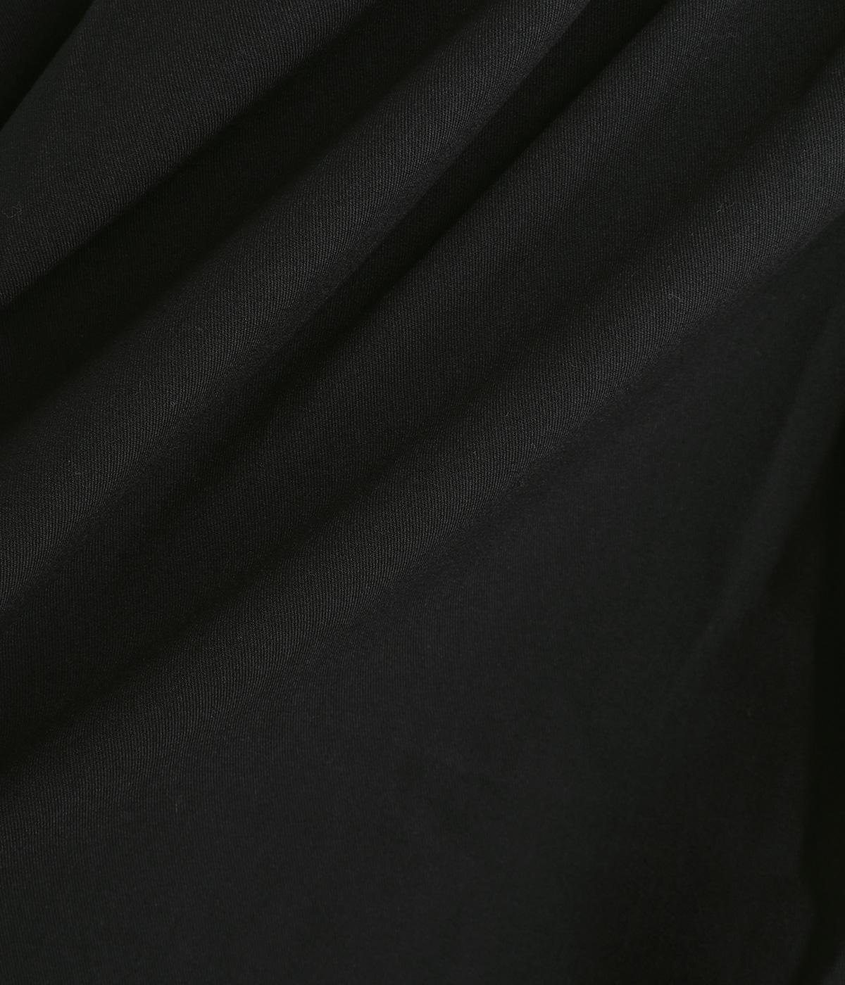ほんのりと光沢のある表面感が美しく、適度に落ち感のある混紡生地を採用。ポリエステルをベースにしているので軽やかさがあり、レーヨンやポリウレタンによってやわらかな質感にまとめました。