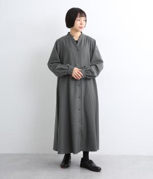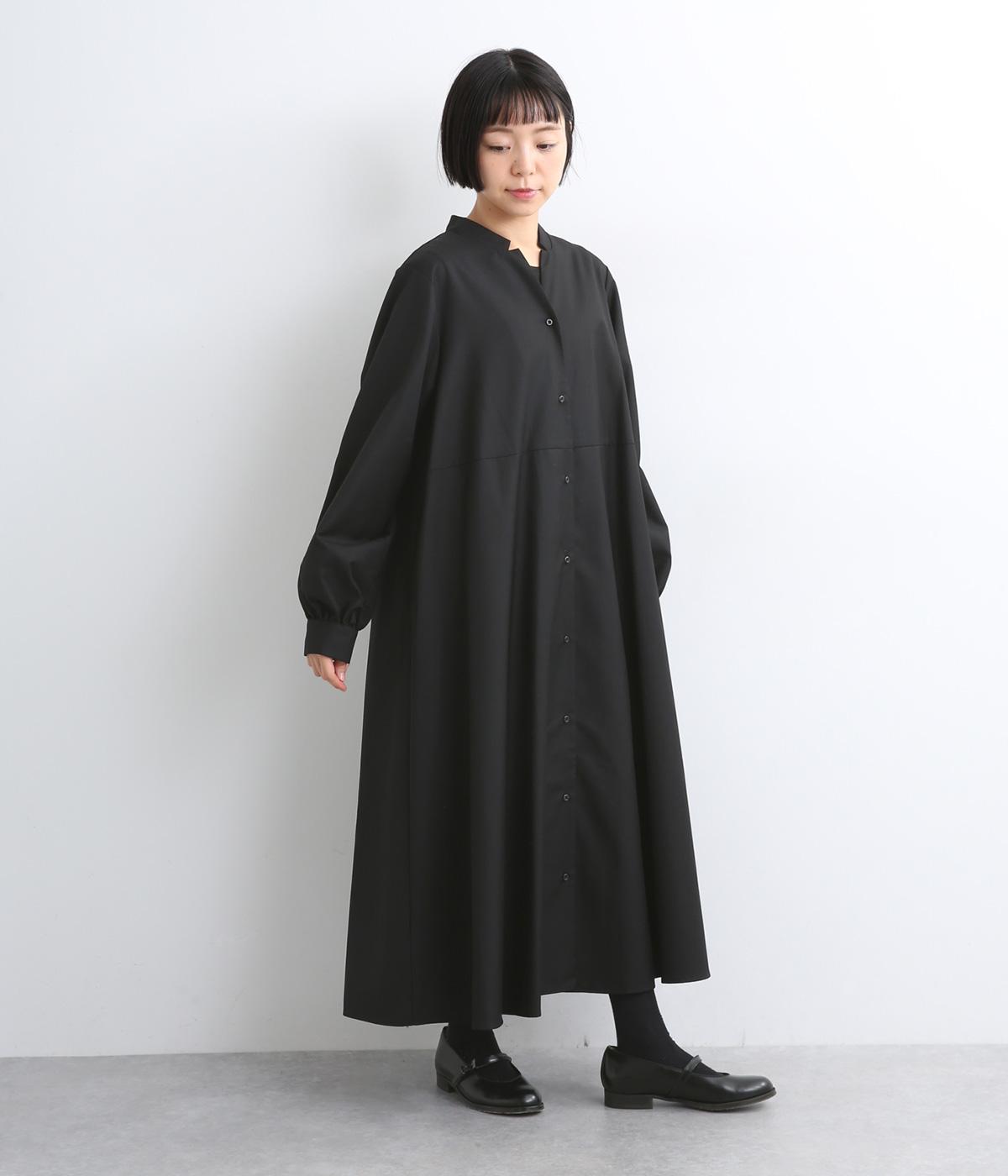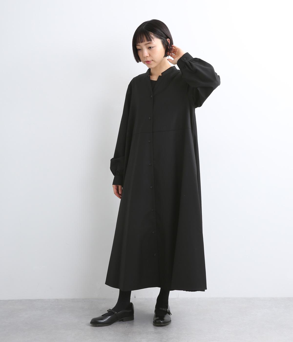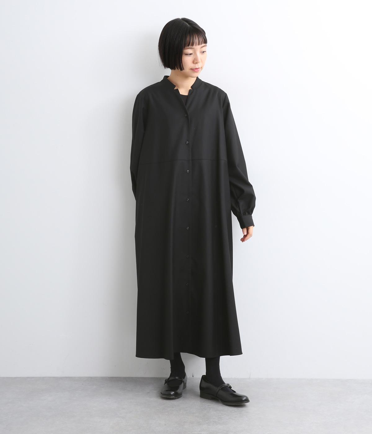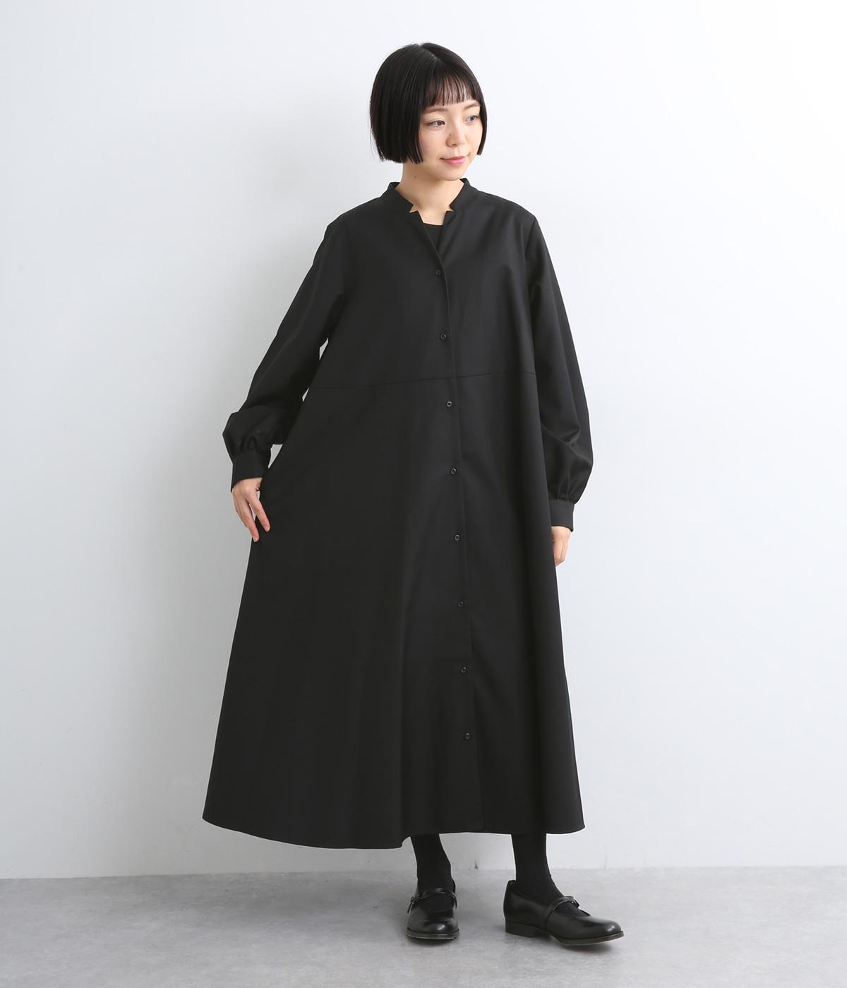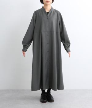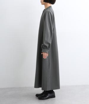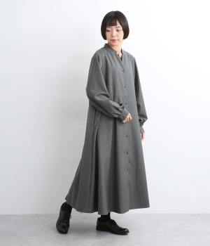 ラペルのようなカッティングをほどこした襟のデザインがポイントの、上品なワンピース。きちっと感を演出しつつ、首ぐりのあき具合で適度に抜け感をプラス。落ち感のある素材が動くたびに揺れて、ドレープが優雅さを惹きたる特別感のある一着。
