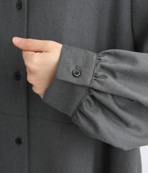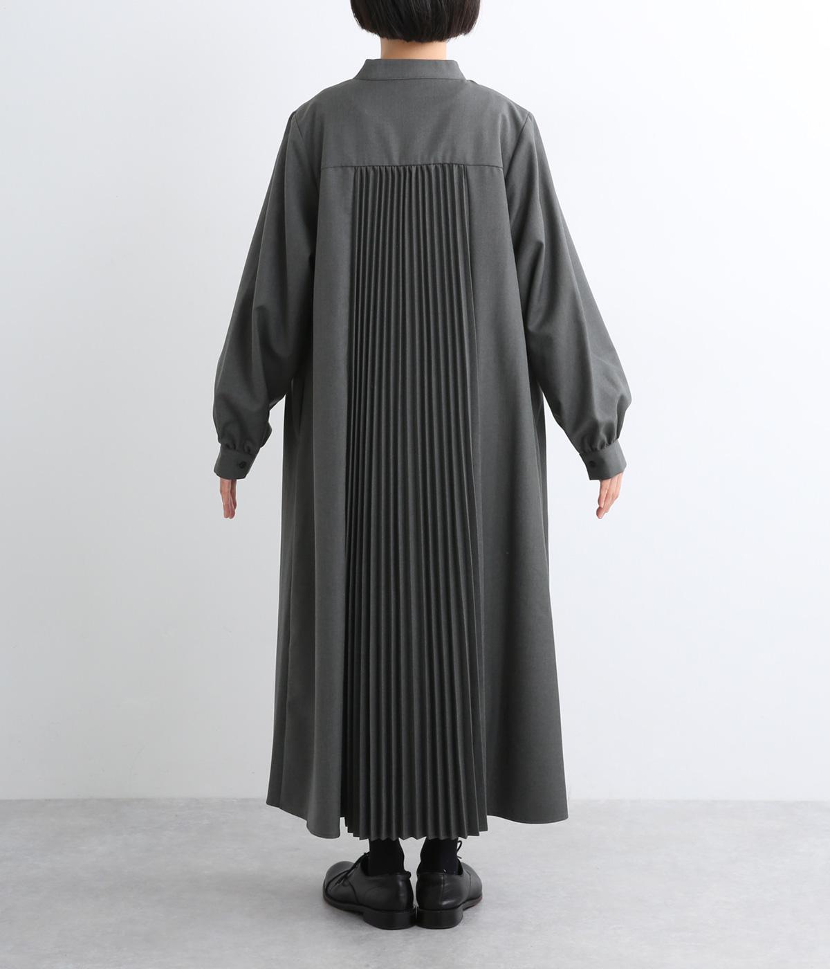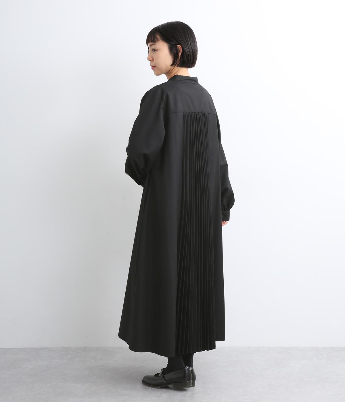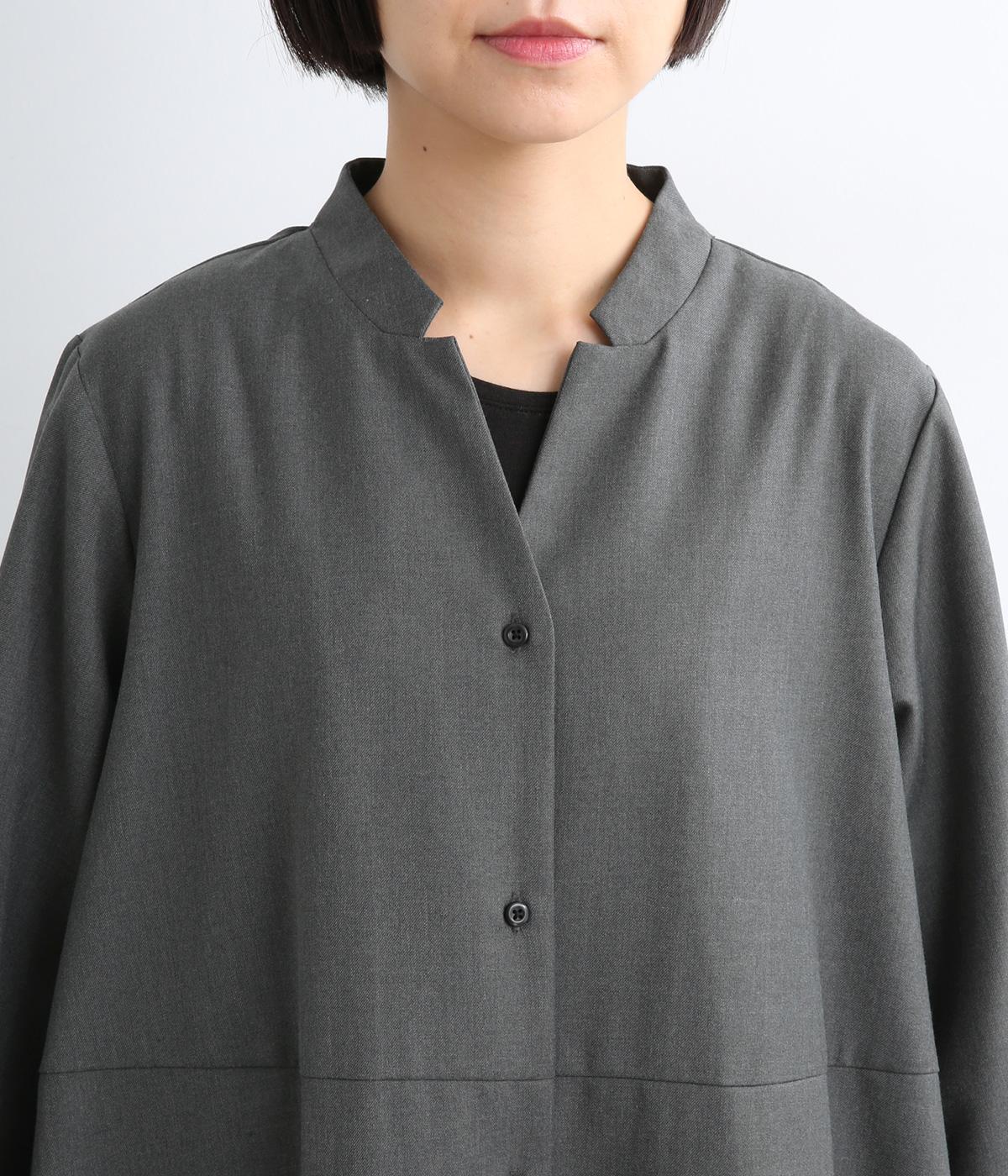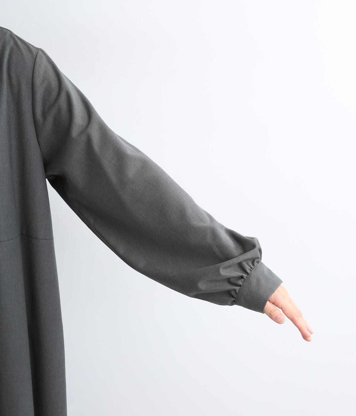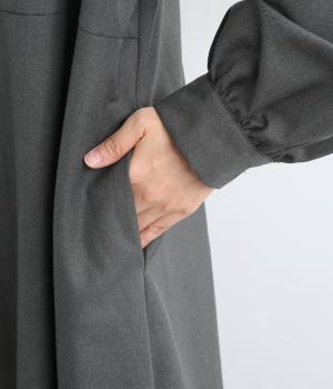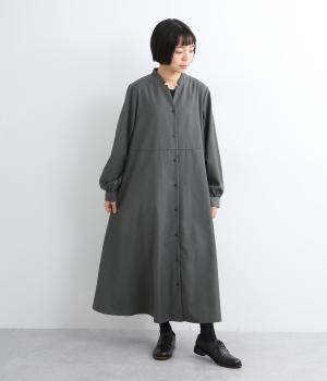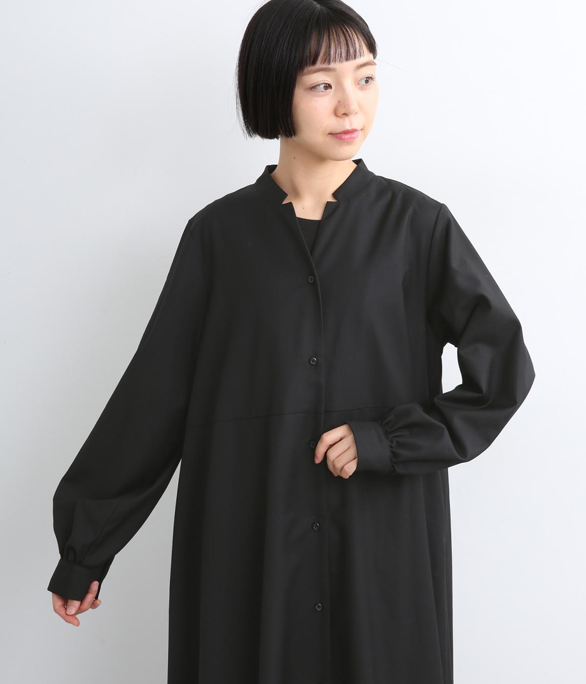ラペルのようなカッティングをほどこした襟のデザインがポイントの、上品なワンピース。きちっと感を演出しつつ、首ぐりのあき具合で適度に抜け感をプラス。落ち感のある素材が動くたびに揺れて、ドレープが優雅さを惹きたる特別感のある一着。