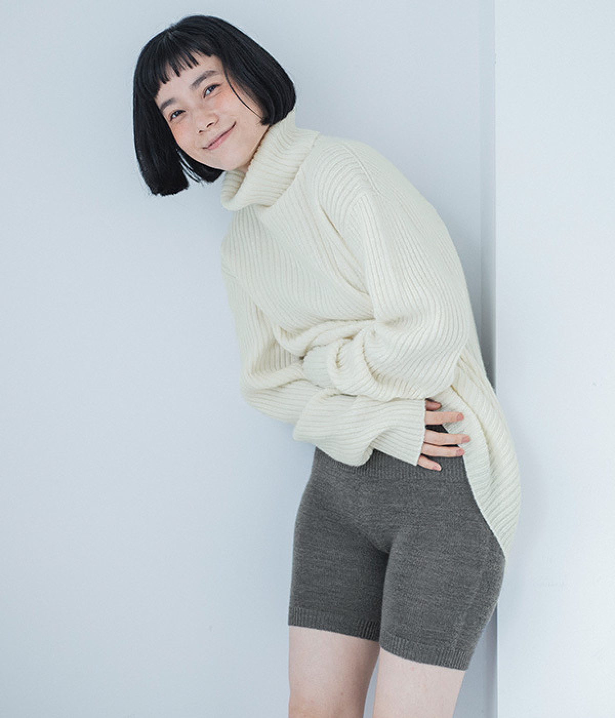 お腹とお尻をすっぽり包み込み、からだを冷えから守ってくれるはらぱんです。肌あたりなめらかなシルクと、天然素材の中でも圧倒的に保温性に優れたウールにこだわりました。ウールは、世界のウール生産量のうち、わずか0.05%しか生産されていない「メリノオプティモ」を使用。チクチク感がなく、表面が均一に仕上がるのが特徴です。ホールガーメントという特殊技術で立体的に編み立て、突っ張り感のない着用感に仕上げています。ワンサイズですがとてもよく伸びるため、様々な体型の方の身体にやさしくフィットします。