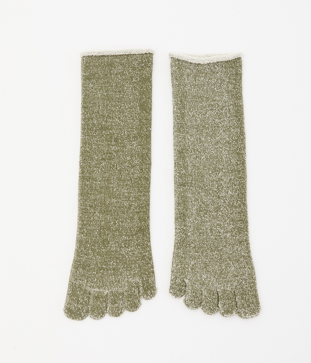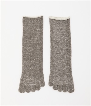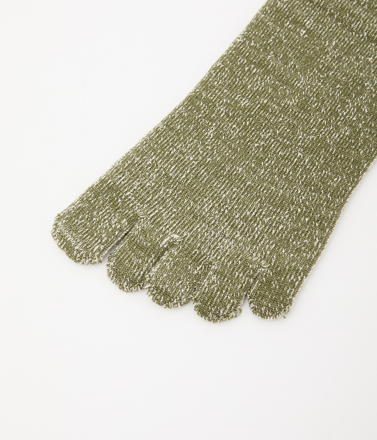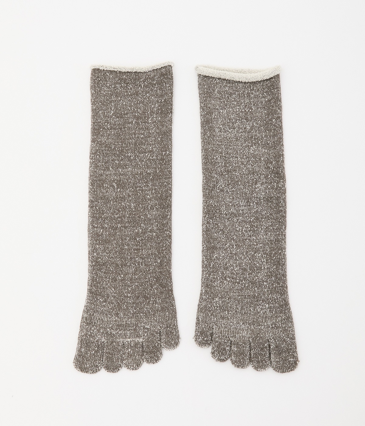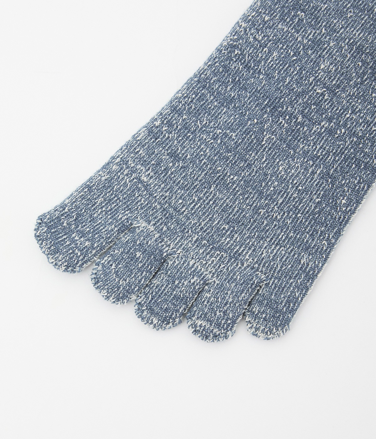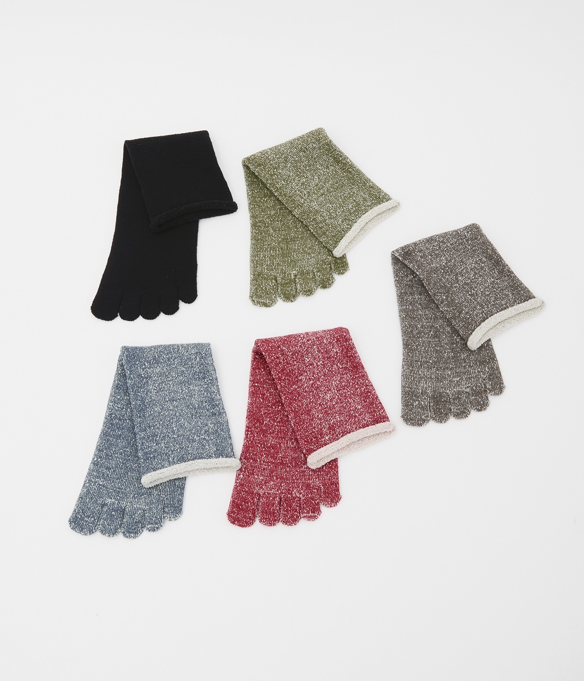切りっぱなし風のくるりと丸まったはき口が可愛らしい靴下です。歩行時にしっかりと指先に力を入れやすい5本指仕立てで、指と指の間の汗も吸湿しやすく着用感も快適です。アウトドアなどアクティブシーンも頼れる一足になります。