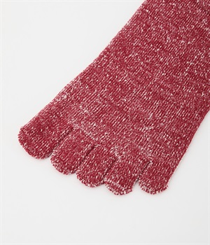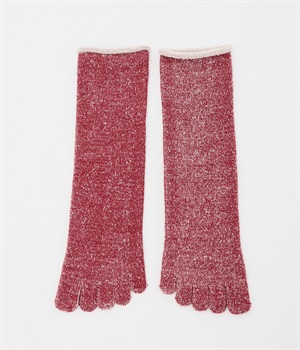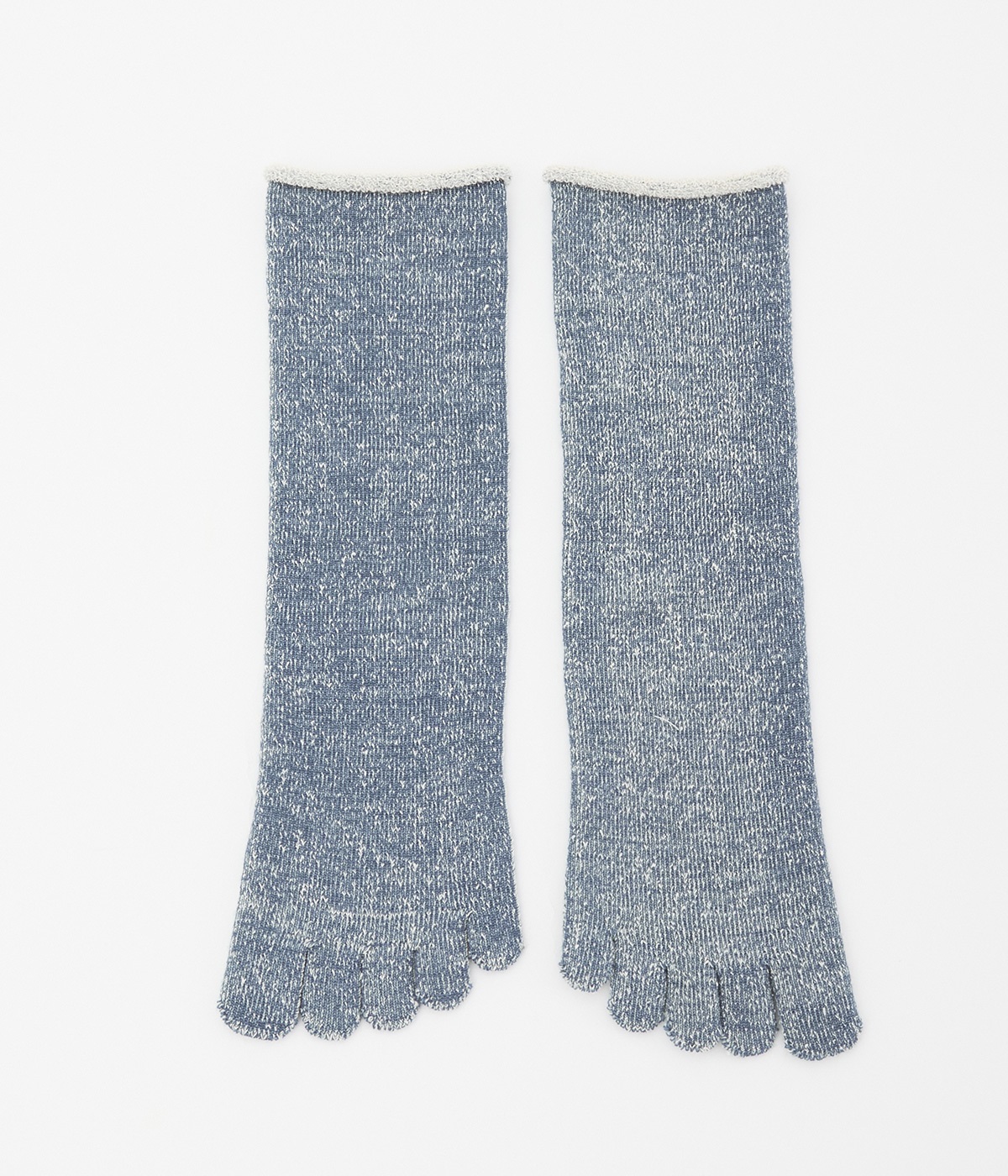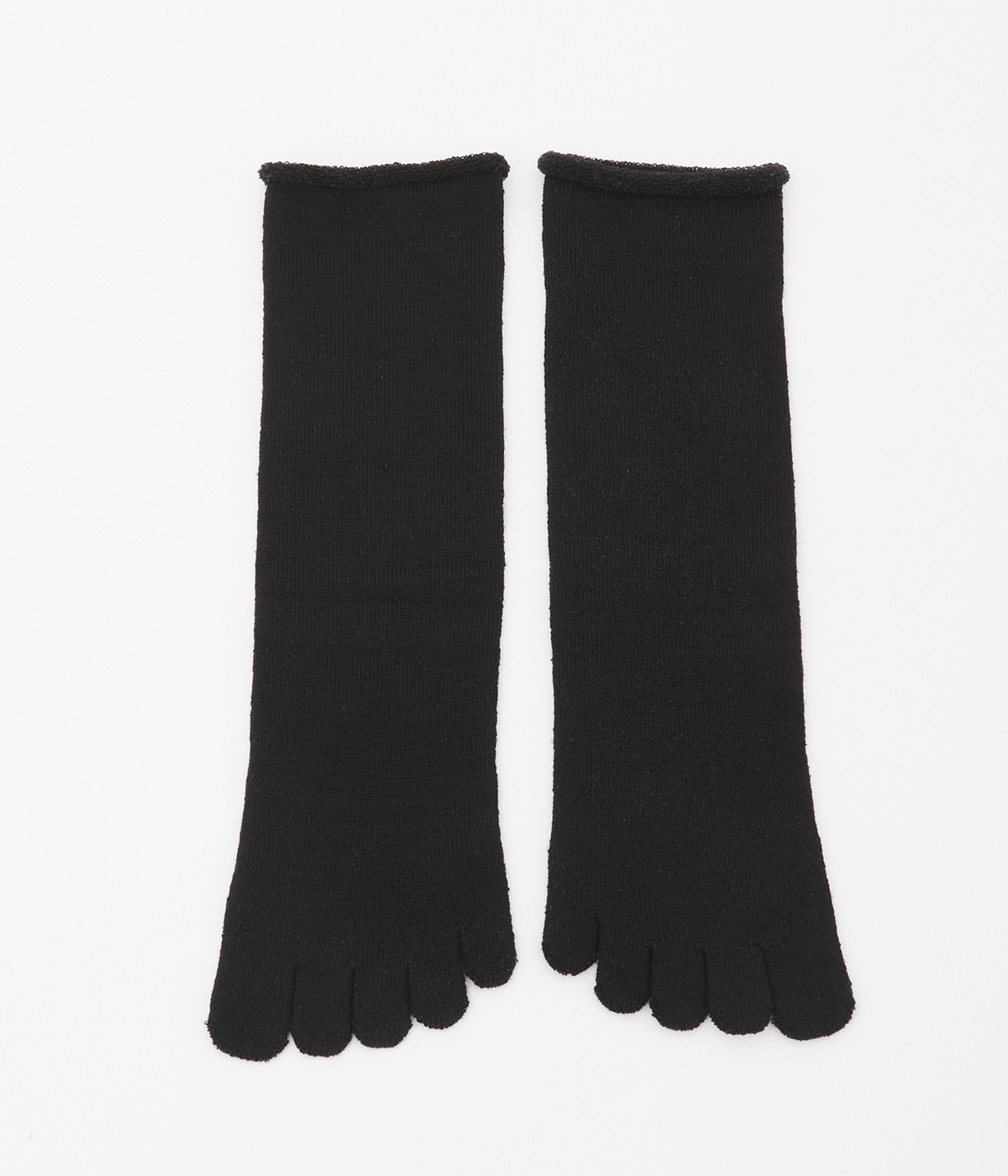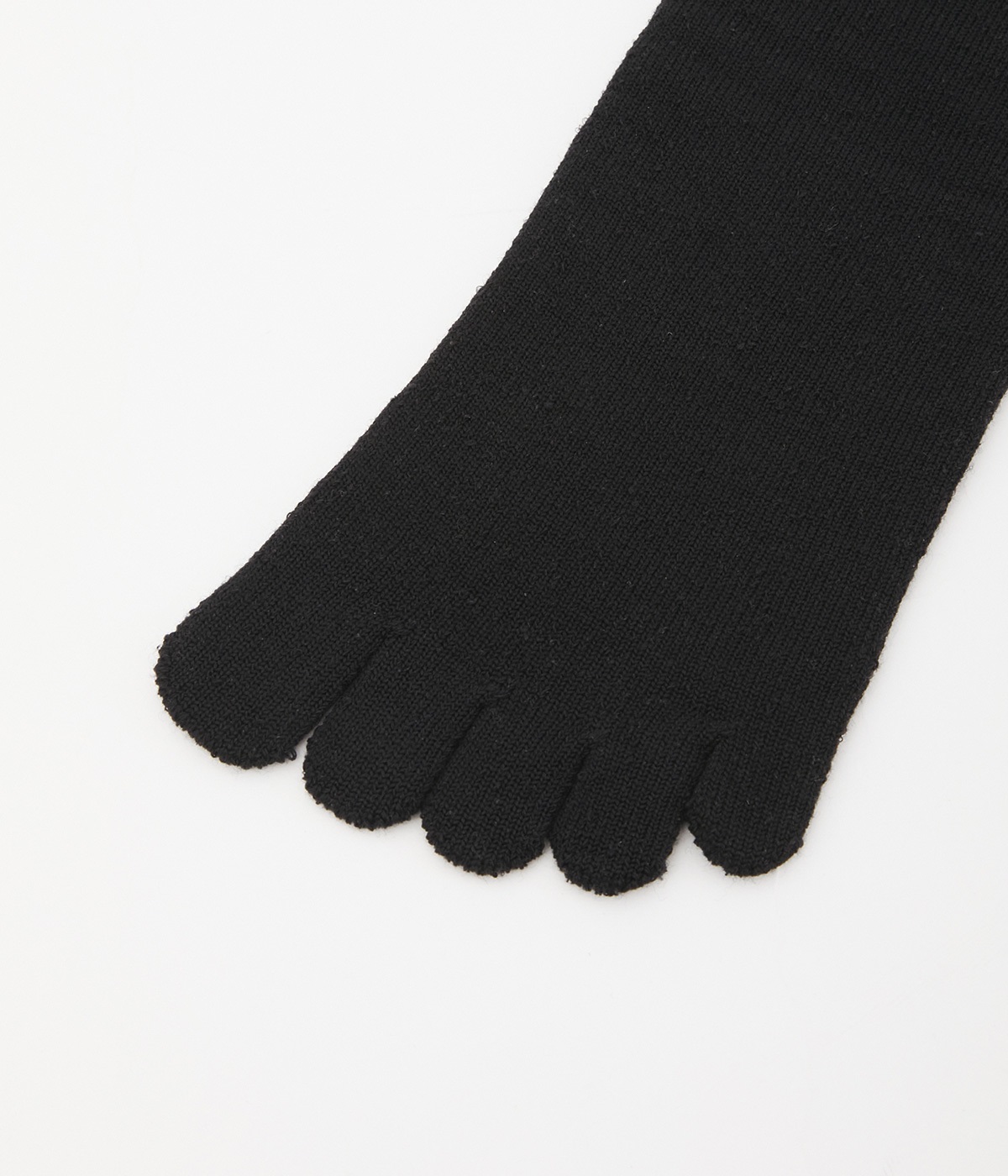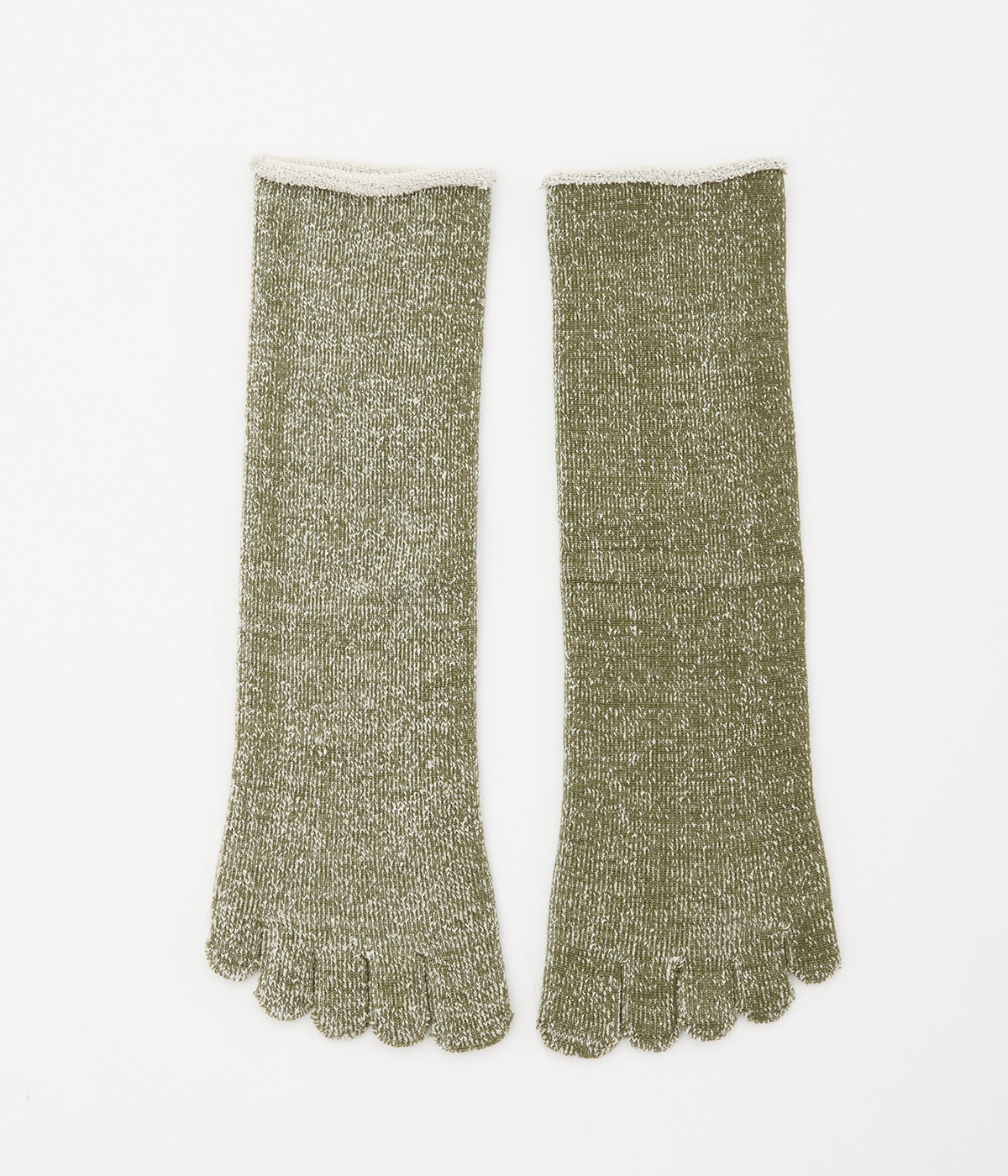 切りっぱなし風のくるりと丸まったはき口が可愛らしい靴下です。歩行時にしっかりと指先に力を入れやすい5本指仕立てで、指と指の間の汗も吸湿しやすく着用感も快適です。アウトドアなどアクティブシーンも頼れる一足になります。