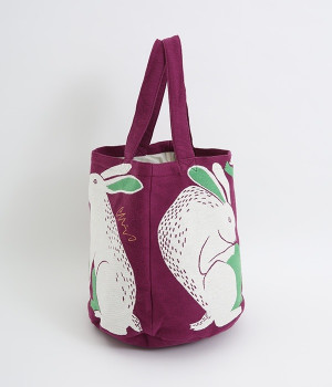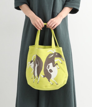 コロンとした形が愛らしく、しっかり織り上げた厚手の生地に上品なカラーの裏地をつけたトートバッグです。コットンなので肌触りも心地いい仕上がり。肩掛けできる大きめのハンドルや、中身がたっぷりと収納できる大小二つに分かれた内ポケットが使い勝手の良いポイントです。表裏で表情が違う絵柄が描かれた、挿絵画家moritaMiWさんの世界観が広がる一品。