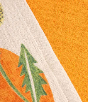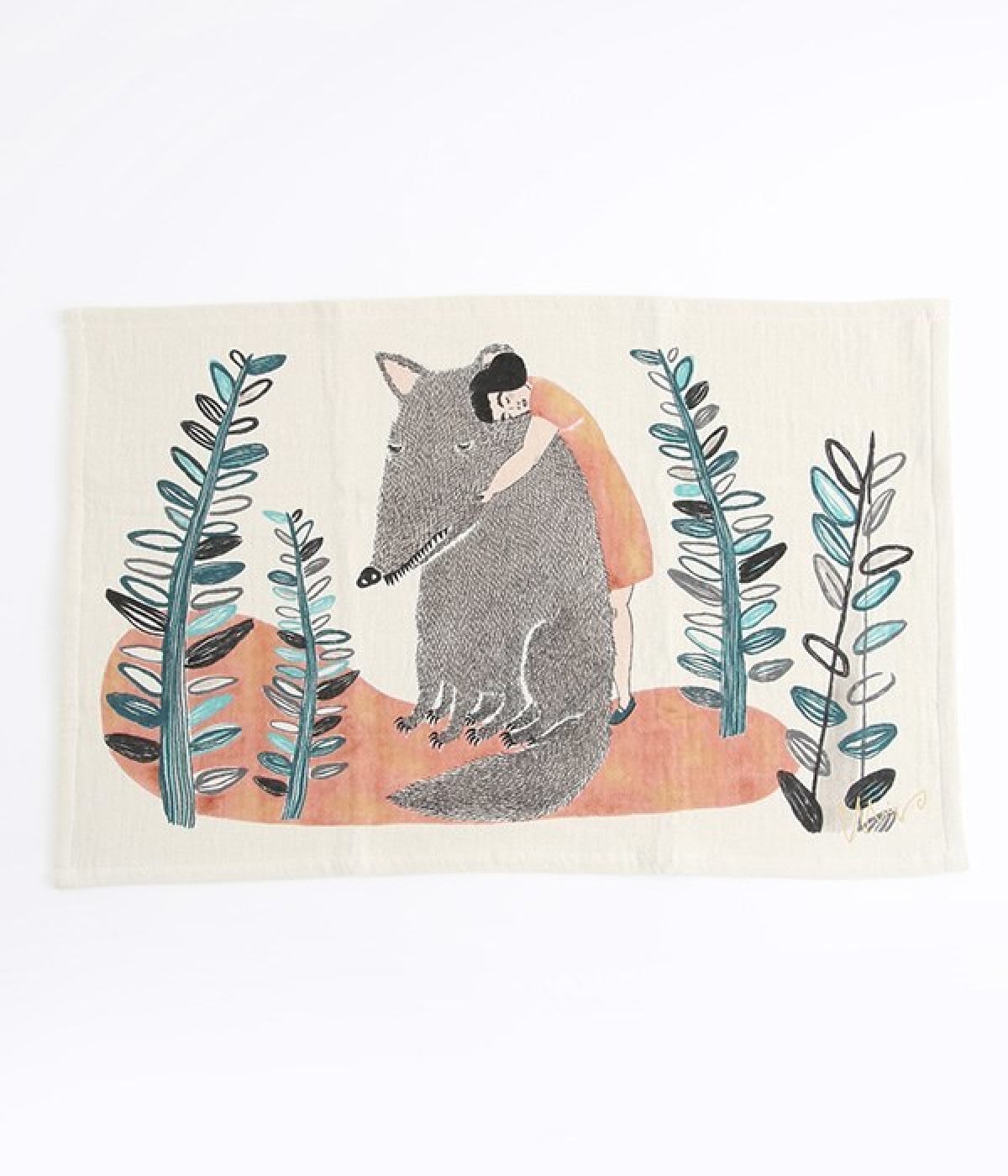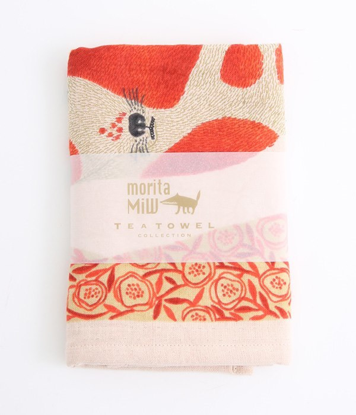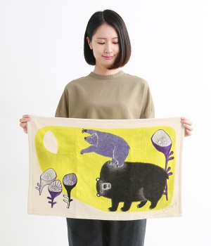 テーブルマットやキッチンクロスなどにぴったりの、今治タオルのティータオルです。タオルメーカー楠橋のオリジナル糸をたっぷり使って織り上げました。ソフトで弾力のある肌触りだからタオルとしてはもちろんのこと赤ちゃんのおくるみやブランケット、枕カバーなどにもいろいろな場所で使えます。挿絵画家であるmoritaMiWさんの、ゆるやかな物語の不思議な世界を表現した一枚です。