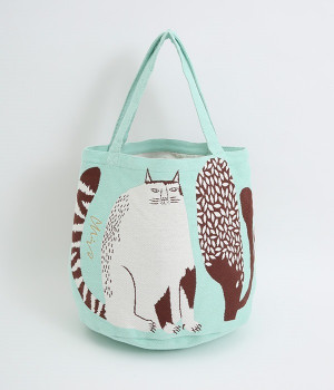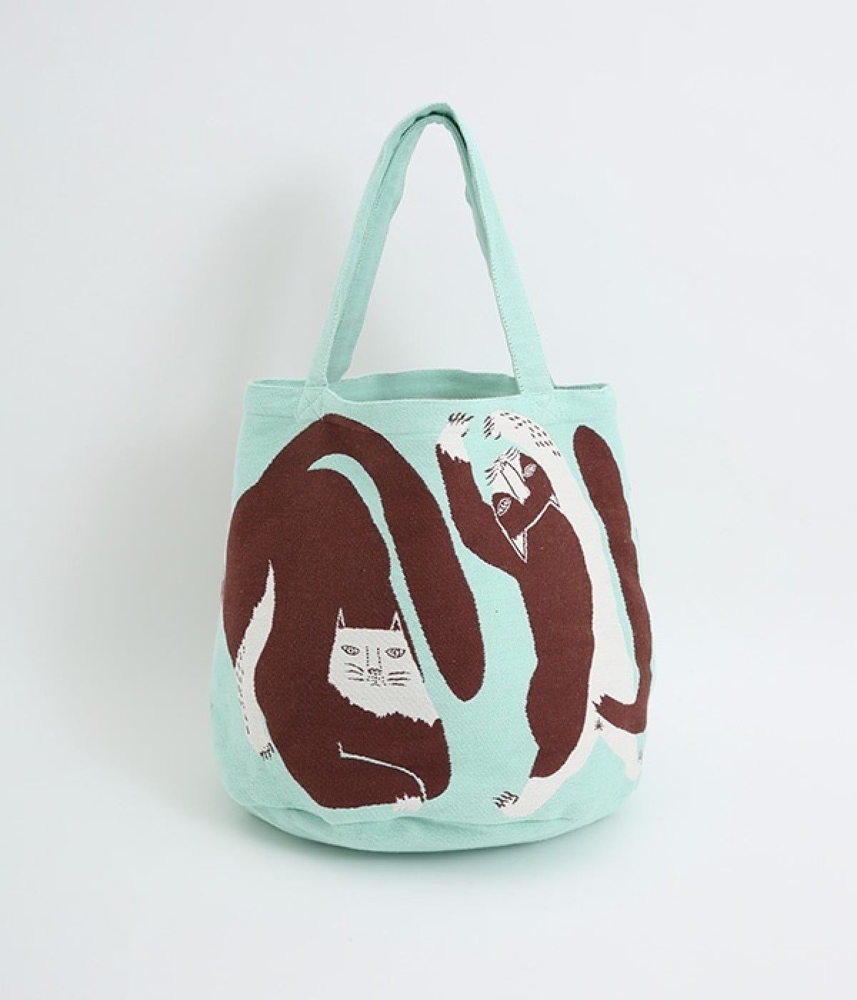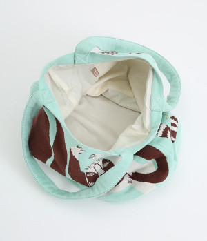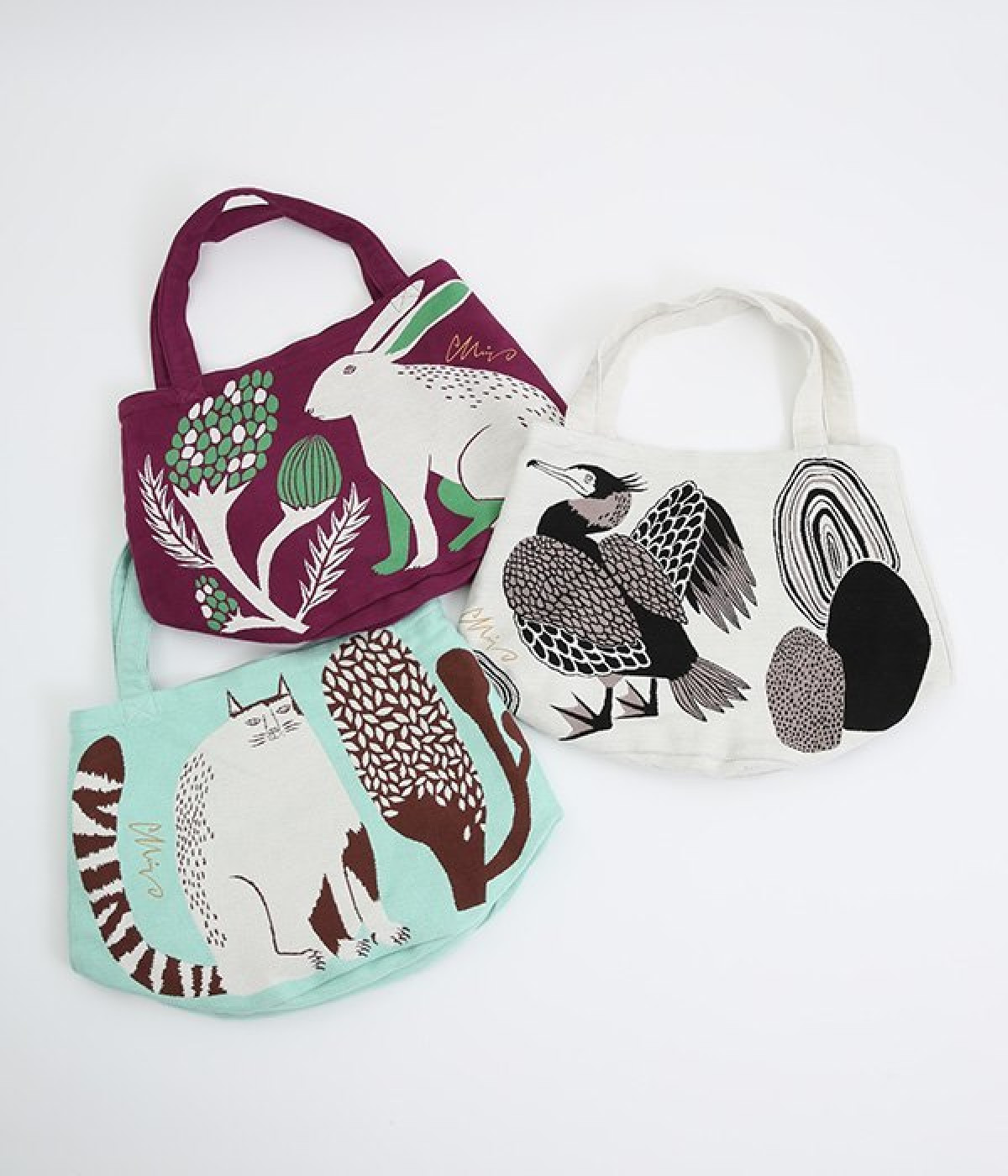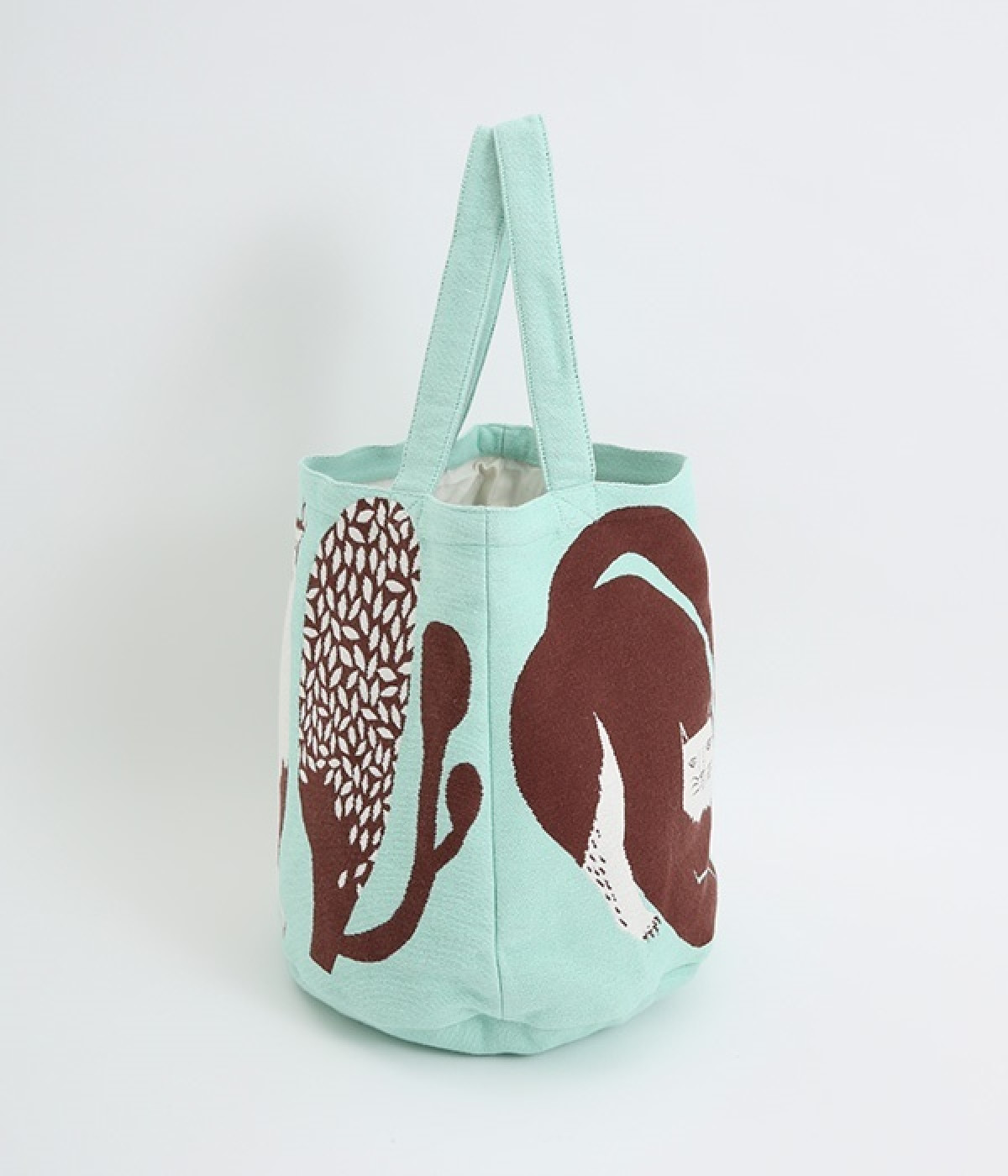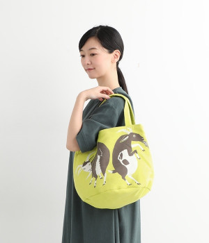 コロンとした形が愛らしく、しっかり織り上げた厚手の生地に上品なカラーの裏地をつけたトートバッグです。コットンなので肌触りも心地いい仕上がり。肩掛けできる大きめのハンドルや、中身がたっぷりと収納できる大小二つに分かれた内ポケットが使い勝手の良いポイントです。表裏で表情が違う絵柄が描かれた、挿絵画家moritaMiWさんの世界観が広がる一品。