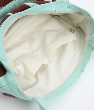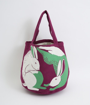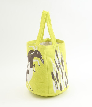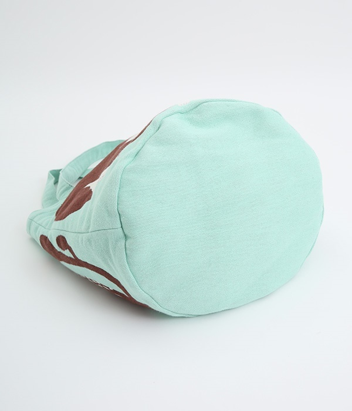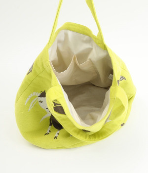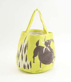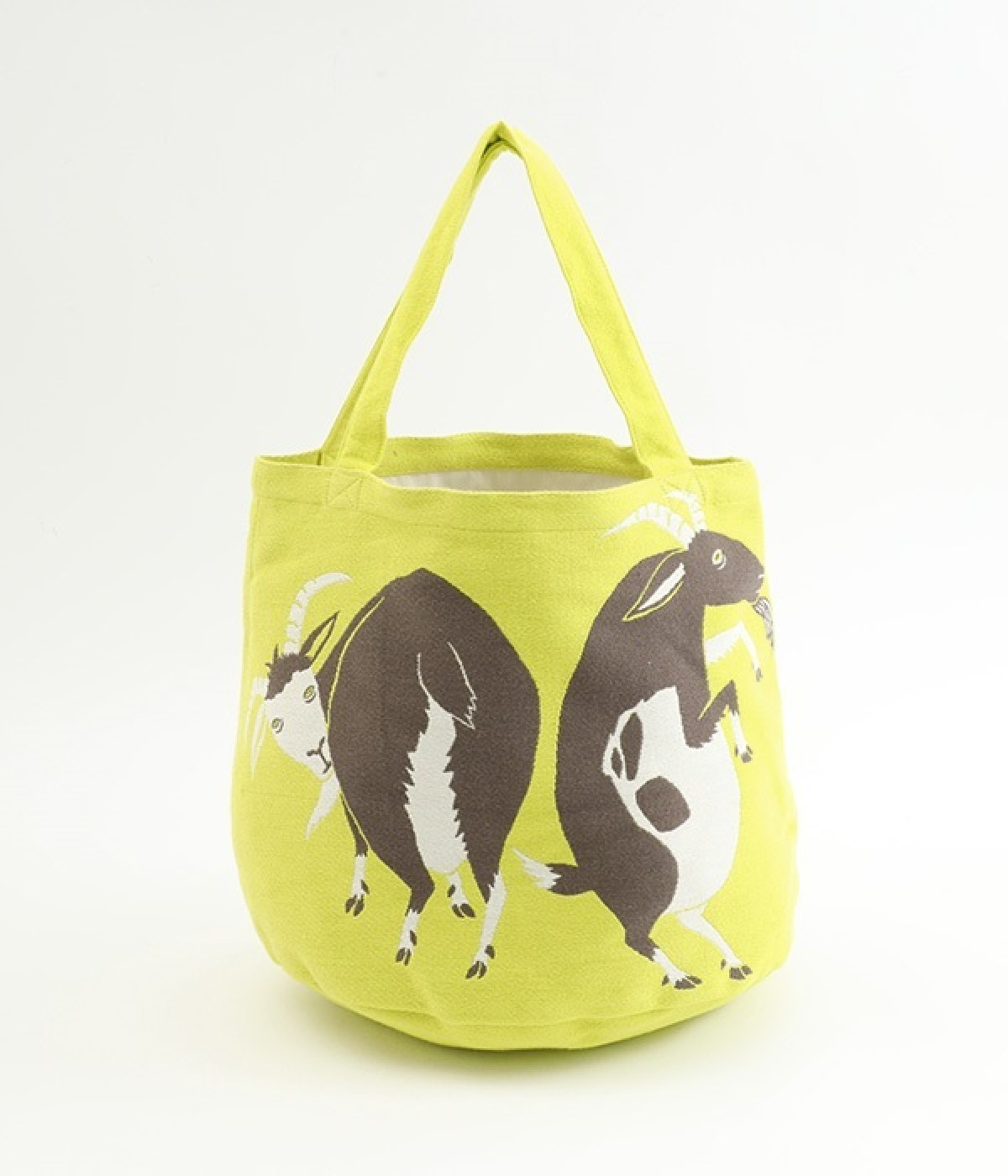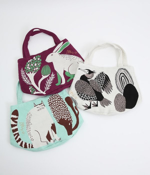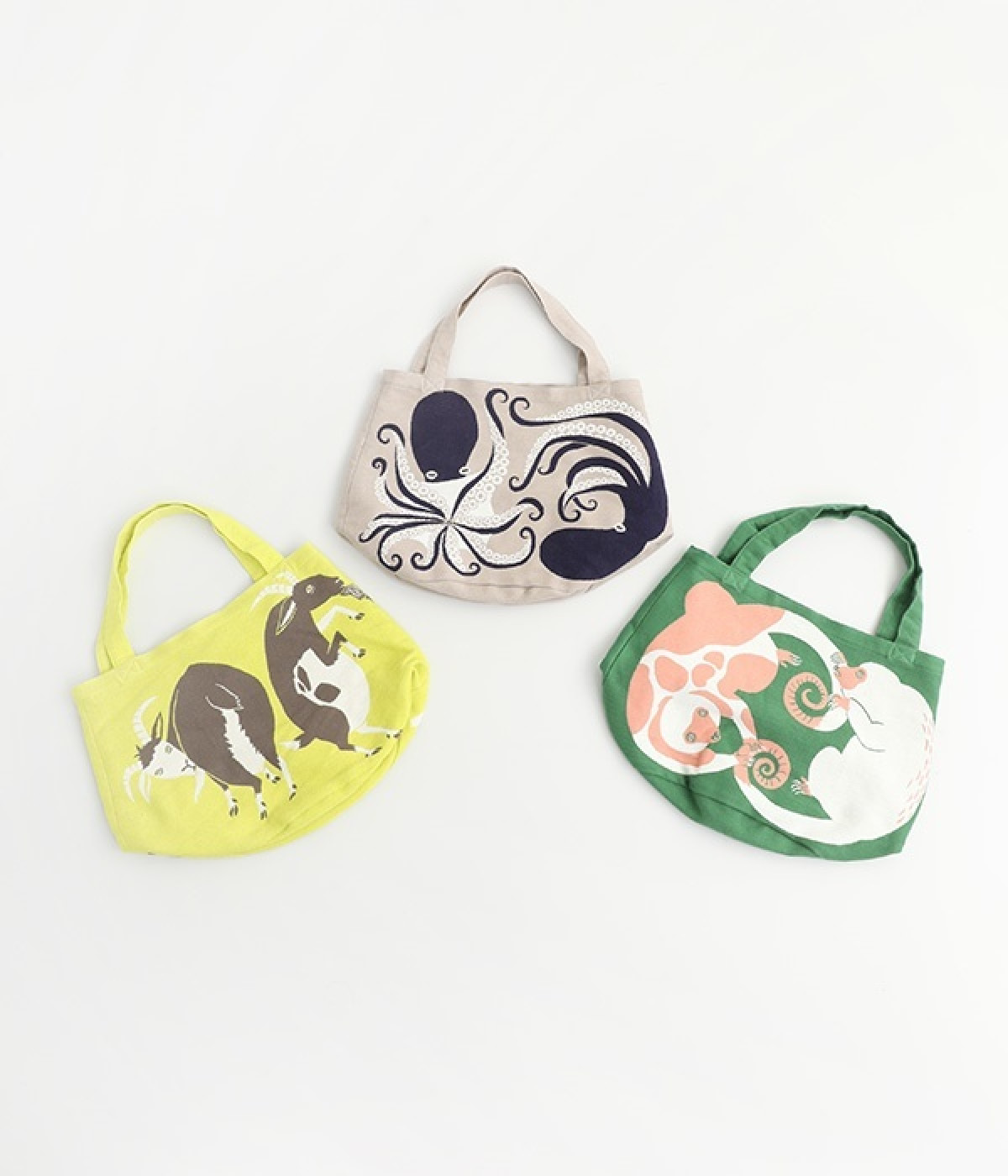 コロンとした形が愛らしく、しっかり織り上げた厚手の生地に上品なカラーの裏地をつけたトートバッグです。コットンなので肌触りも心地いい仕上がり。肩掛けできる大きめのハンドルや、中身がたっぷりと収納できる大小二つに分かれた内ポケットが使い勝手の良いポイントです。表裏で表情が違う絵柄が描かれた、挿絵画家moritaMiWさんの世界観が広がる一品。