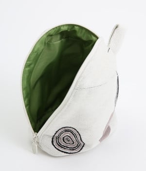 挿絵画家moritaMiWさんの不思議な絵の世界を映しだす、小さくてコロンとした愛おしい形のマチつきポーチです。タオルメーカー楠橋紋織のしっかり織り上げた厚手の生地からのぞく、裏地のビビッドカラーがさりげないアクセント。さらっとしたコットン素材の肌触りや、開閉口が大きく開いて物を出し入れしやすいのも魅力です。