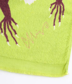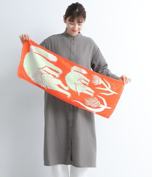 挿絵画家moritaMiWさんとタオルメーカー楠橋紋織のコラボレートで誕生した、それぞれ物語のある特別な一枚。MiWさんの不思議な絵と物語の世界が、今治タオルブランド認定の「タオル手ぬぐい」に映し出されています。拭く、首に巻く、かけるなど、一つでいろいろな使い方ができる楽しさも魅力。バスタイムはもちろんのこと、薄手で持ち運びやすいため旅行やスポーツ、アウトドアにもおすすめです。