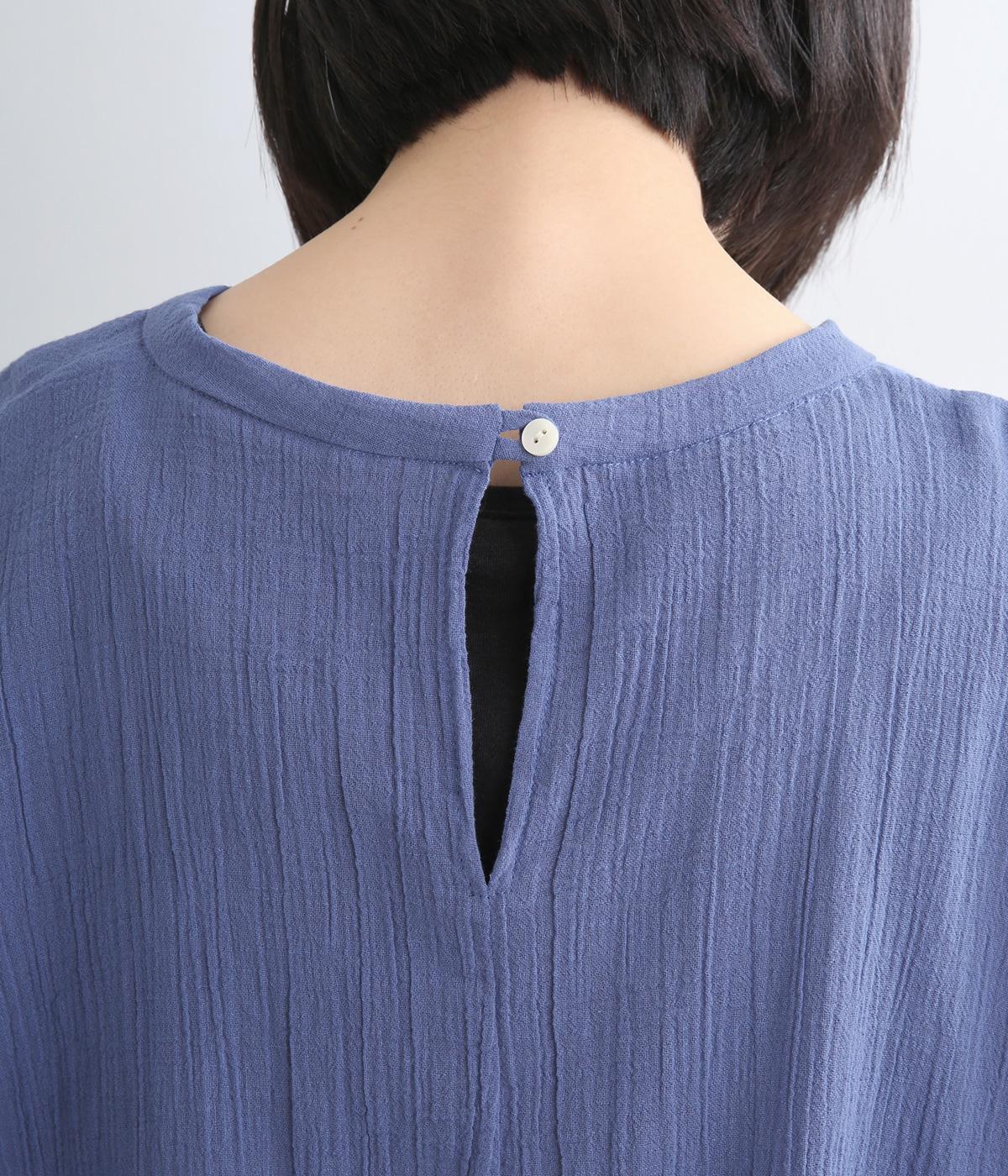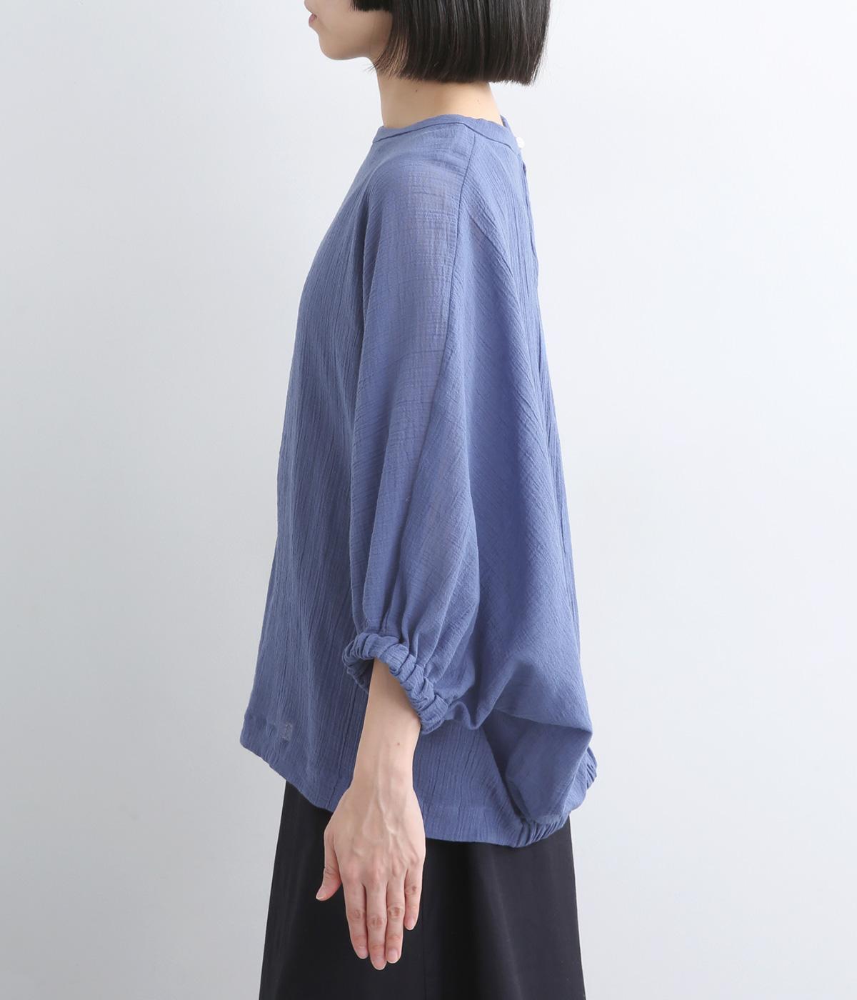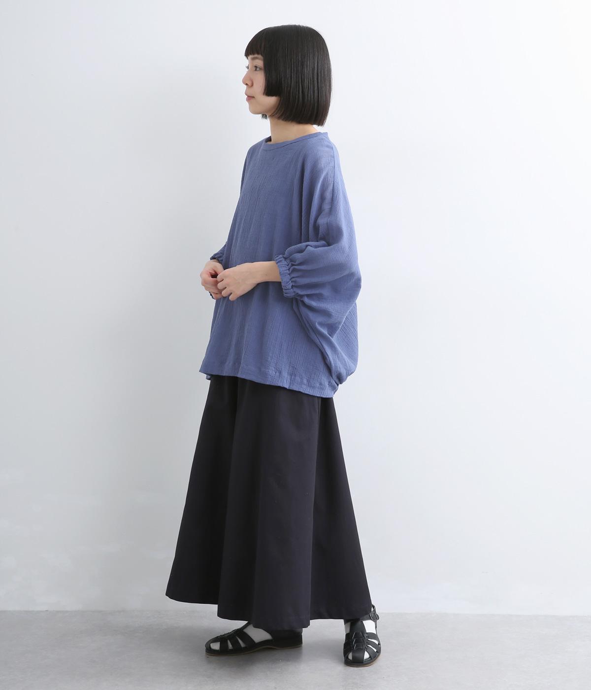 表情豊かな素材感を活かし、ゆったりシンプルなブラウスを仕立てました。肩から腕、裾に向けてゆるやかなラインを描くドルマンスリーブが特徴的で、肌にまとわりつきにくく風通しもいいので快適に着用できます。袖口はゴムを入れてきゅっとメリハリを。