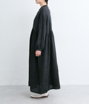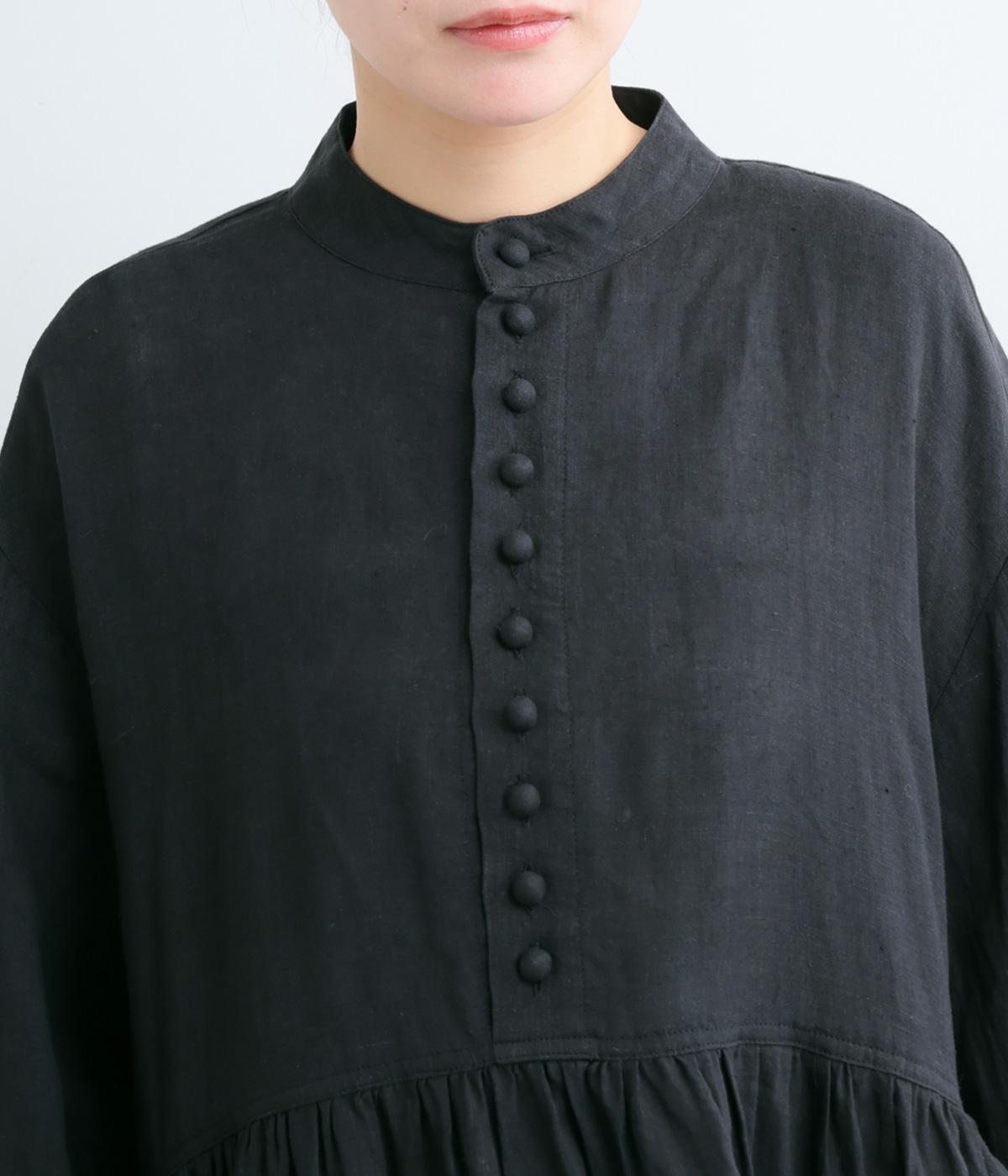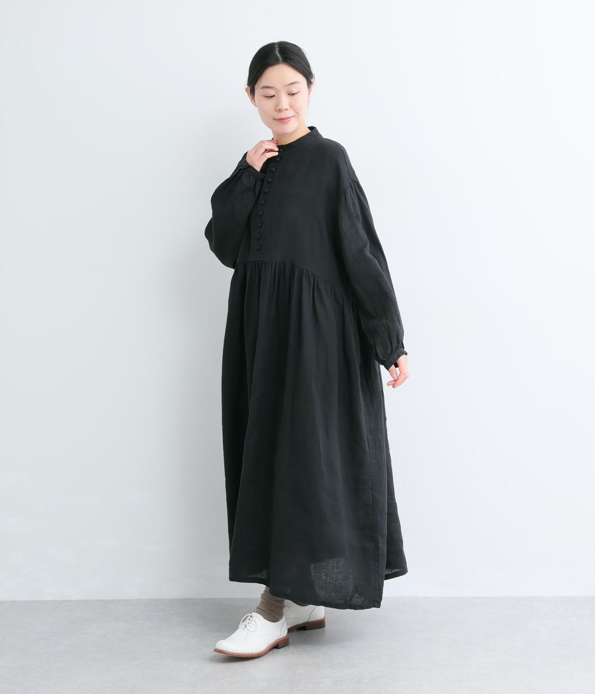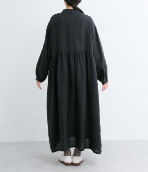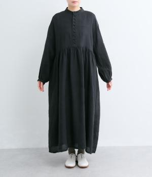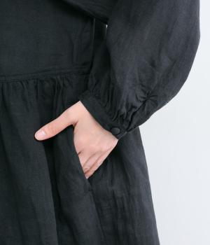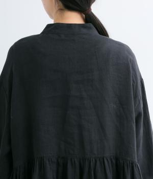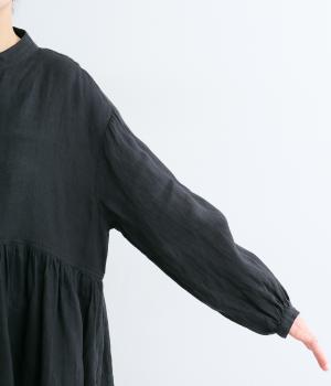 リネンならではのシャリ感と清涼感が魅力の生地です。やや薄手で軽やかながらしなやかなハリがあり、きれいなシルエットを描きます。暑い季節でも快適な着心地の素材感です。