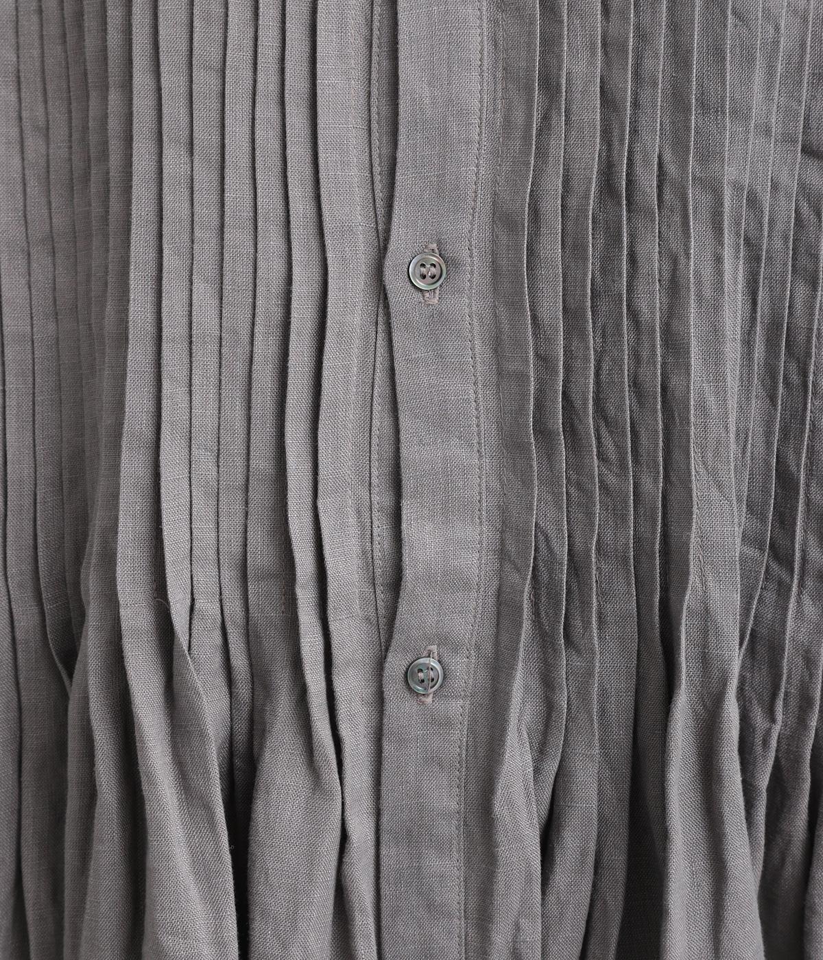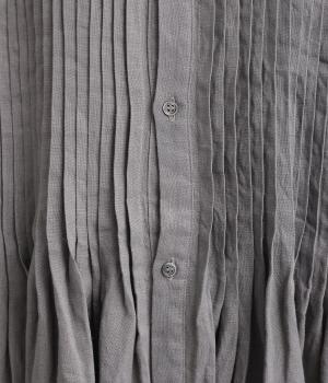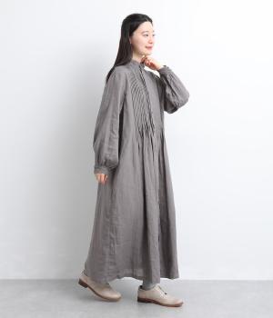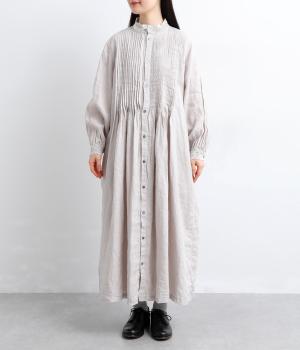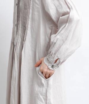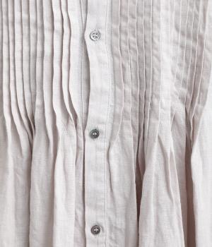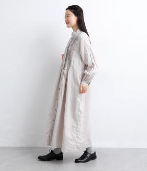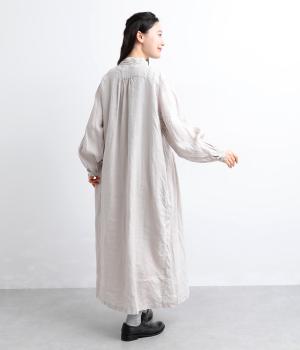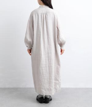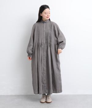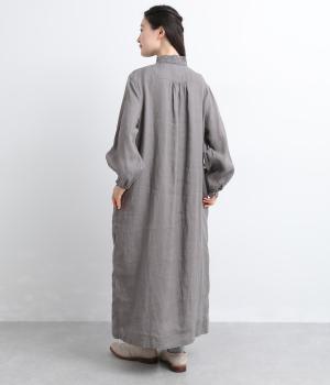 ナチュラルな表情が魅力のリネン生地は、ほどよい厚みとシャリ感があり、軽やかな着心地です。自然なハリが美しいラインを保ちつつ、着用を重ねるごとにやわらかくなじんでいきます。