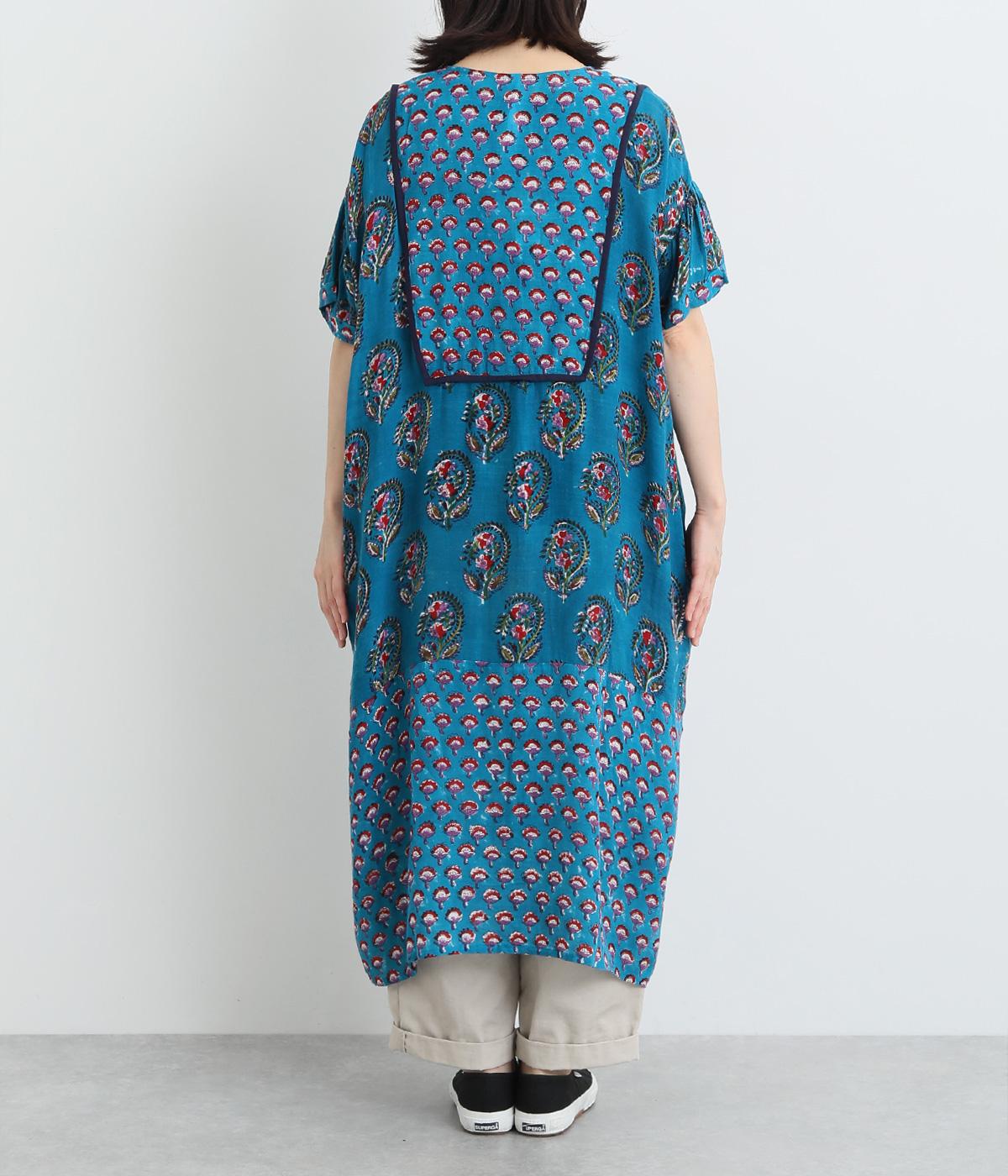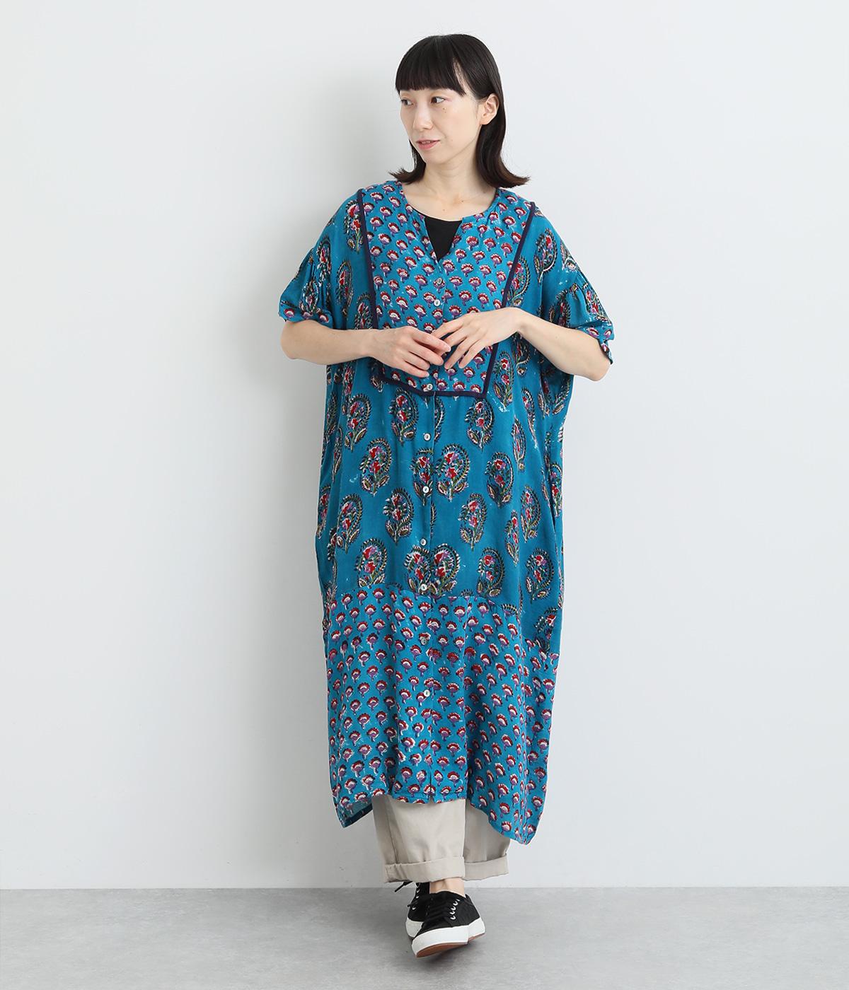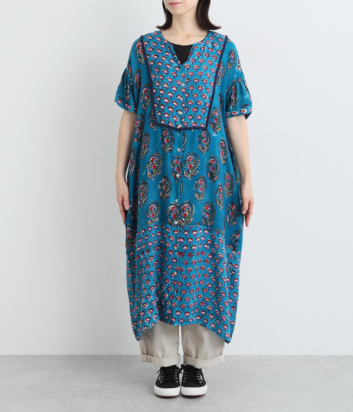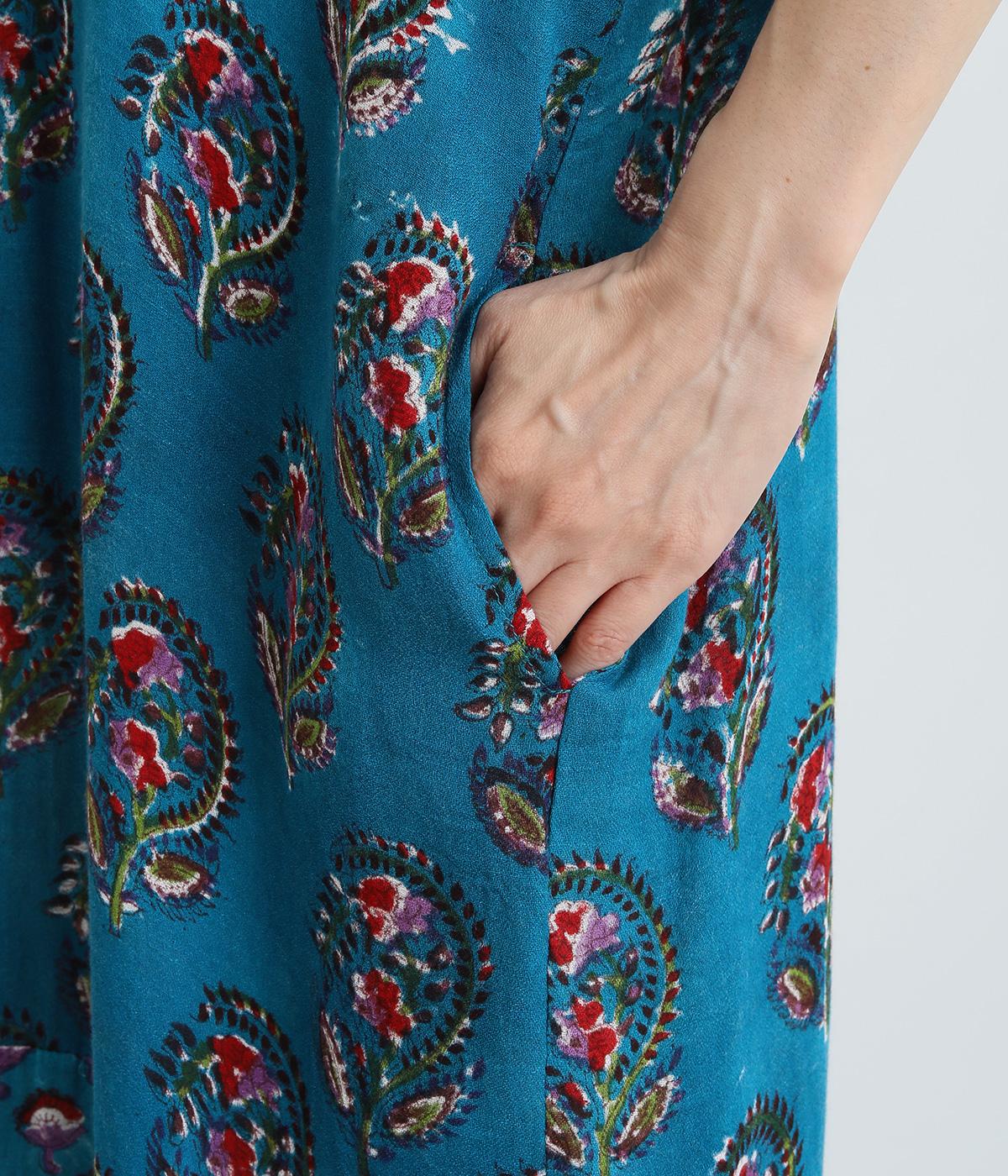 カラフルフラワープリントワンピース(ブルー-ONESIZE)