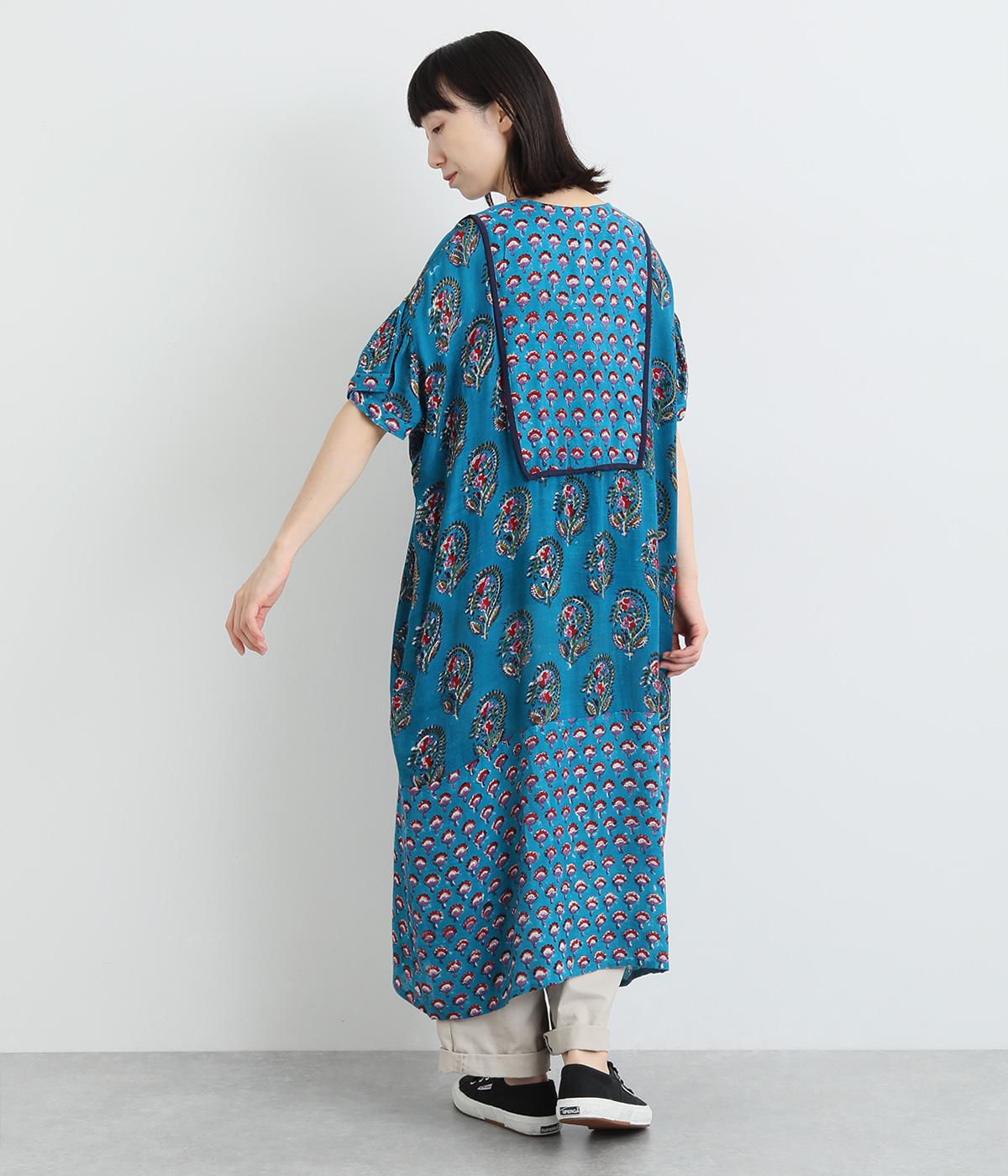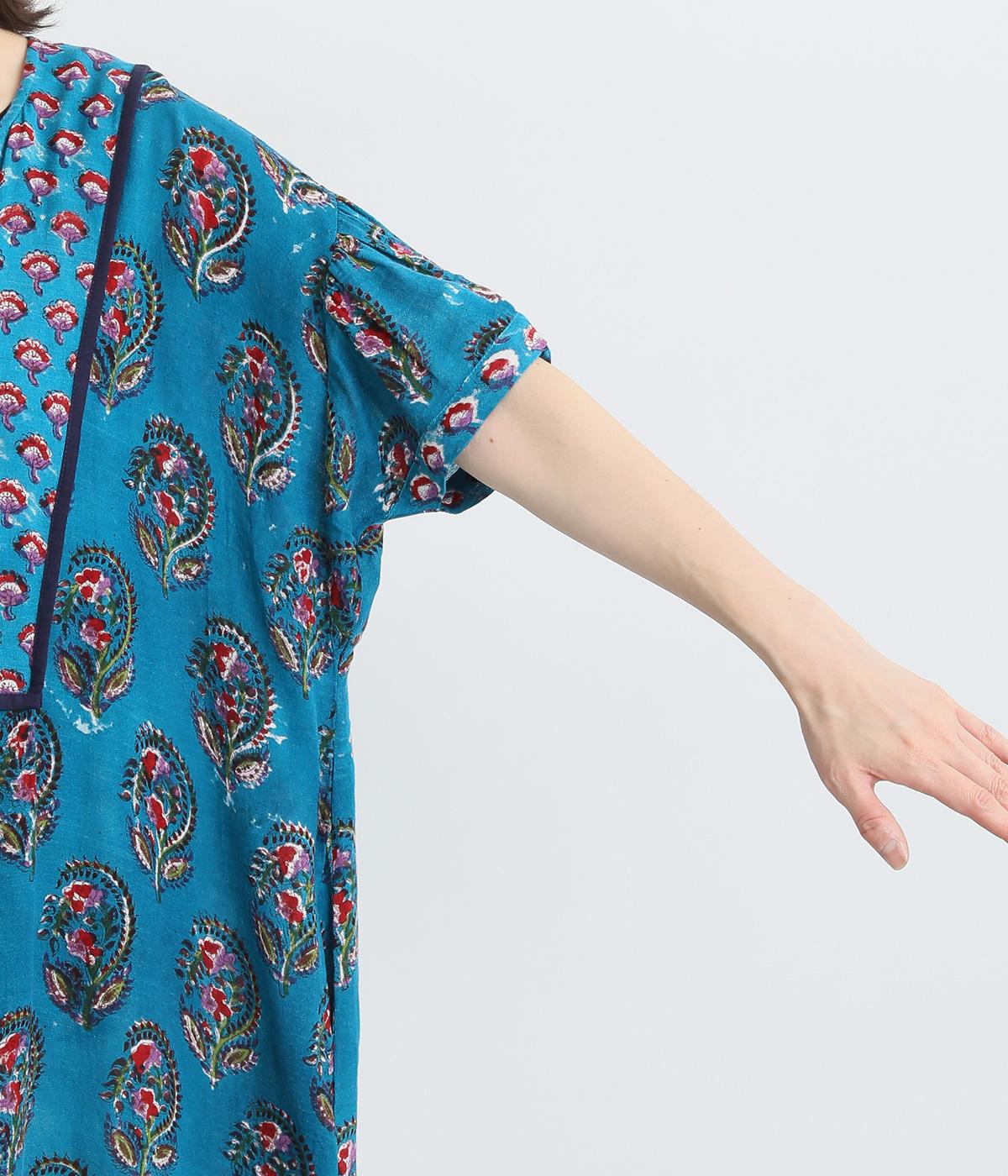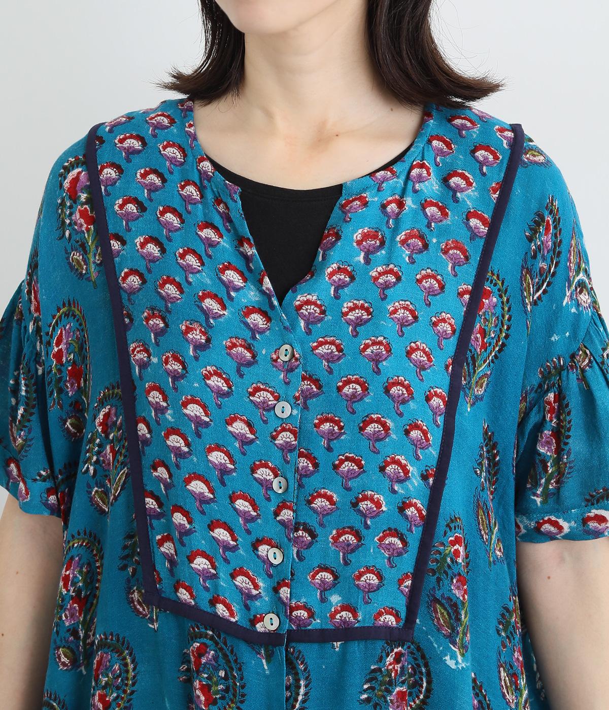 カラフルフラワープリントワンピース(ブルー-ONESIZE)