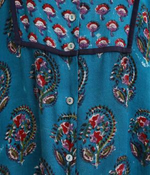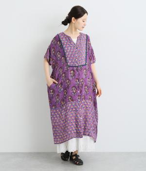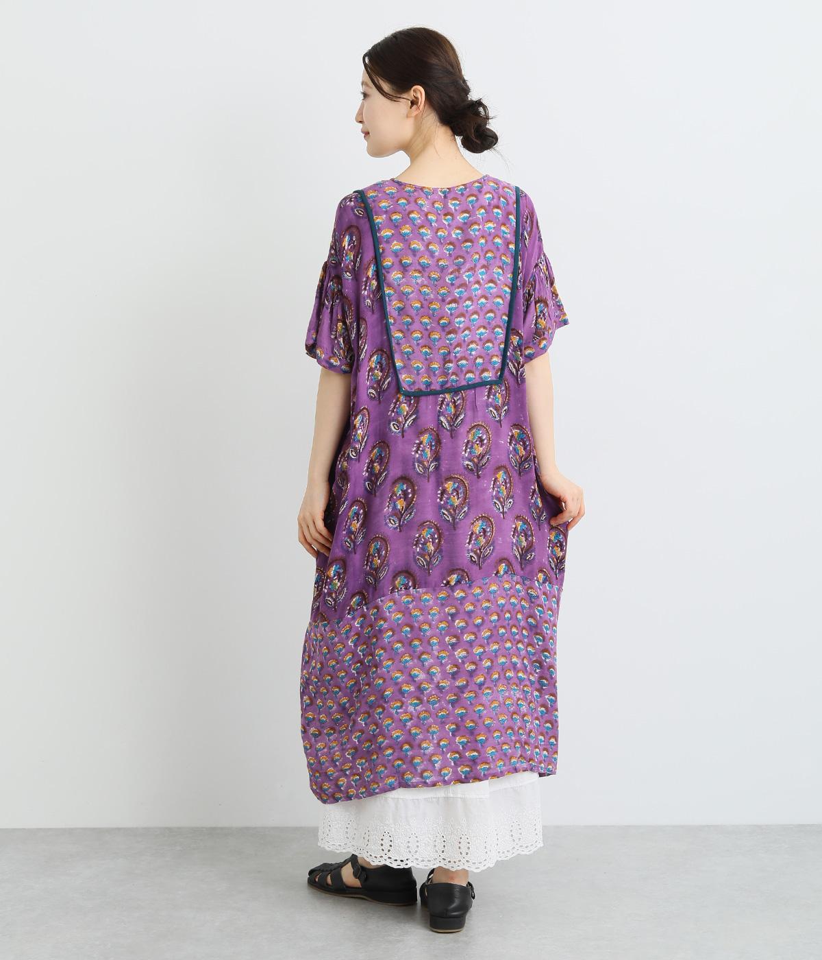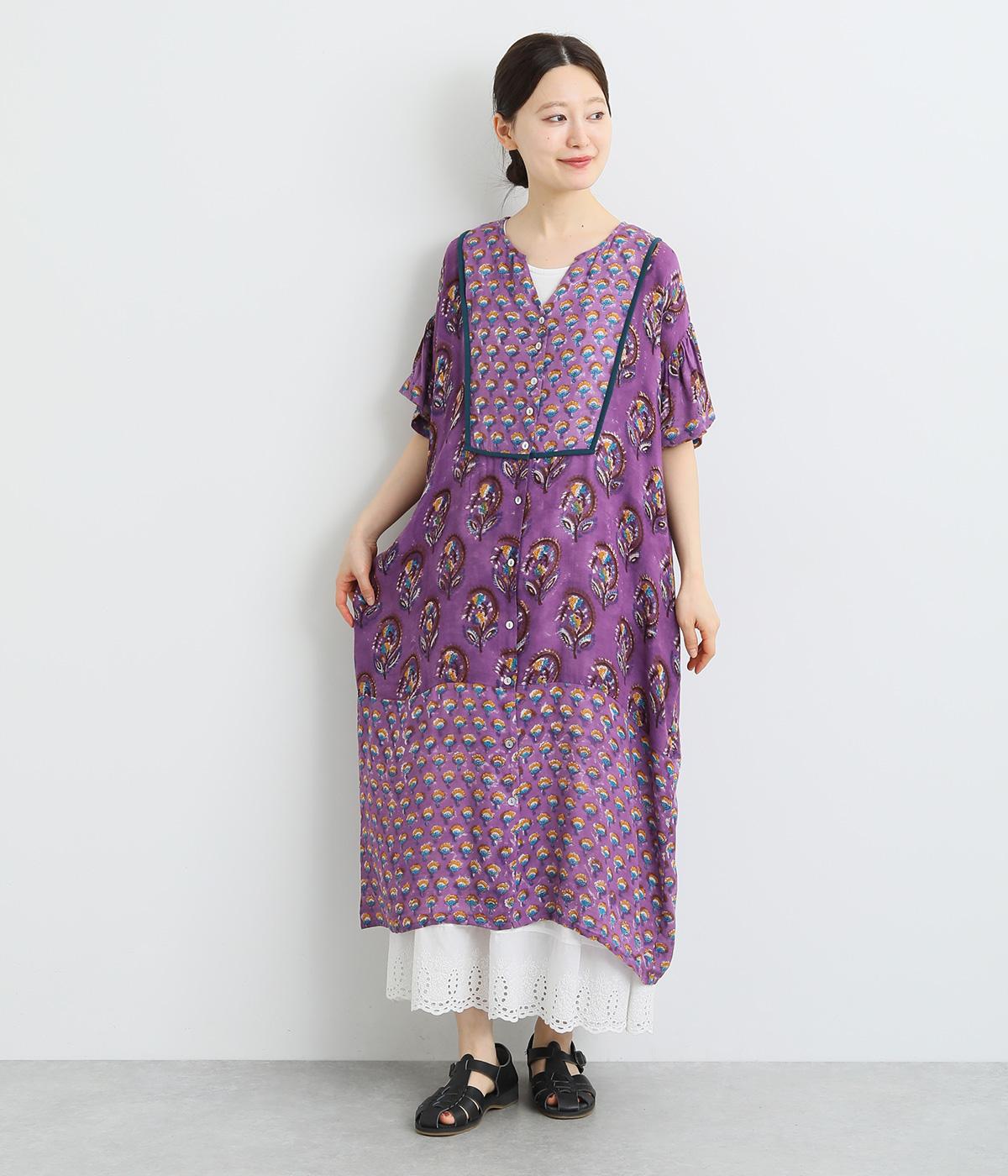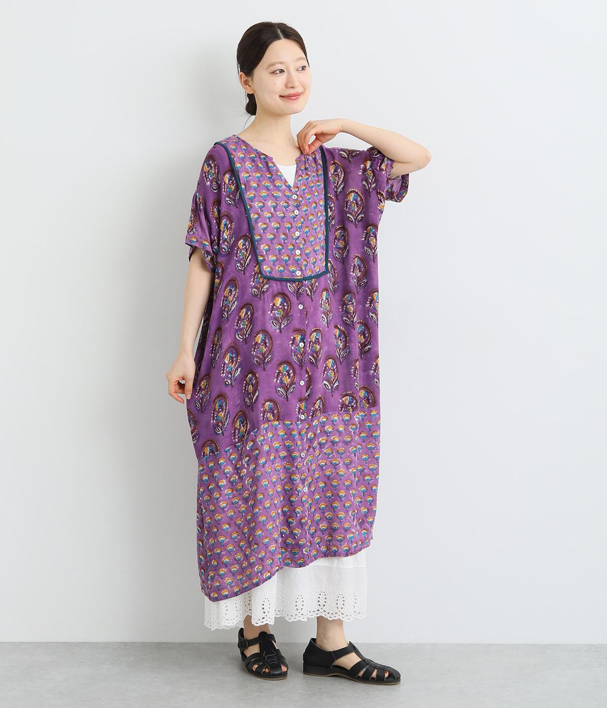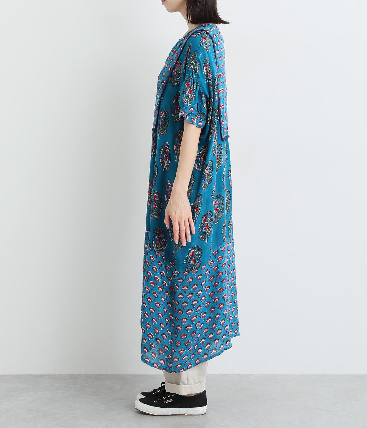 カラフルフラワープリントワンピース(ブルー-ONESIZE)