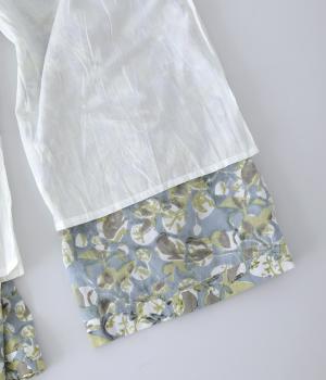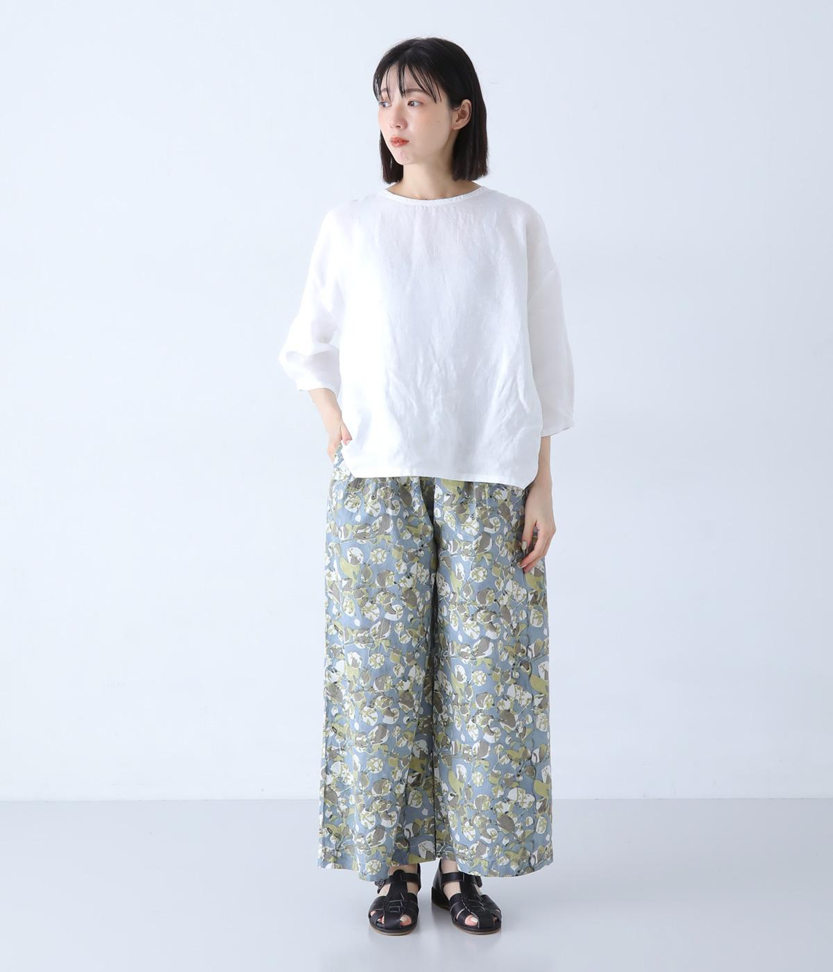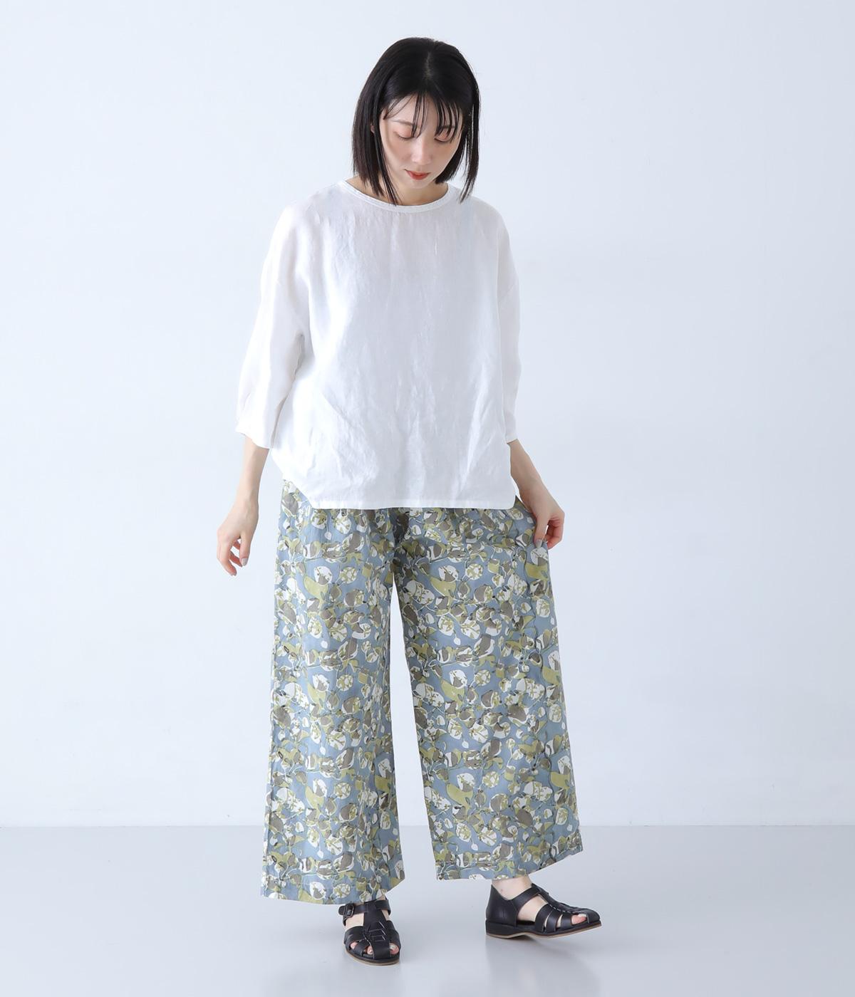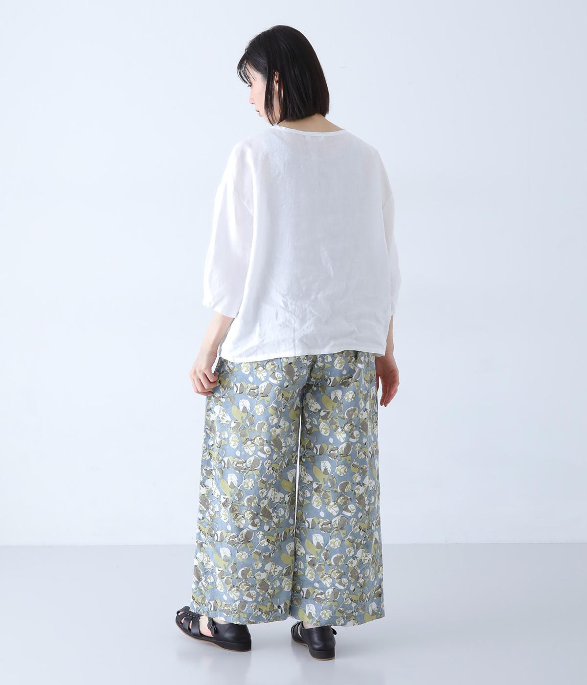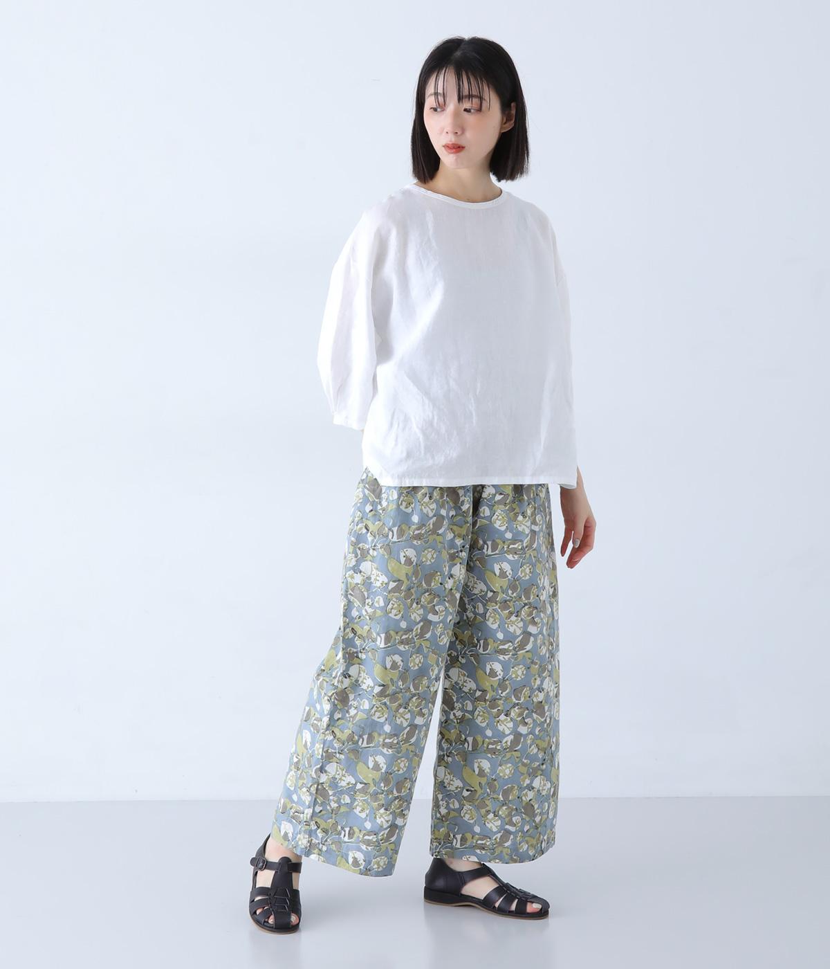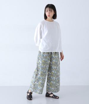 さらりとした肌ざわりのコットン素材を使用しました。通気性と吸湿性に優れた、軽やかな着用感が魅力です。天然素材ならではのやわらかな風合いが、プリントの表情をより引き立てます。