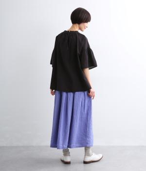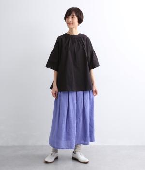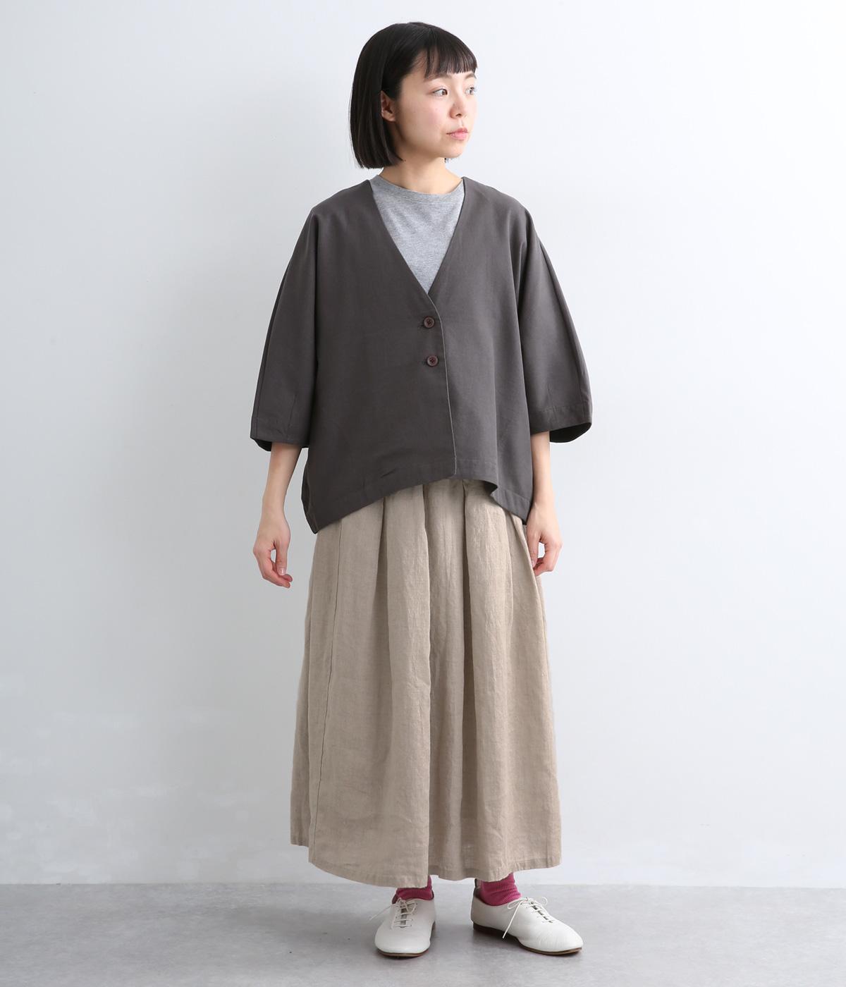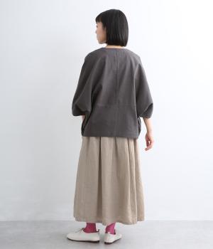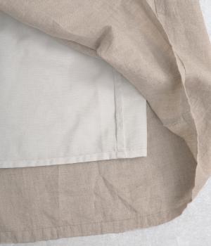フレンチリネンならではのドライタッチな清涼感があじわえます。ナチュラルなシワ感がこなれた印象で、着るほどになじみ深みも増していく素材です。肌あたりのいい裏地で透け感を防止。