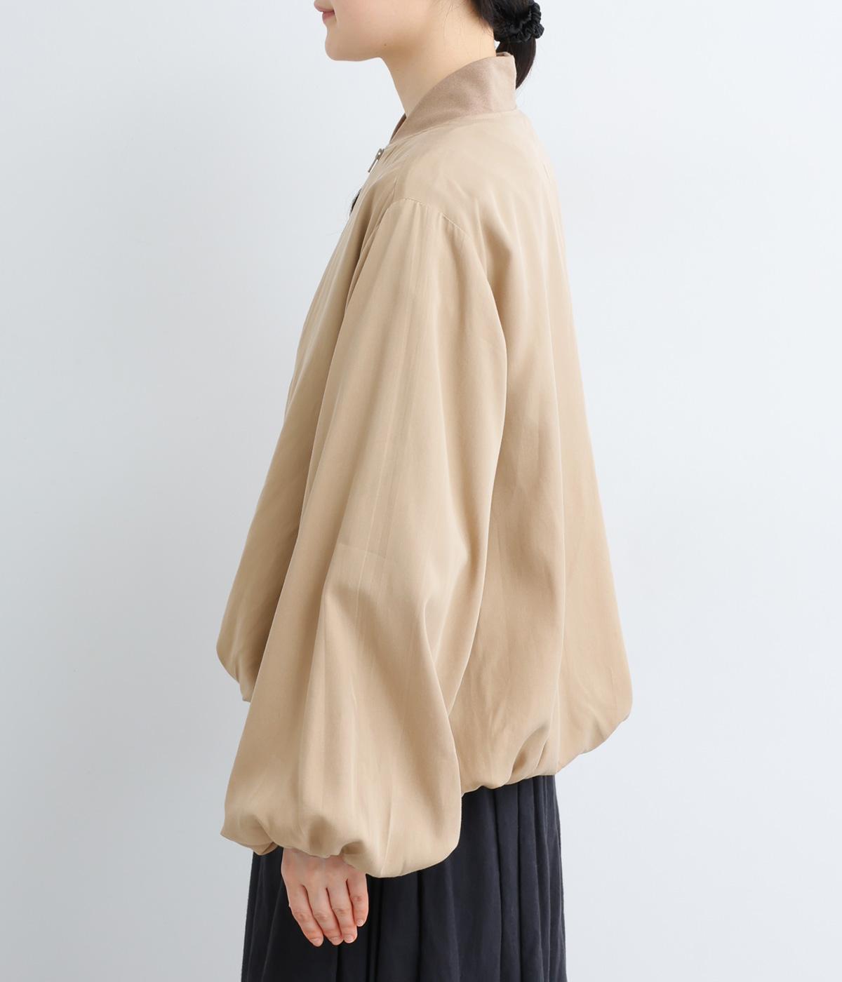 バルーン袖が印象的なジャケット。短め丈でバランスよく着こなせます。袖口と裾はゴム仕様でふんわりした丸みを演出。ほんのり立ち上がった襟元で首元もあったか。上品に着こなせる一着です。
