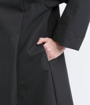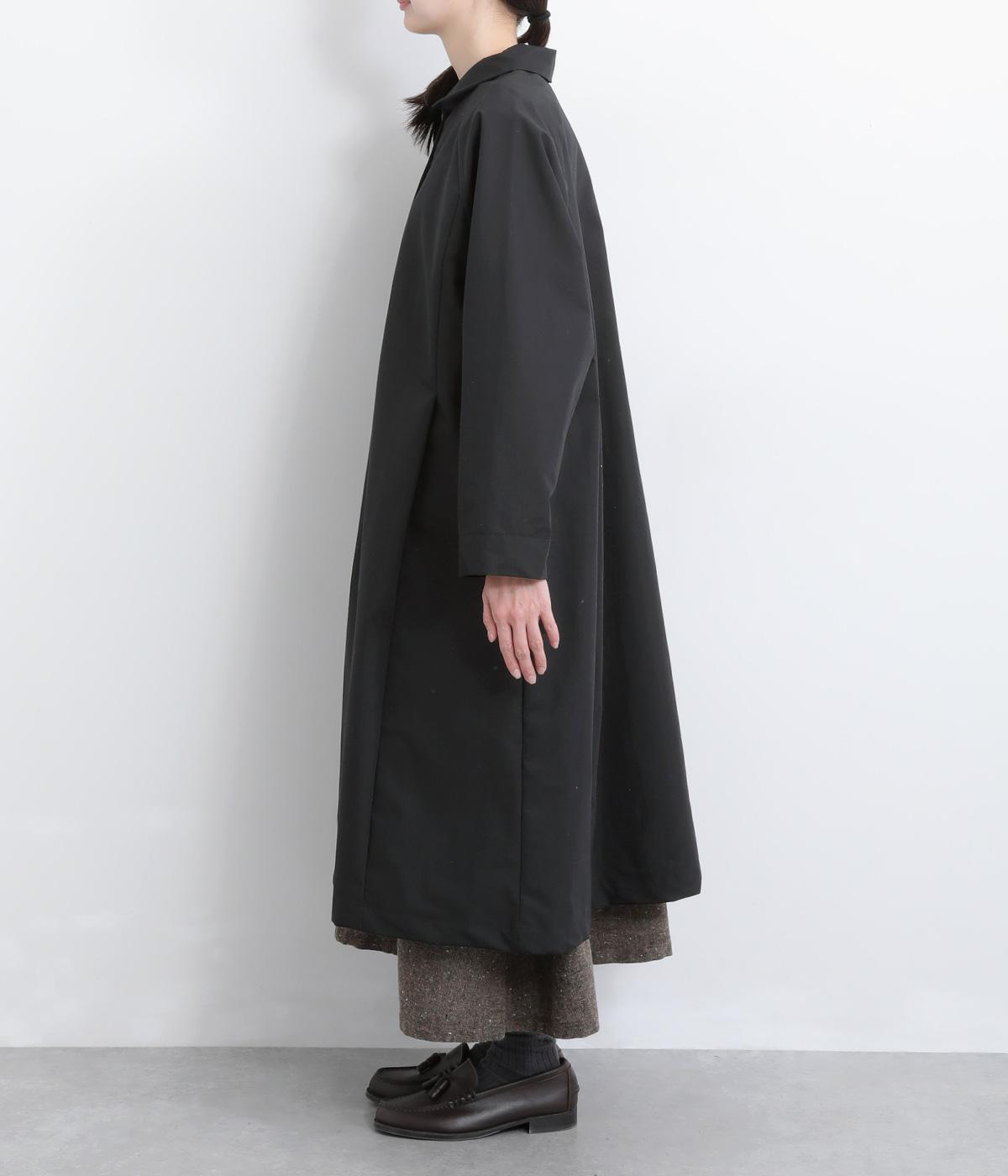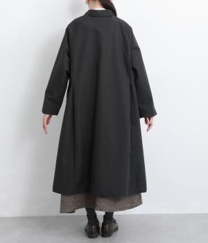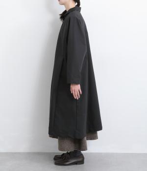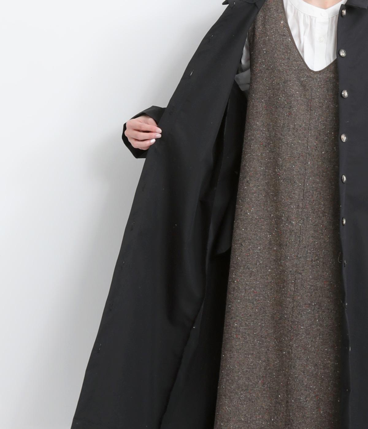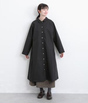 軽やかさが魅力のダスターコートです。ラグランスリーブで肩まわりの動きやすさを確保して、なだらかな女性らしいシルエットを描きます。たっぷりの生地がきれいなシルエットを保ちつつ広がり、上品な印象を添えています。