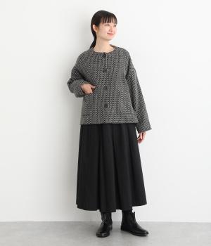 環境にやさしいリサイクルウールをメインに使用。表面に起毛感があり、厚みはおさえつつもあたたかく着ていただけます。上品見えする織り模様にも注目です。さらりとした薄手のコットン裏地つき。