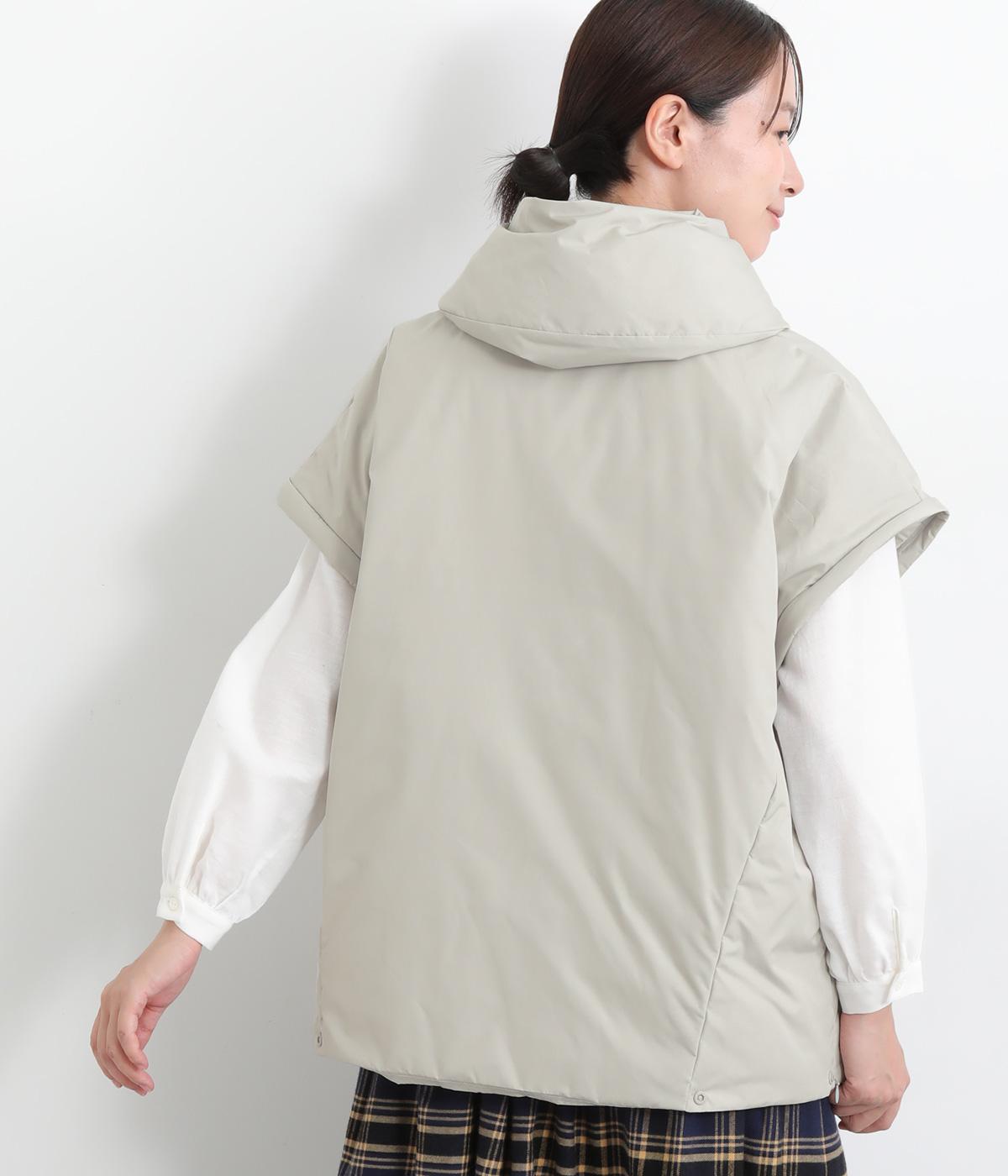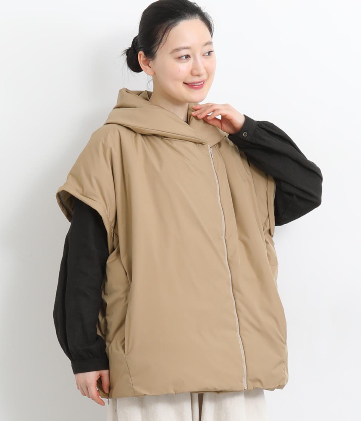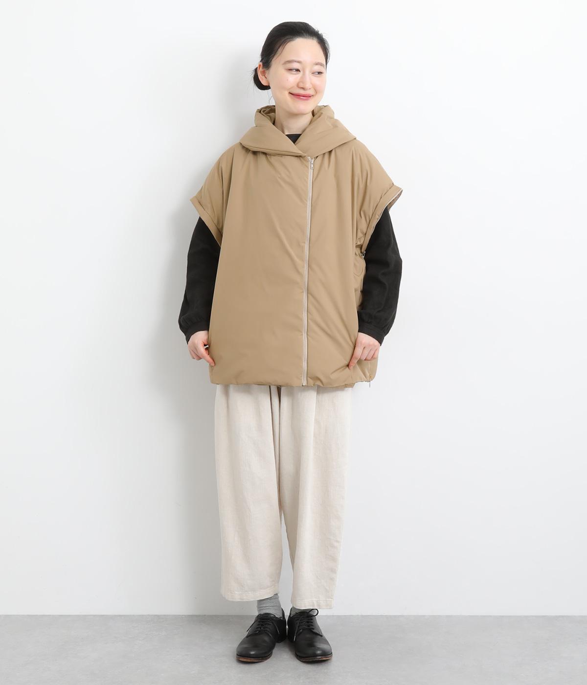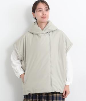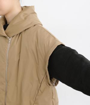 長袖にもベストにもなる2wayジャケット。フード風の首まわりのボリューム感がポイントで、防寒とお洒落を両立。袖口のゴムや裾のスナップボタンなど、すきま風をシャットアウトする工夫も。サイドファスナーで抜け感の微調整も可能です。