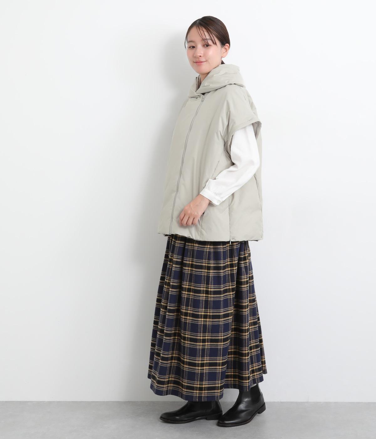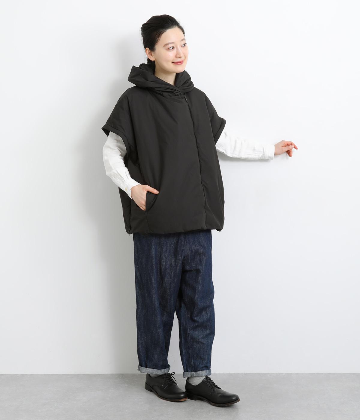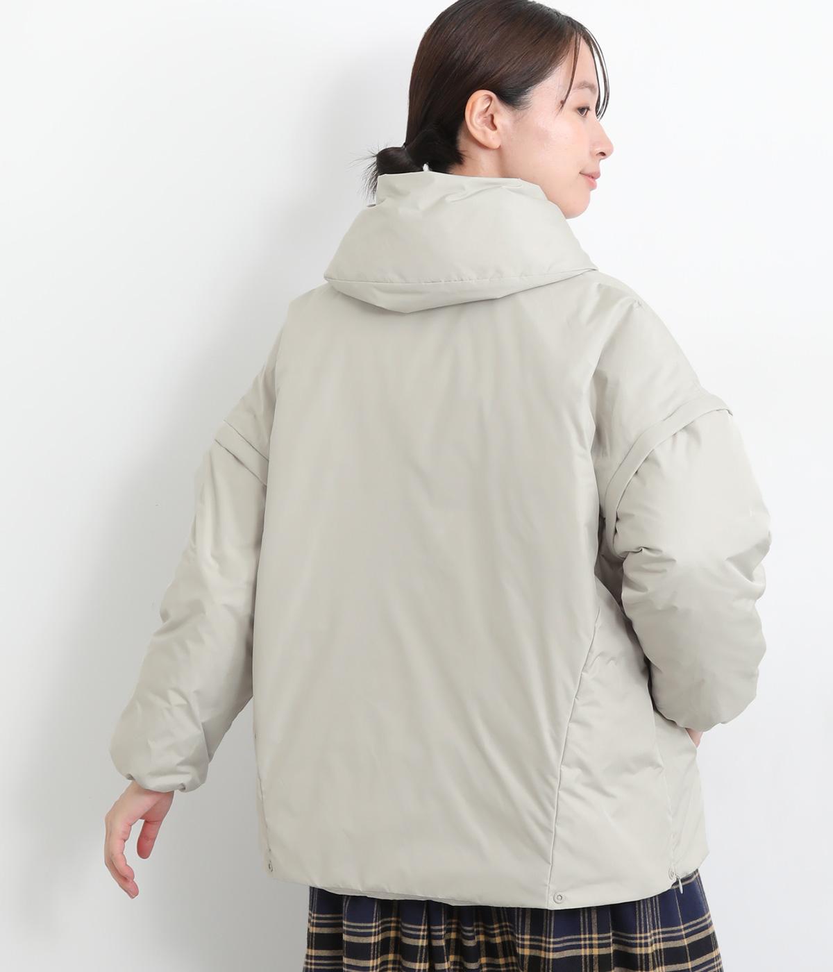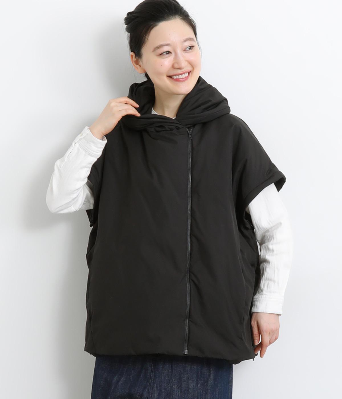 長袖にもベストにもなる2wayジャケット。フード風の首まわりのボリューム感がポイントで、防寒とお洒落を両立。袖口のゴムや裾のスナップボタンなど、すきま風をシャットアウトする工夫も。サイドファスナーで抜け感の微調整も可能です。