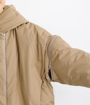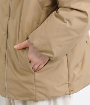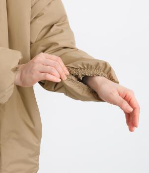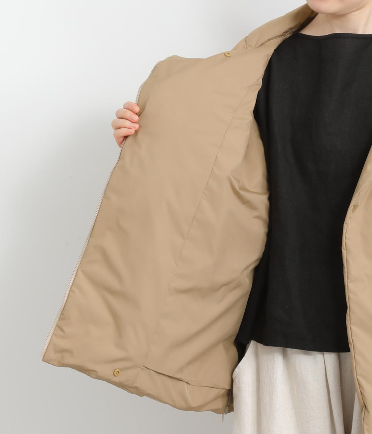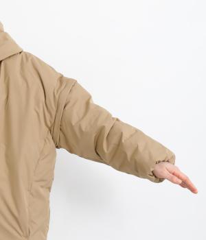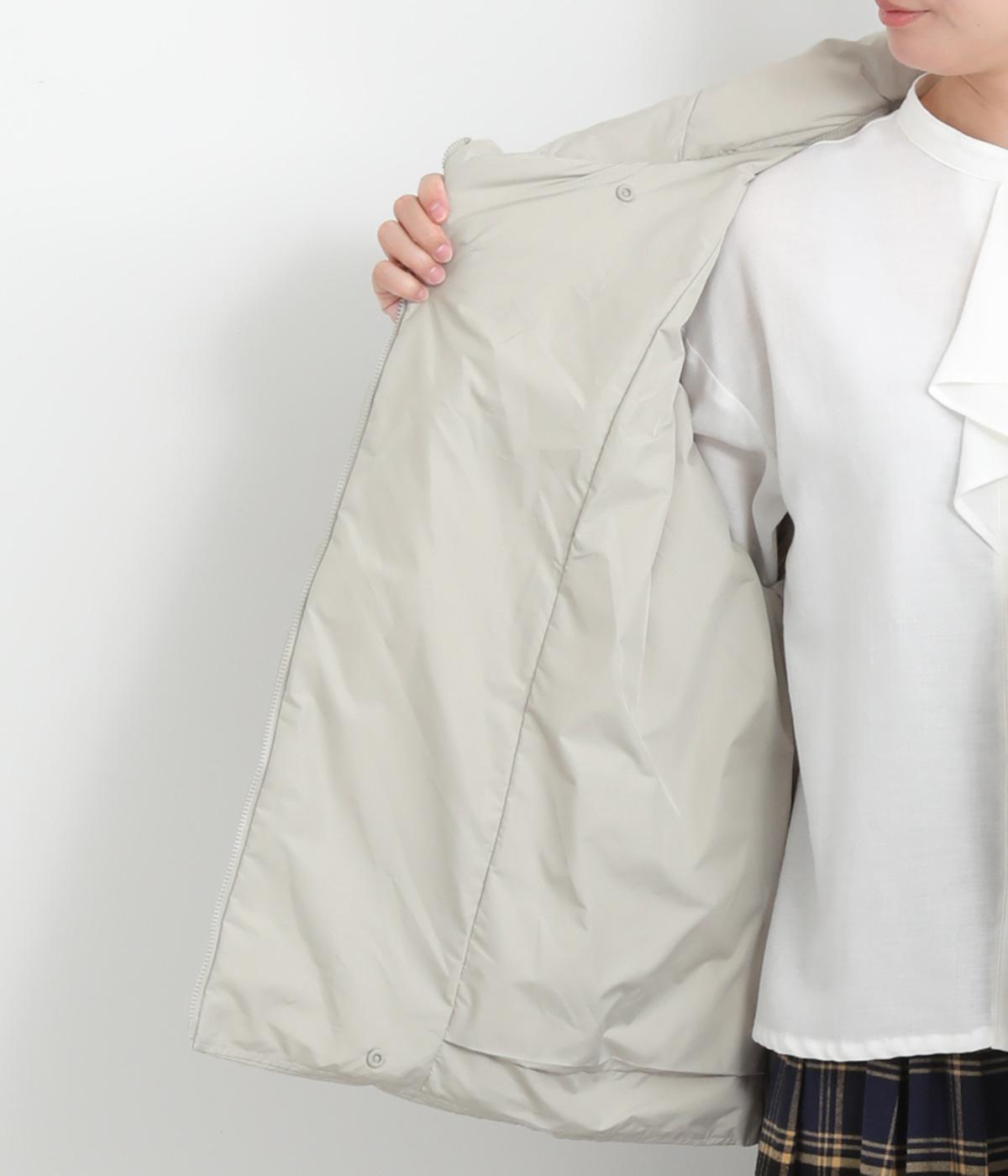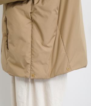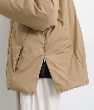 ポリエステル製のソフトマットな表面感が幅広いテイストにマッチします。ふっくらとした中綿入りでボリューム感がありながらも軽量仕上げで羽織りやすい仕上がりです。