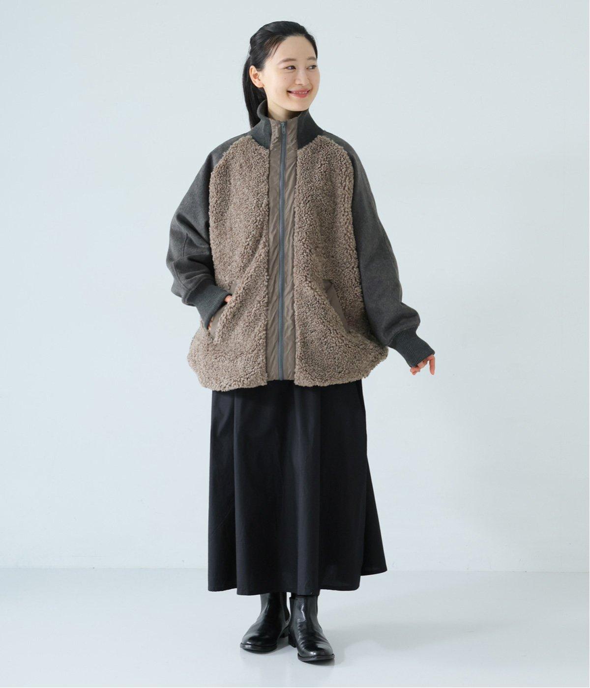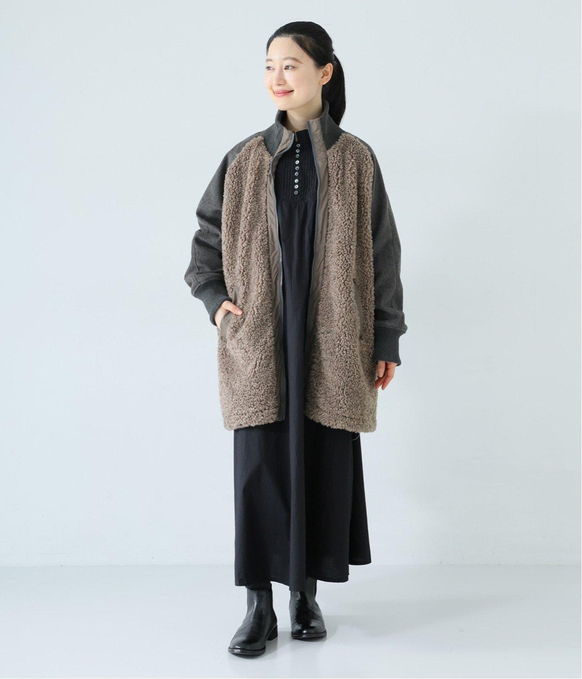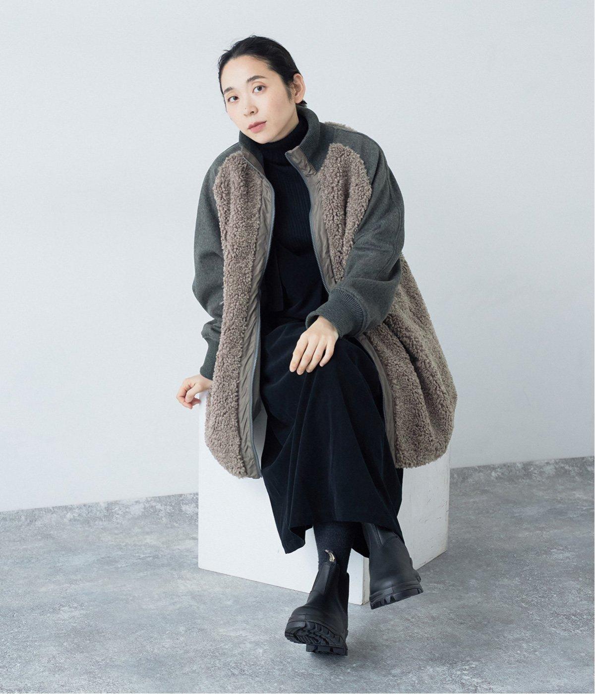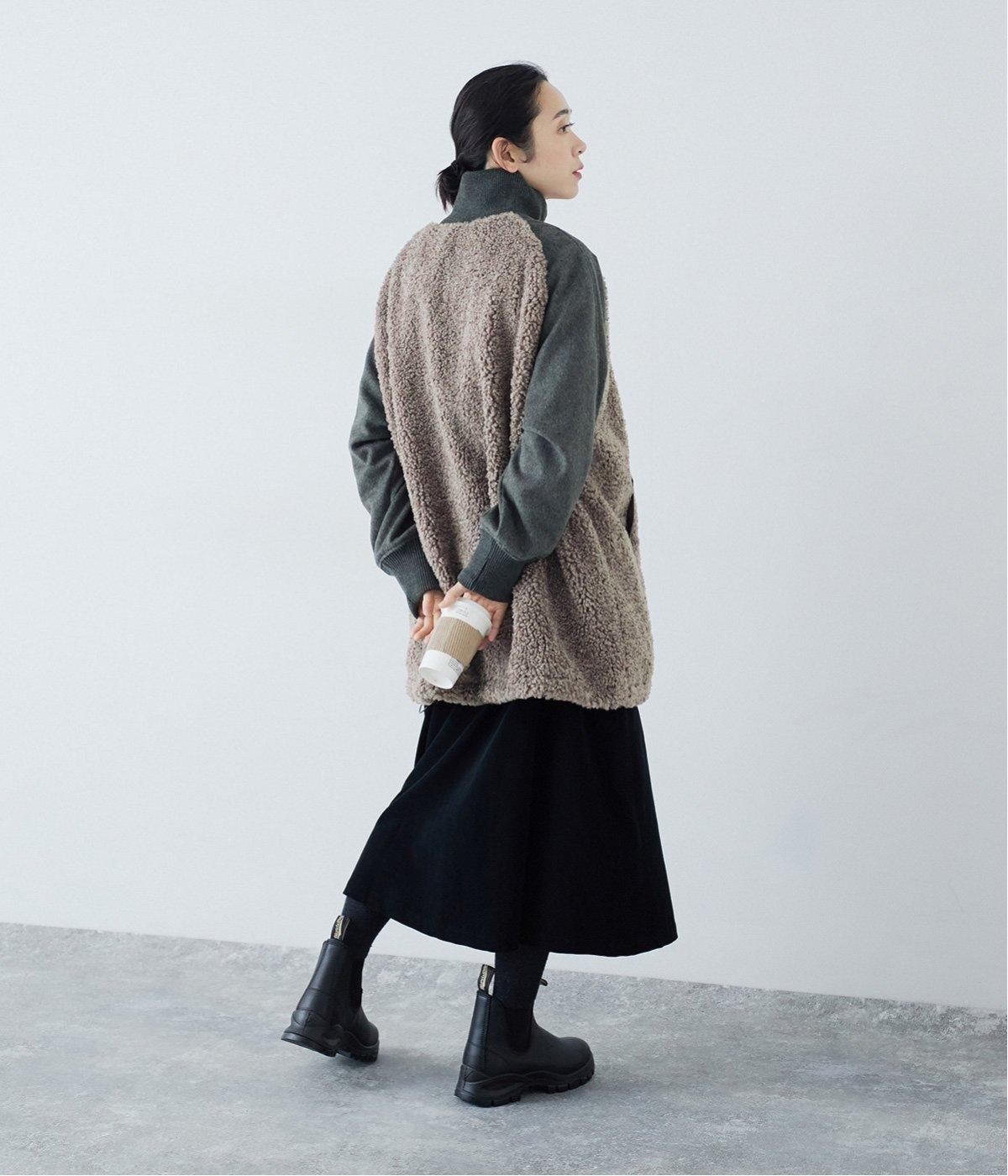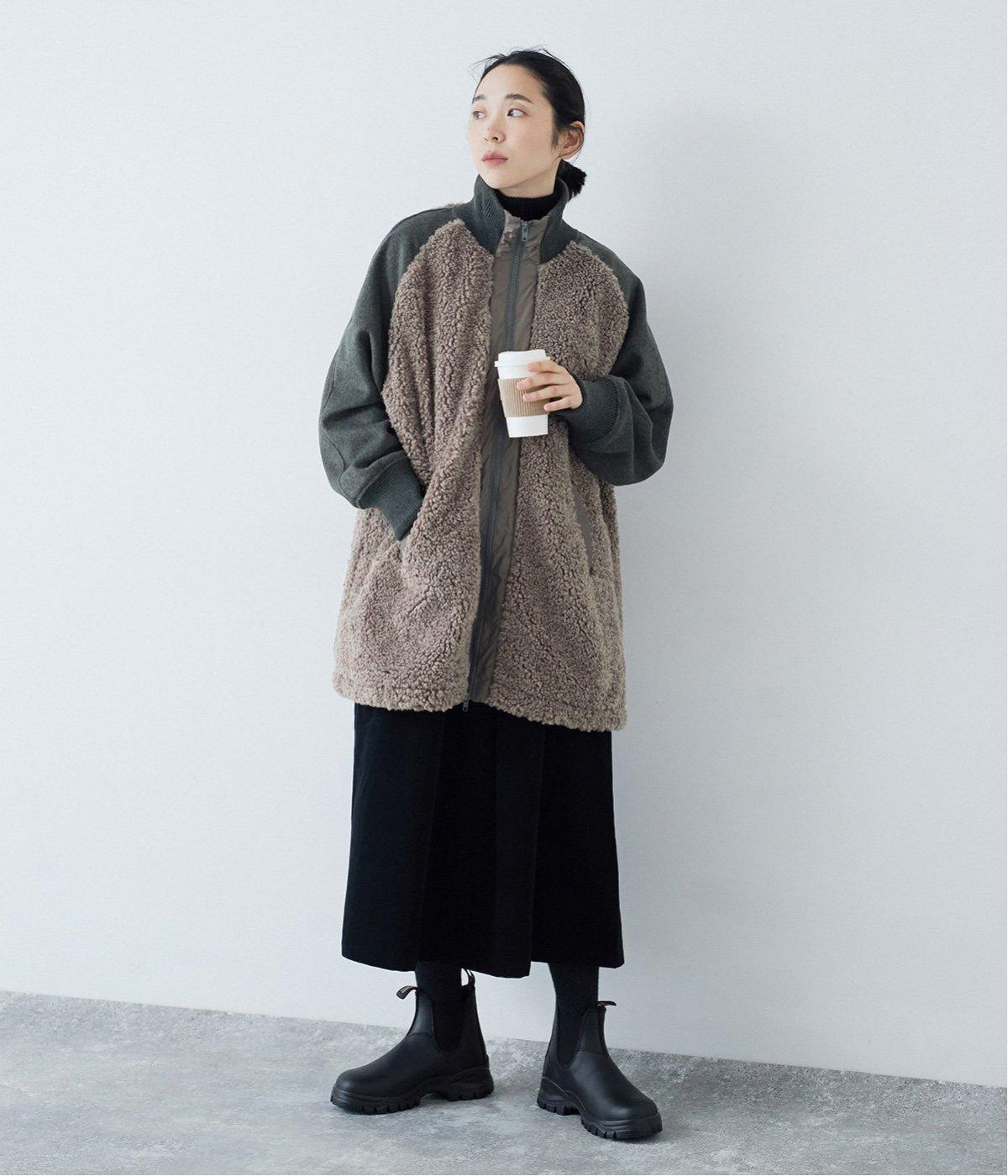 ボアの温もり、ナイロンの軽さ、ウール混袖の快適さ。ハーフ丈の使いやすさとゆったりとした着心地も相まって、冬の装いにそっと寄り添う一枚に仕上がっています。