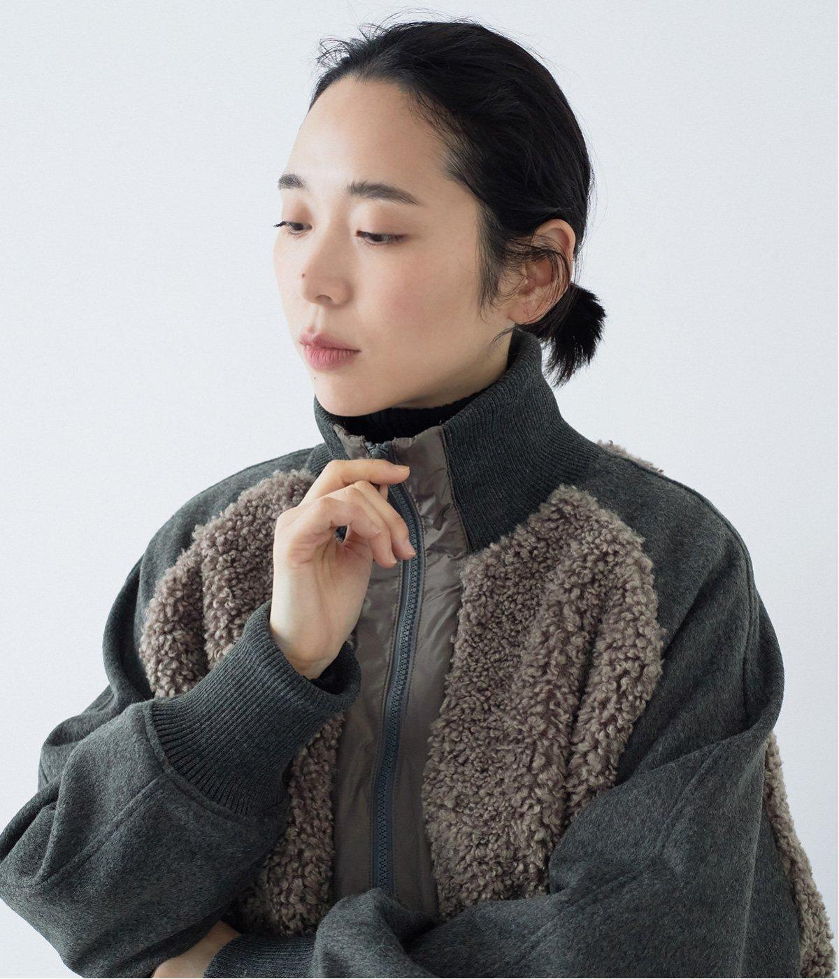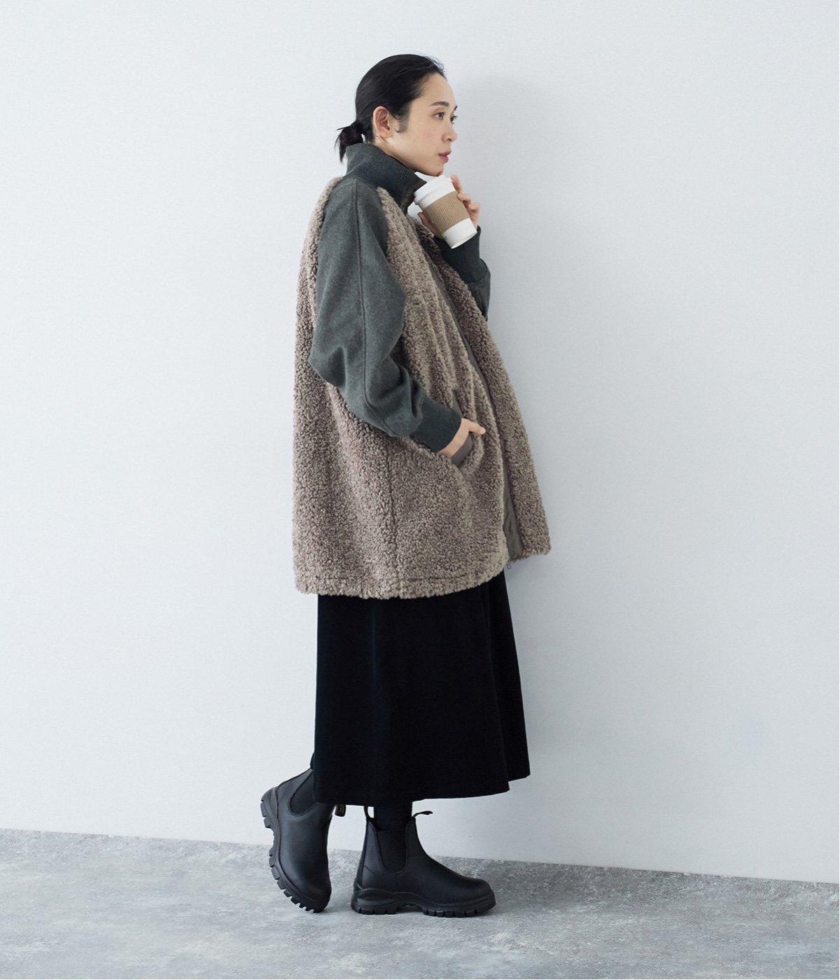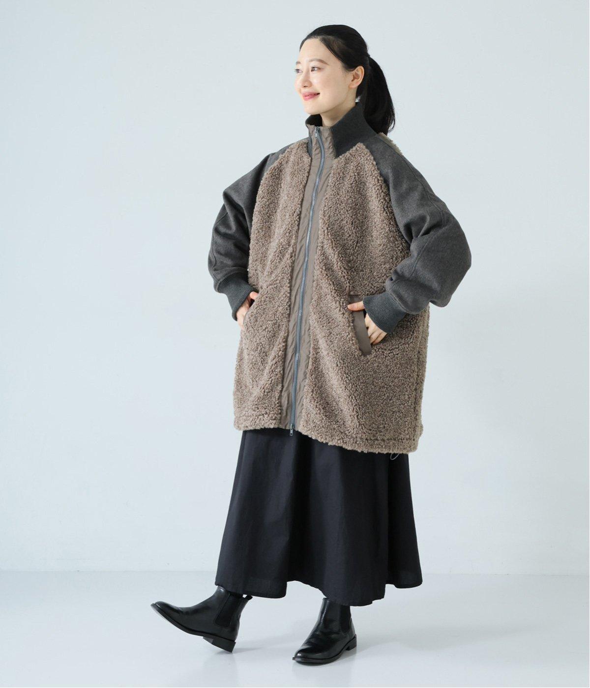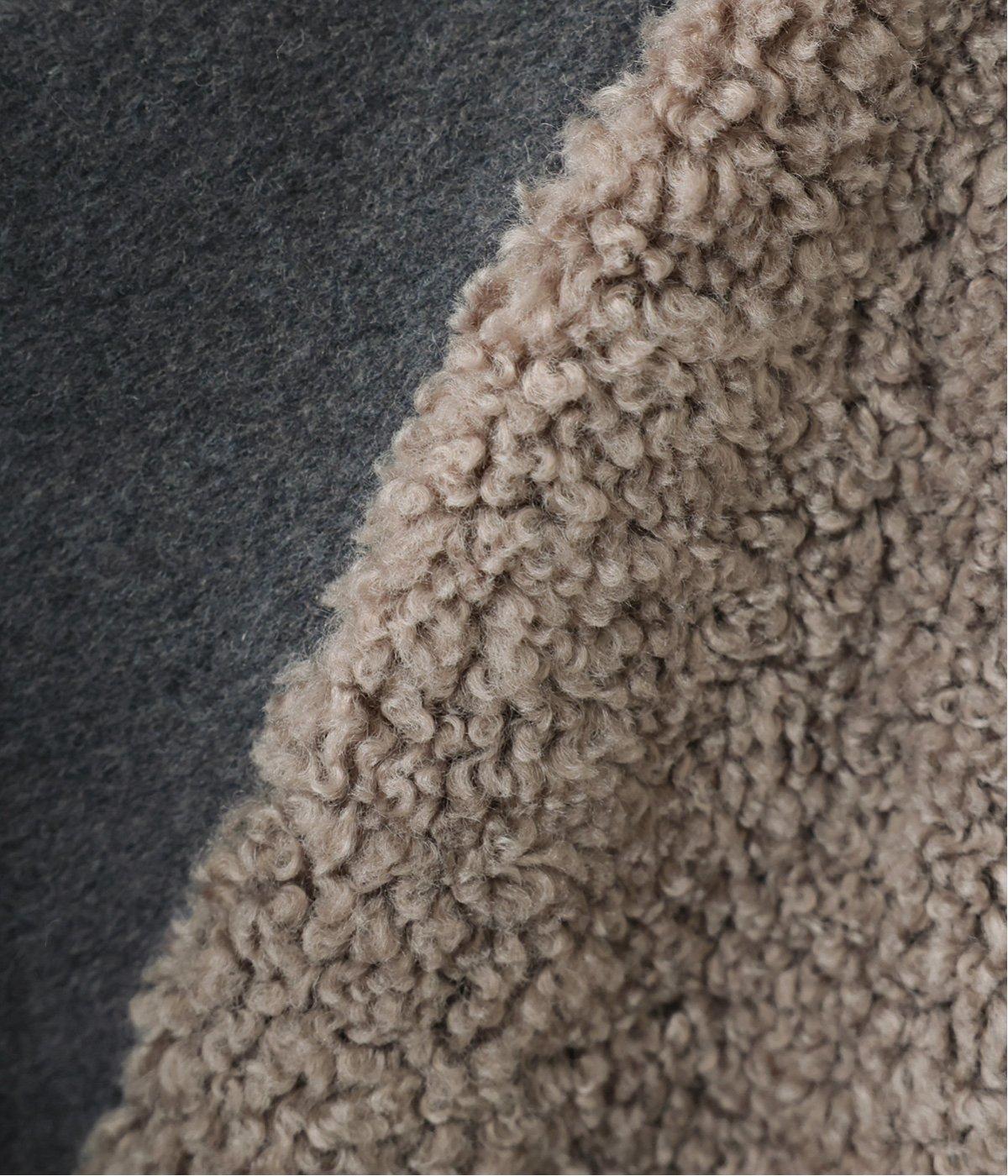 ボアの温もり、ナイロンの軽さ、ウール混袖の快適さ。ハーフ丈の使いやすさとゆったりとした着心地も相まって、冬の装いにそっと寄り添う一枚に仕上がっています。