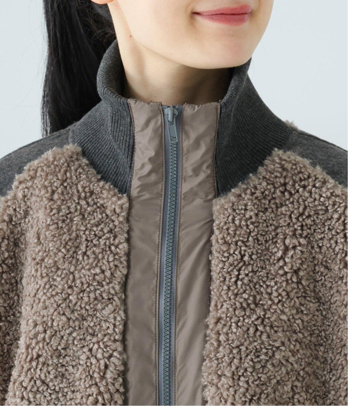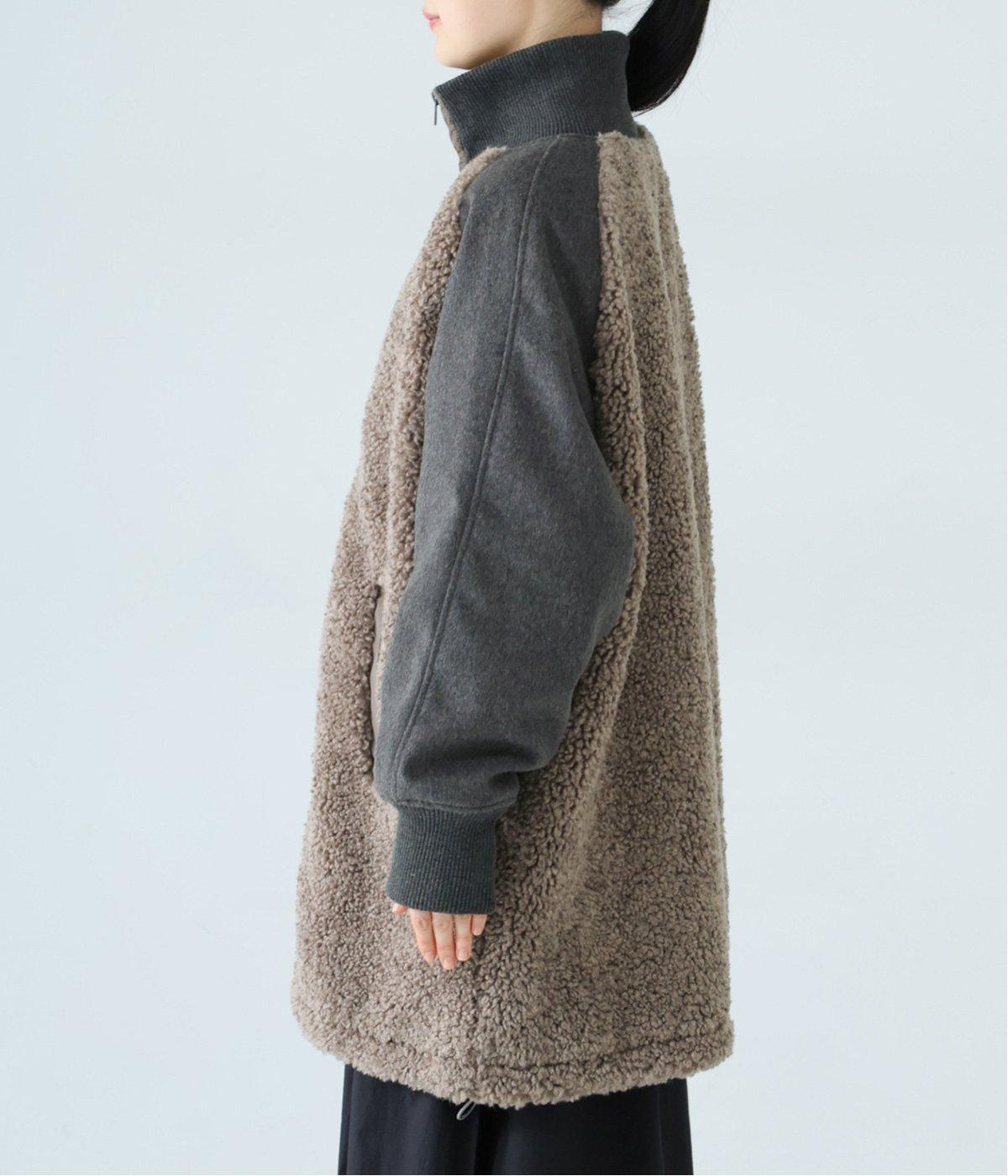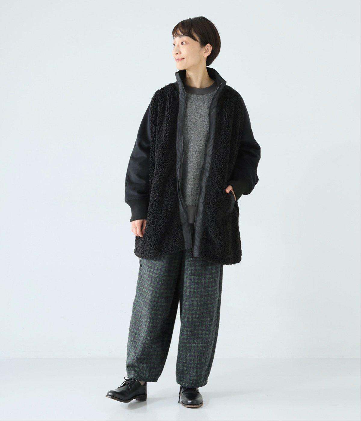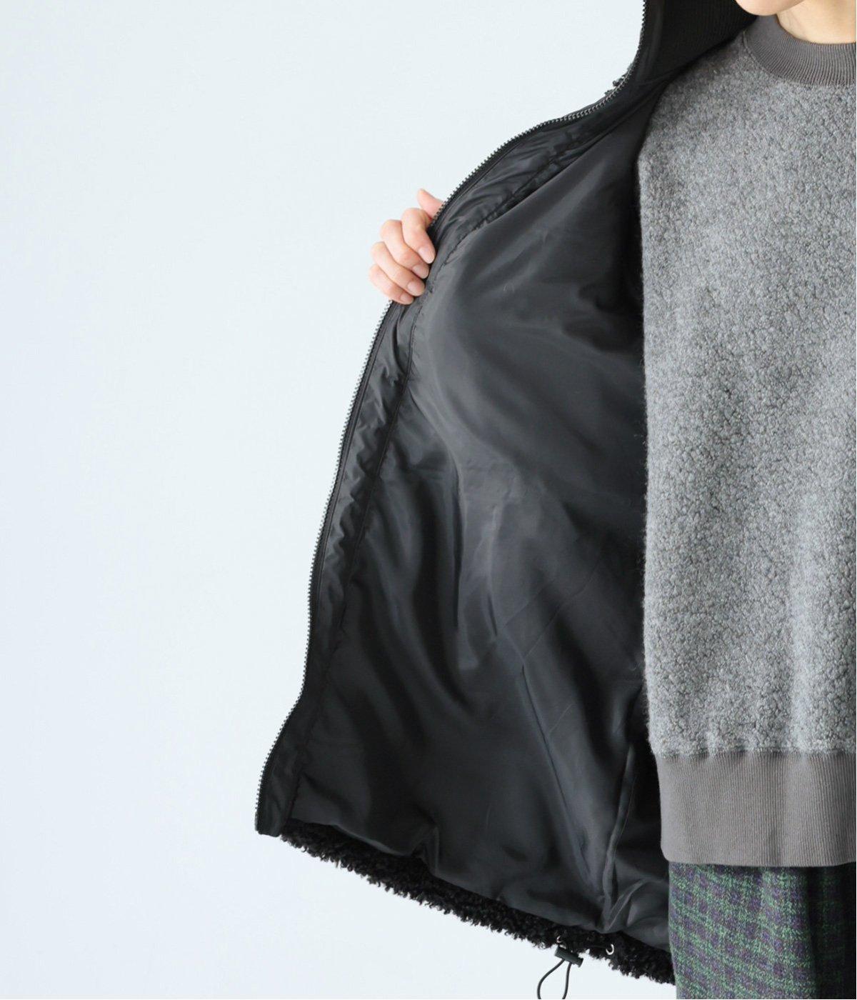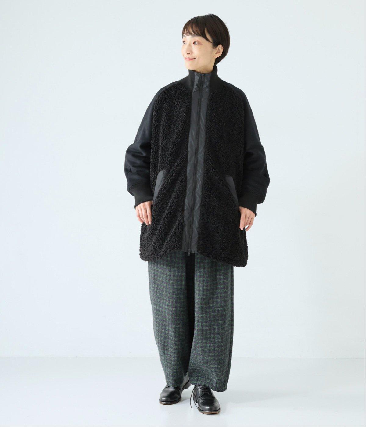 ボアの温もり、ナイロンの軽さ、ウール混袖の快適さ。ハーフ丈の使いやすさとゆったりとした着心地も相まって、冬の装いにそっと寄り添う一枚に仕上がっています。