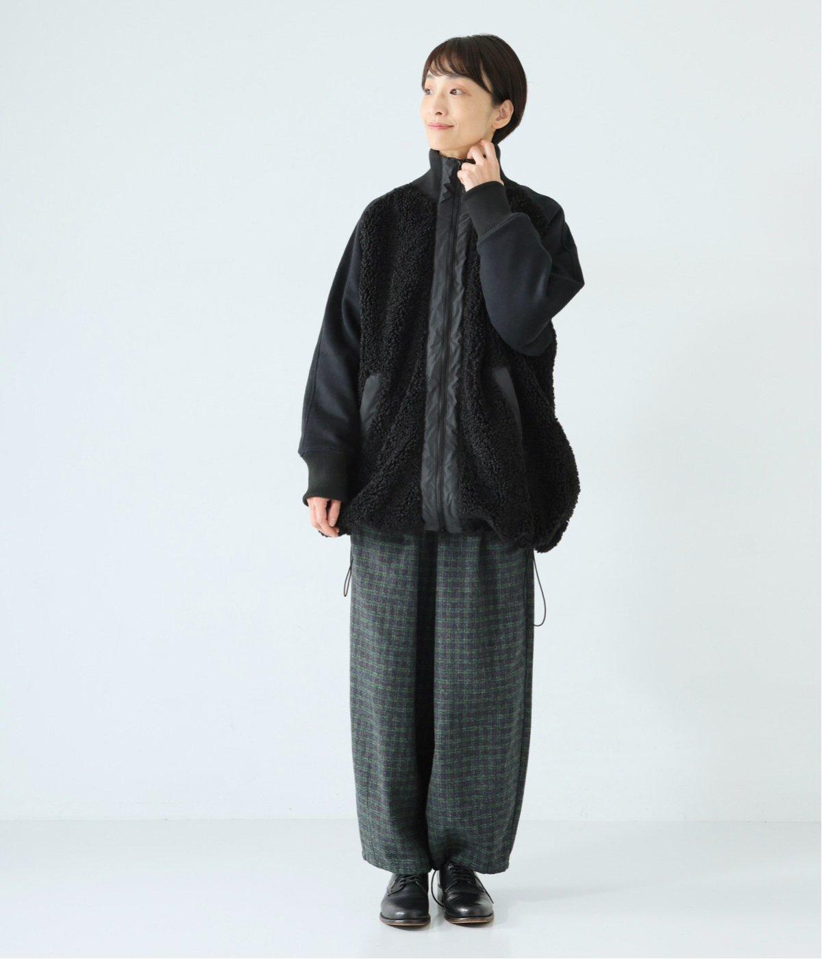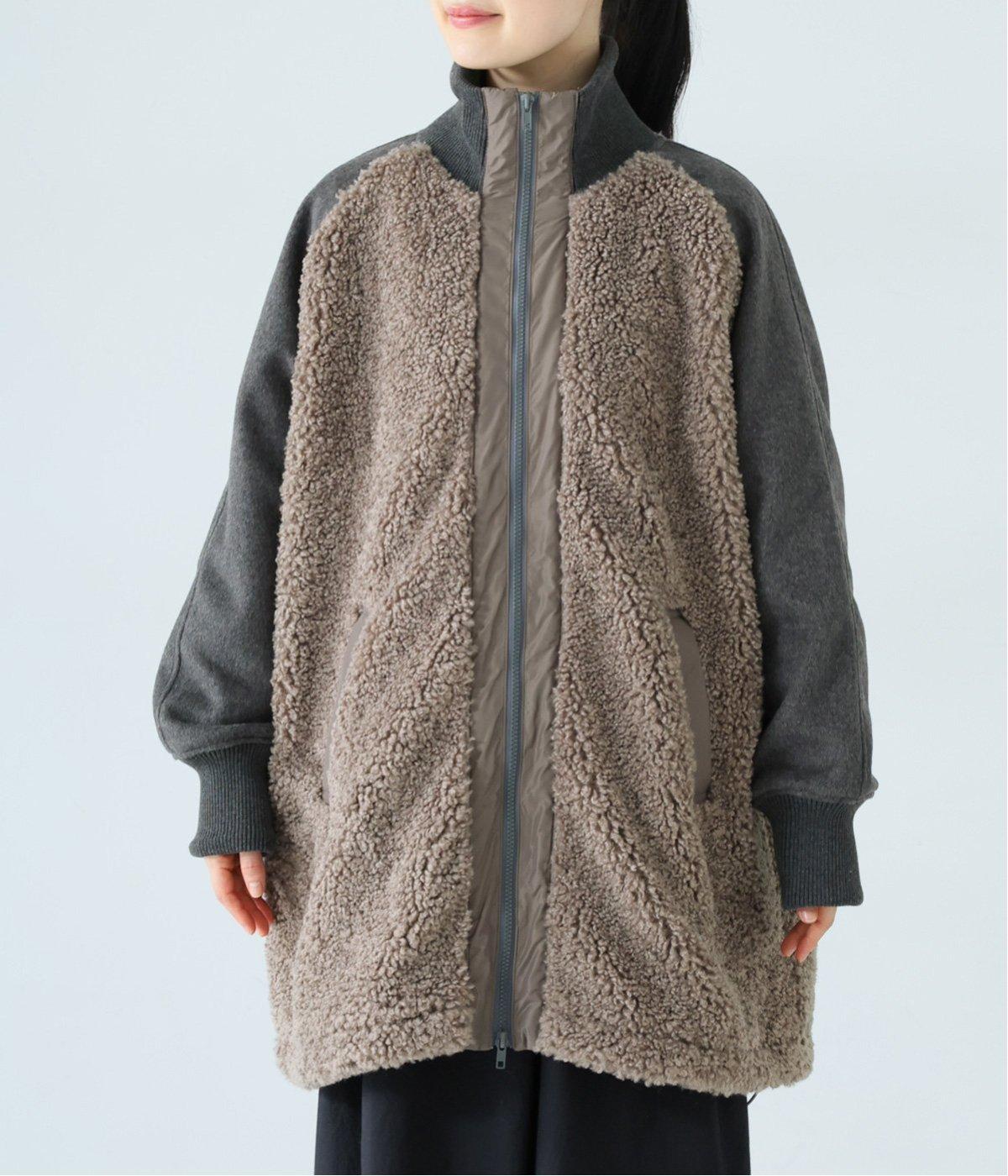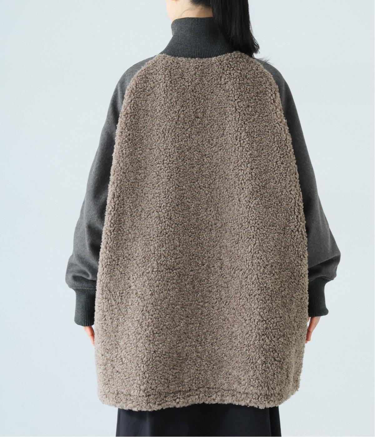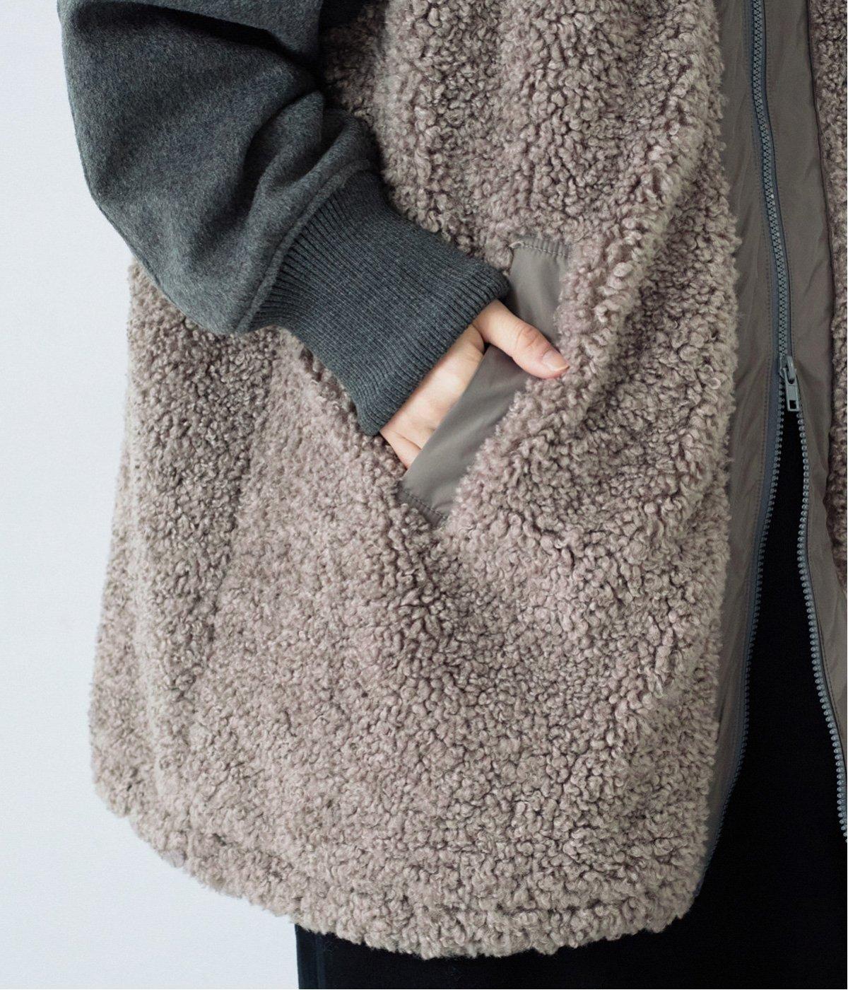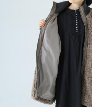ボアの温もり、ナイロンの軽さ、ウール混袖の快適さ。ハーフ丈の使いやすさとゆったりとした着心地も相まって、冬の装いにそっと寄り添う一枚に仕上がっています。