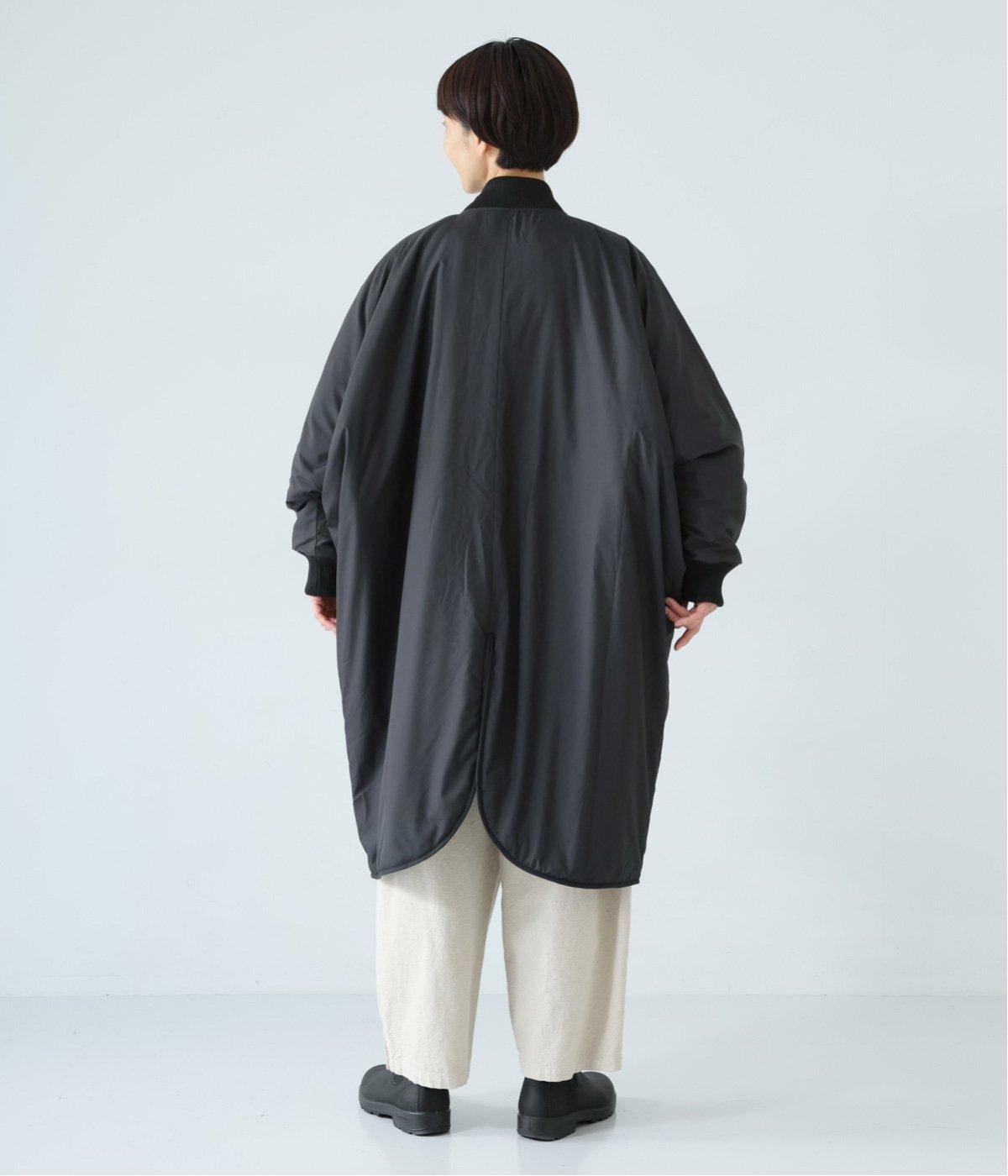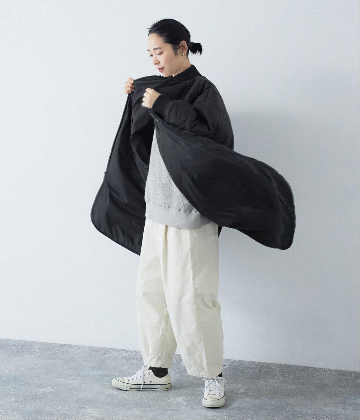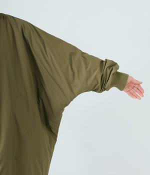 ドルマンスリーブのゆったりとしたシルエットで、厚手のニットやフーディーを重ねても窮屈さのないつくりです。