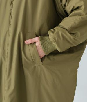 どこかMA-1を思わせる控えめなミリタリー要素で、コート全体にほどよいトレンド感をプラス。