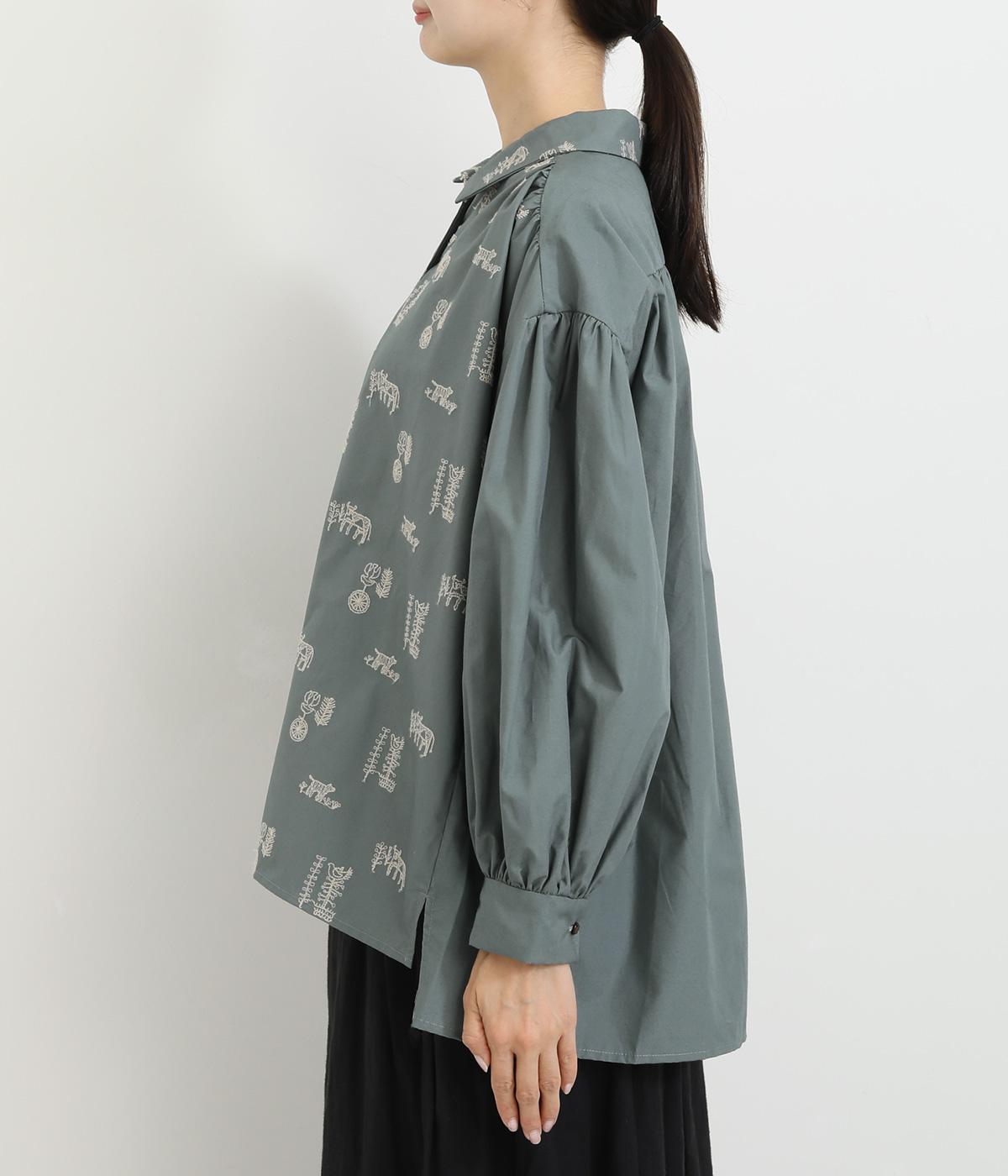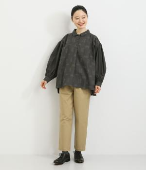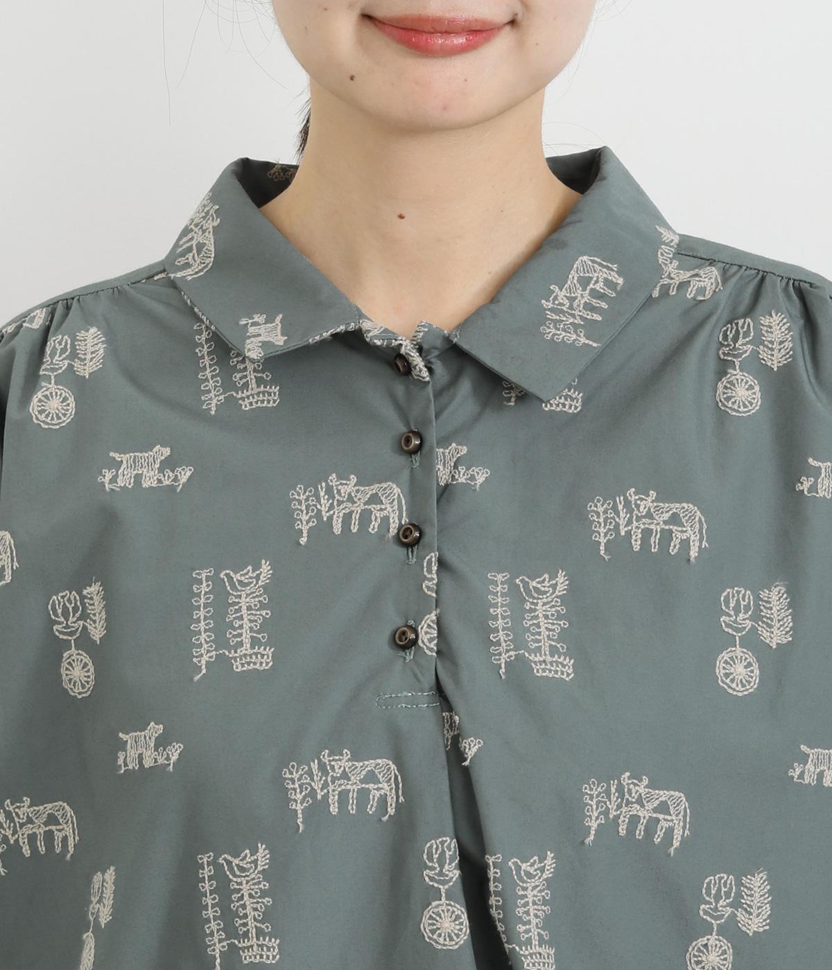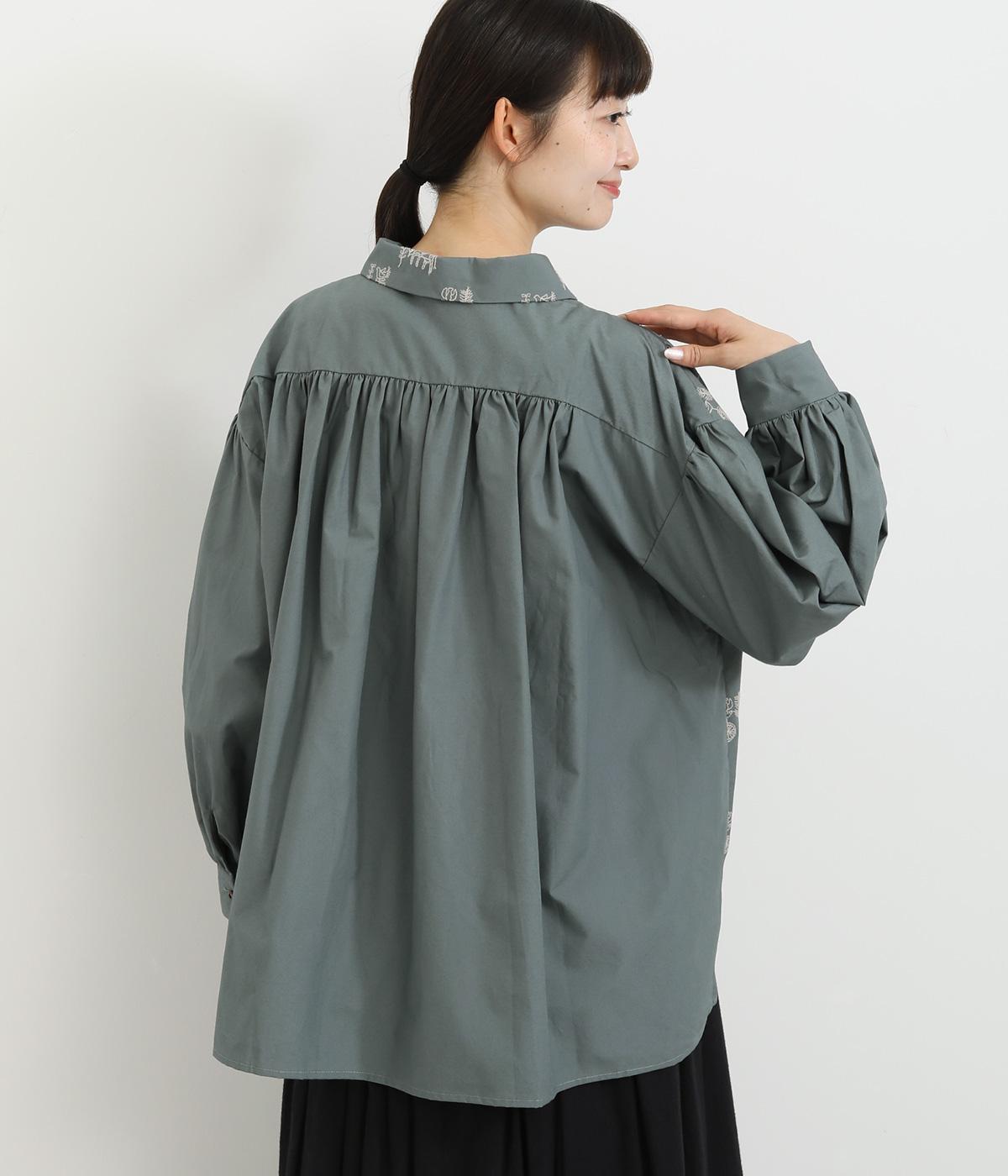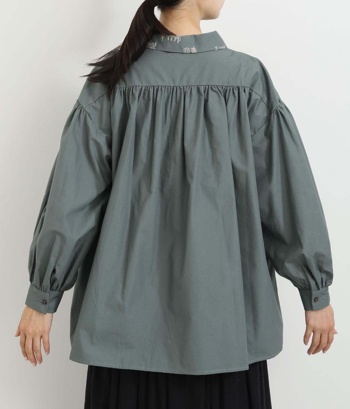 前身頃に北欧風刺しゅうをほどこしたブラウスです。肩と背中のヨーク下にギャザーをほどこし、女性らしさをプラスしました。刺しゅうの優しい味わいとゆったりした身頃がリラクシーな着心地を叶えます。