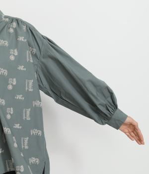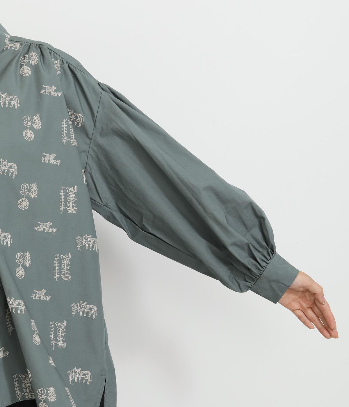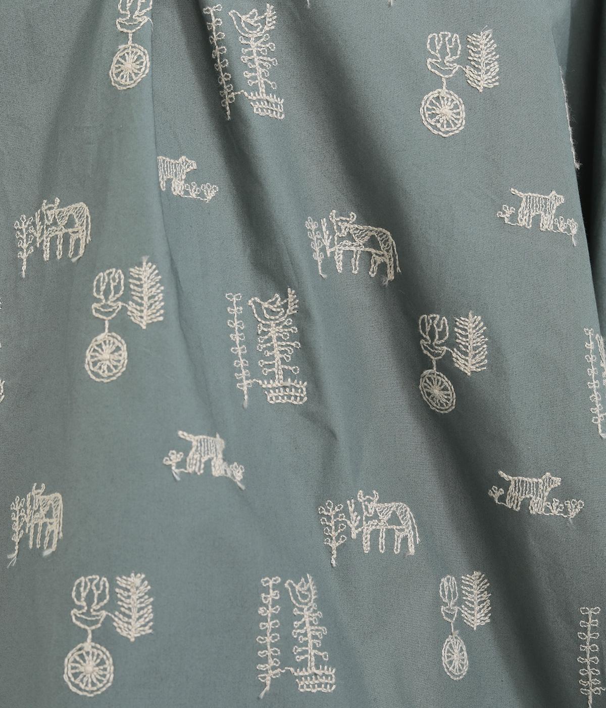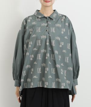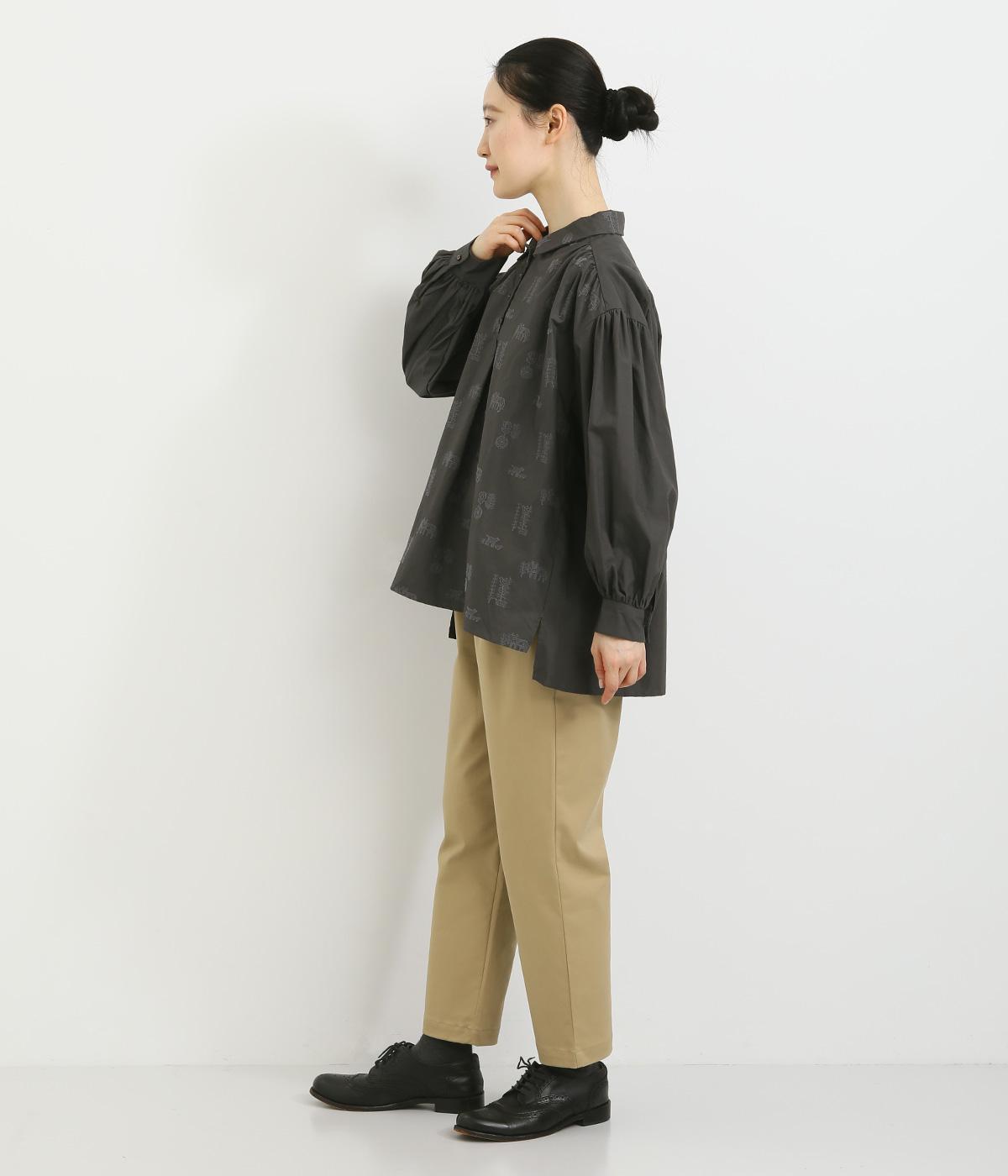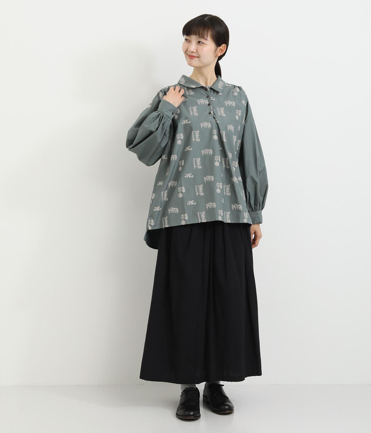 前身頃に北欧風刺しゅうをほどこしたブラウスです。肩と背中のヨーク下にギャザーをほどこし、女性らしさをプラスしました。刺しゅうの優しい味わいとゆったりした身頃がリラクシーな着心地を叶えます。