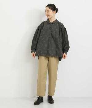 さらりとした肌ざわりと、ほどよいハリが特徴のコットンタイプライターを使用しました。シルエットを美しく保ち、きちんと見えします。ほんのり光沢感があり、品のある素材感です。