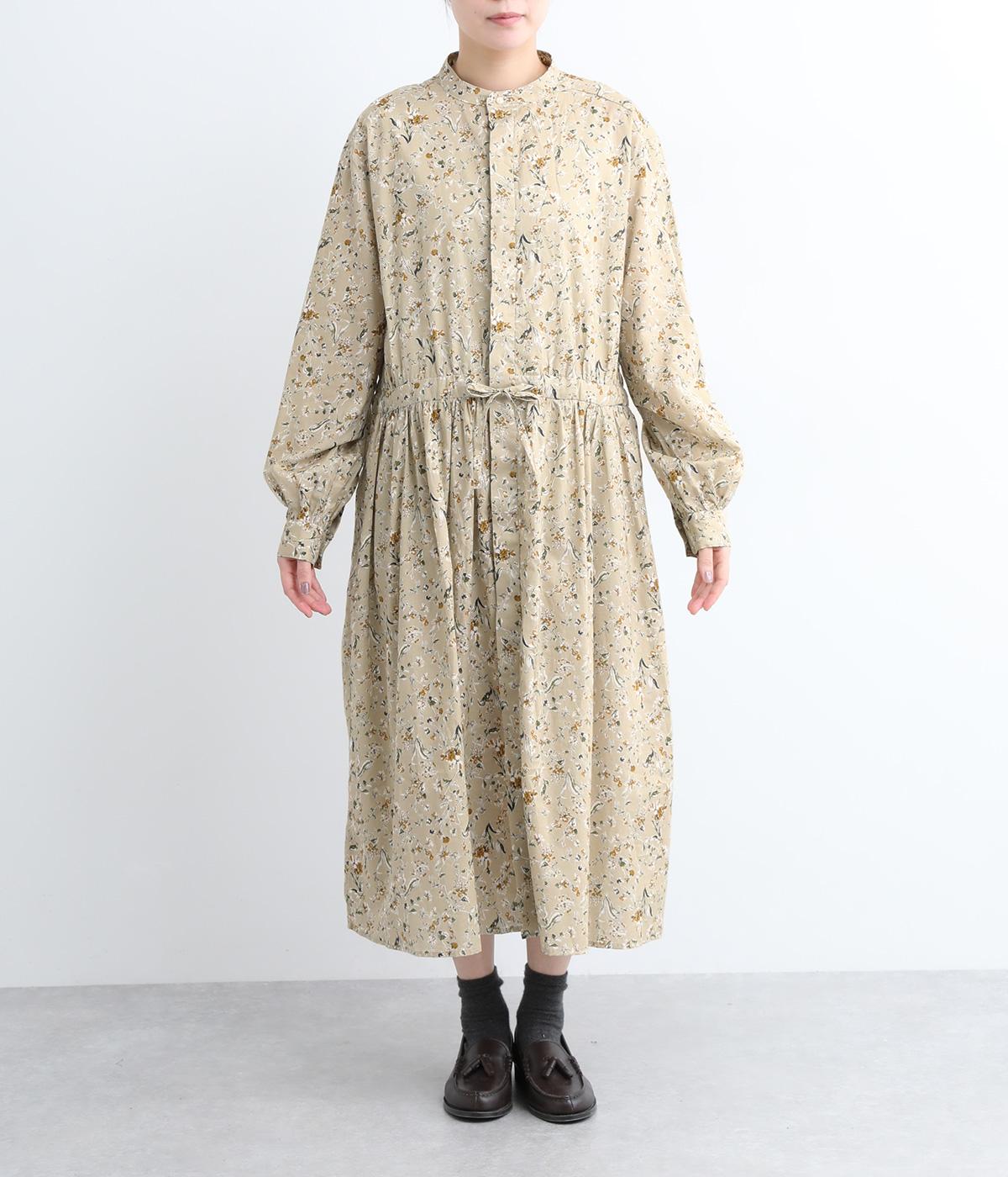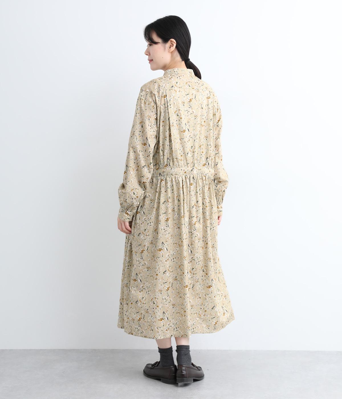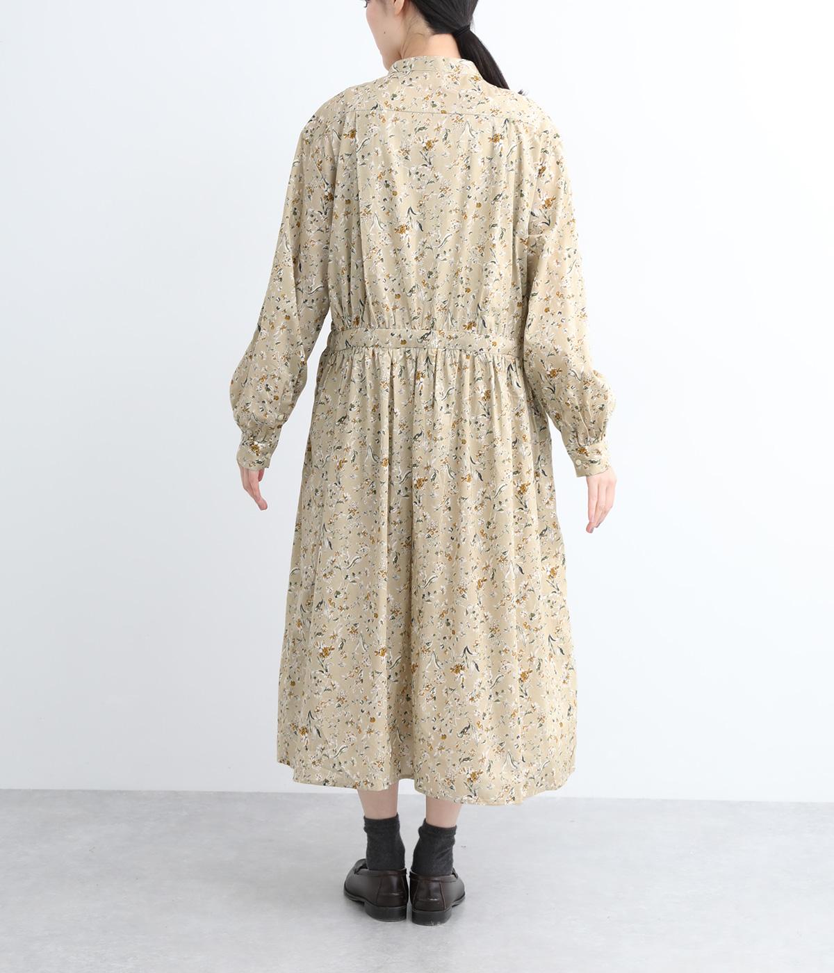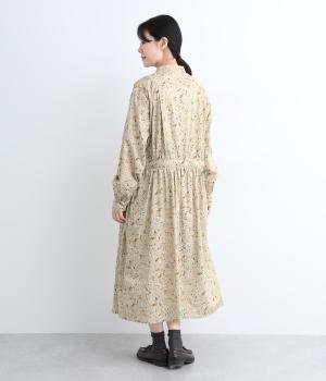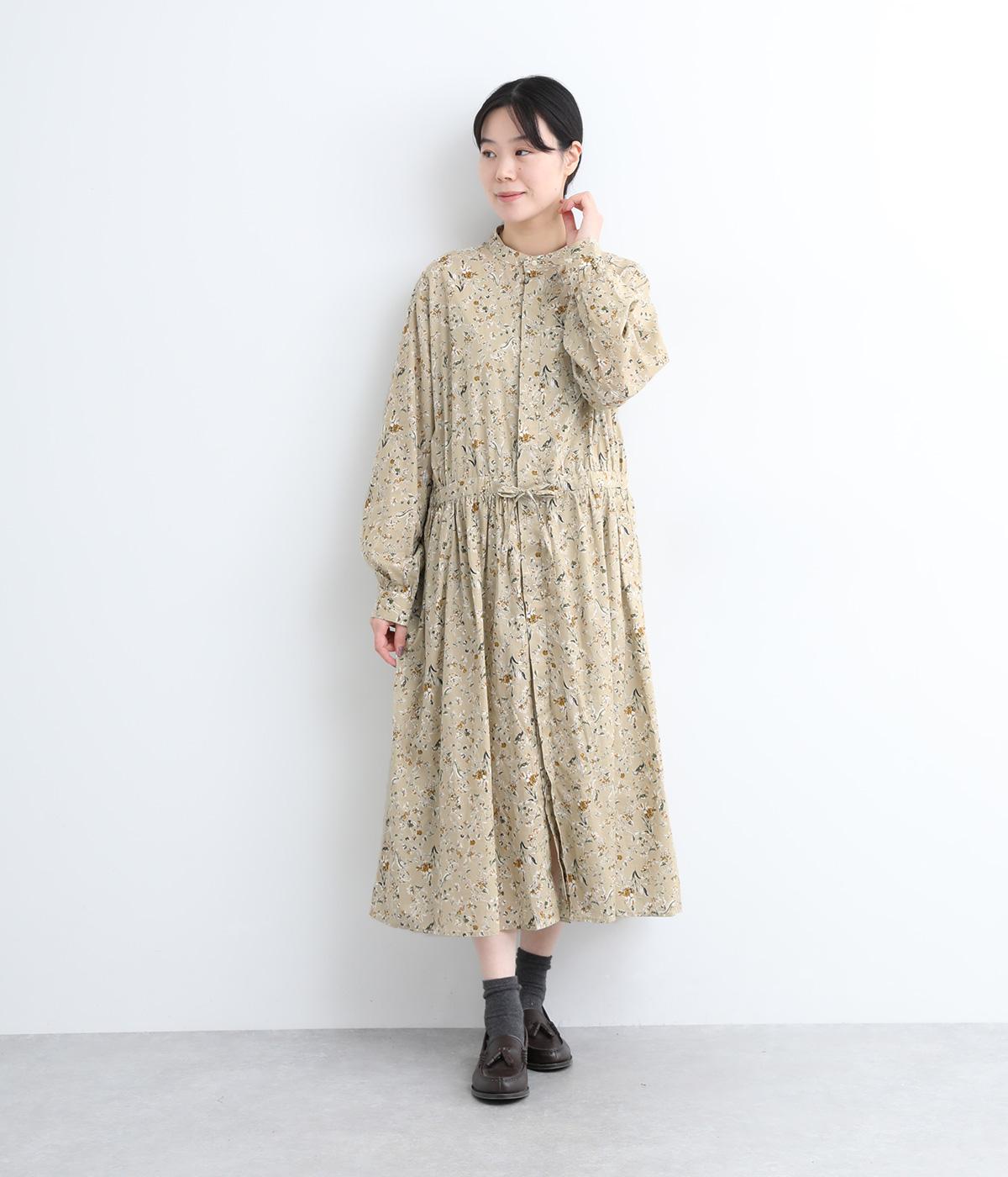 繊細に描かれたフラワープリントが大人の可愛らしさも感じさせる美しい一枚。ウエストにギャザーを寄せてメリハリをつけ、ゆったりと着こなせます。前あきで羽織りにしたり、ウエストリボンを結んだりアレンジも◎。ボタンのセレクトにもこだわりました。