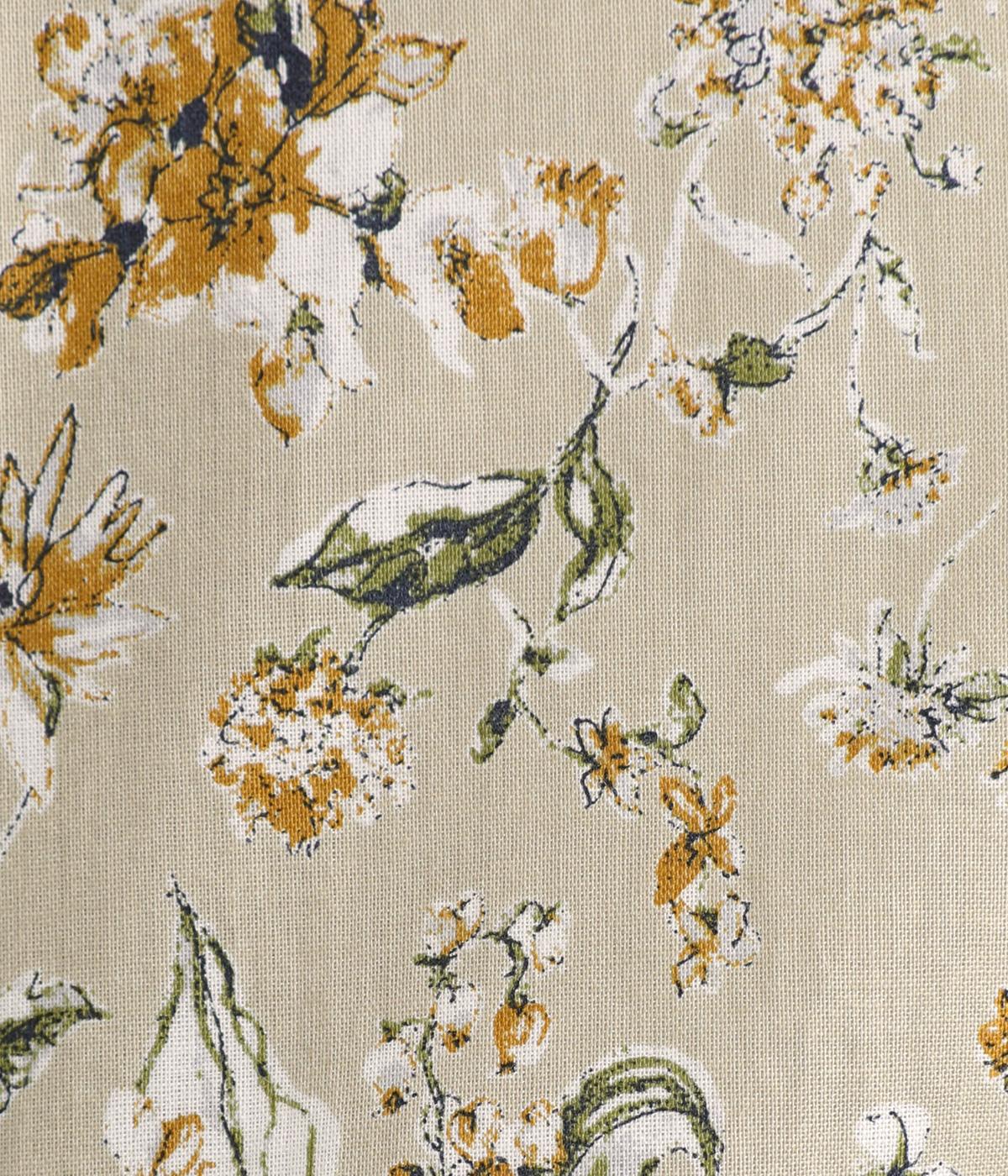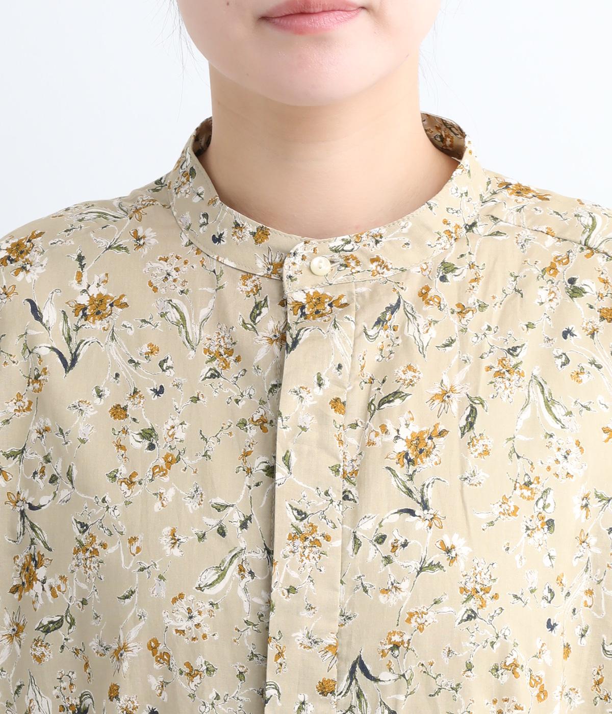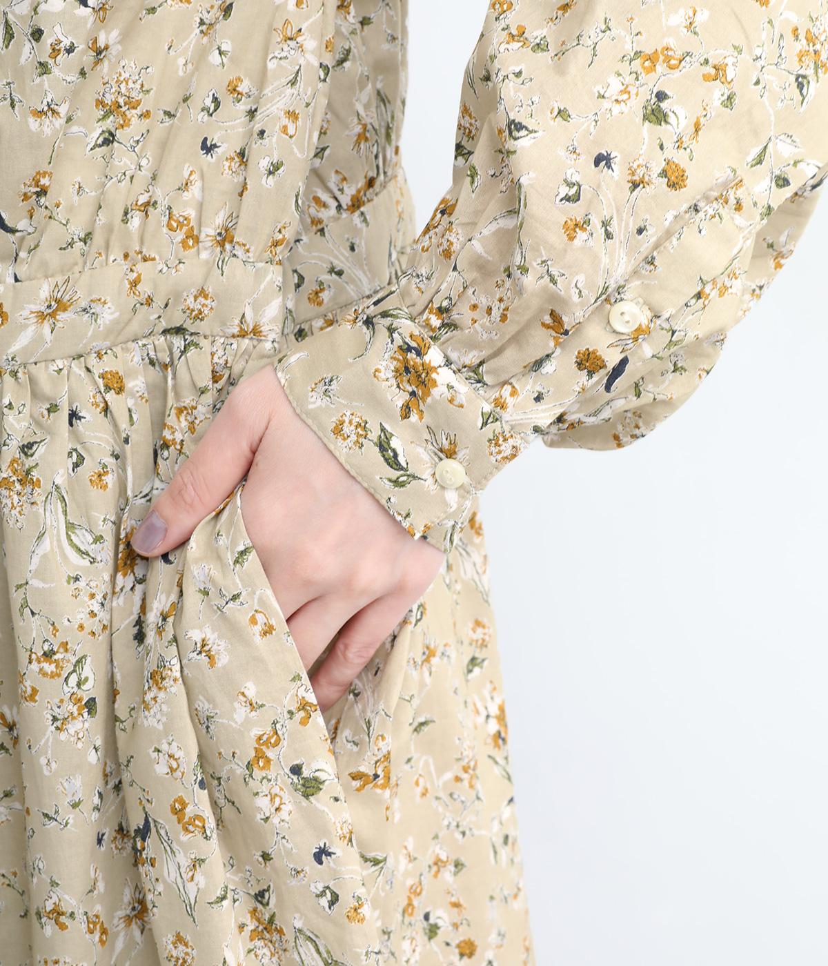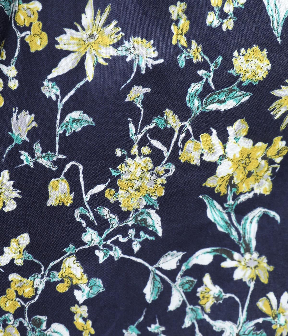 繊細に描かれたフラワープリントが大人の可愛らしさも感じさせる美しい一枚。ウエストにギャザーを寄せてメリハリをつけ、ゆったりと着こなせます。前あきで羽織りにしたり、ウエストリボンを結んだりアレンジも◎。ボタンのセレクトにもこだわりました。