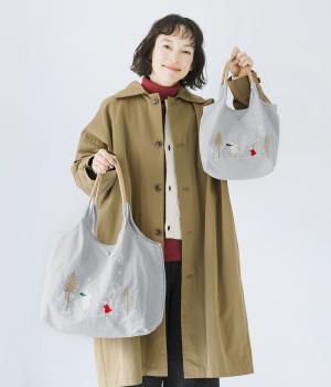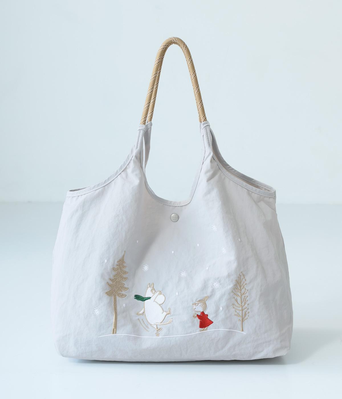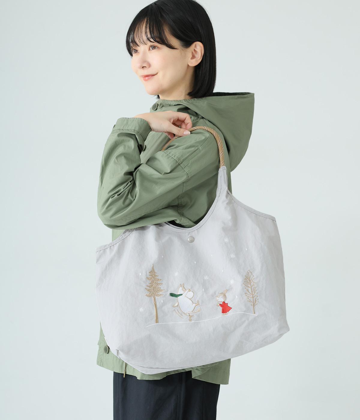 ムーミンの刺しゅうが愛らしいトートバッグ。A4ファイルやボトルもらくらく入る大容量サイズで、通勤やお買い物にもぴったりです。内側にはファスナーポケットを備えており小物の整理に便利。ハンドルは肩掛けも可能な長さです。