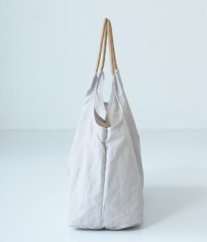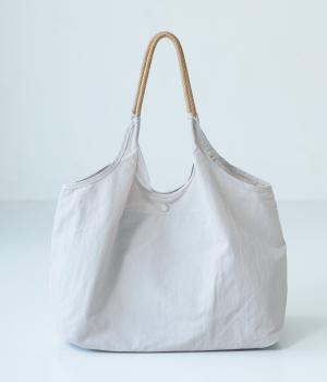 毎日使いたくなるような軽量素材。たたむとコンパクトになる薄手生地で持ち運びにも便利です。硬さをおさえた弾力のあるハンドルは、手や肩にここちよくなじんでくれます。