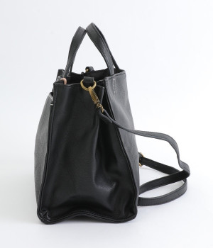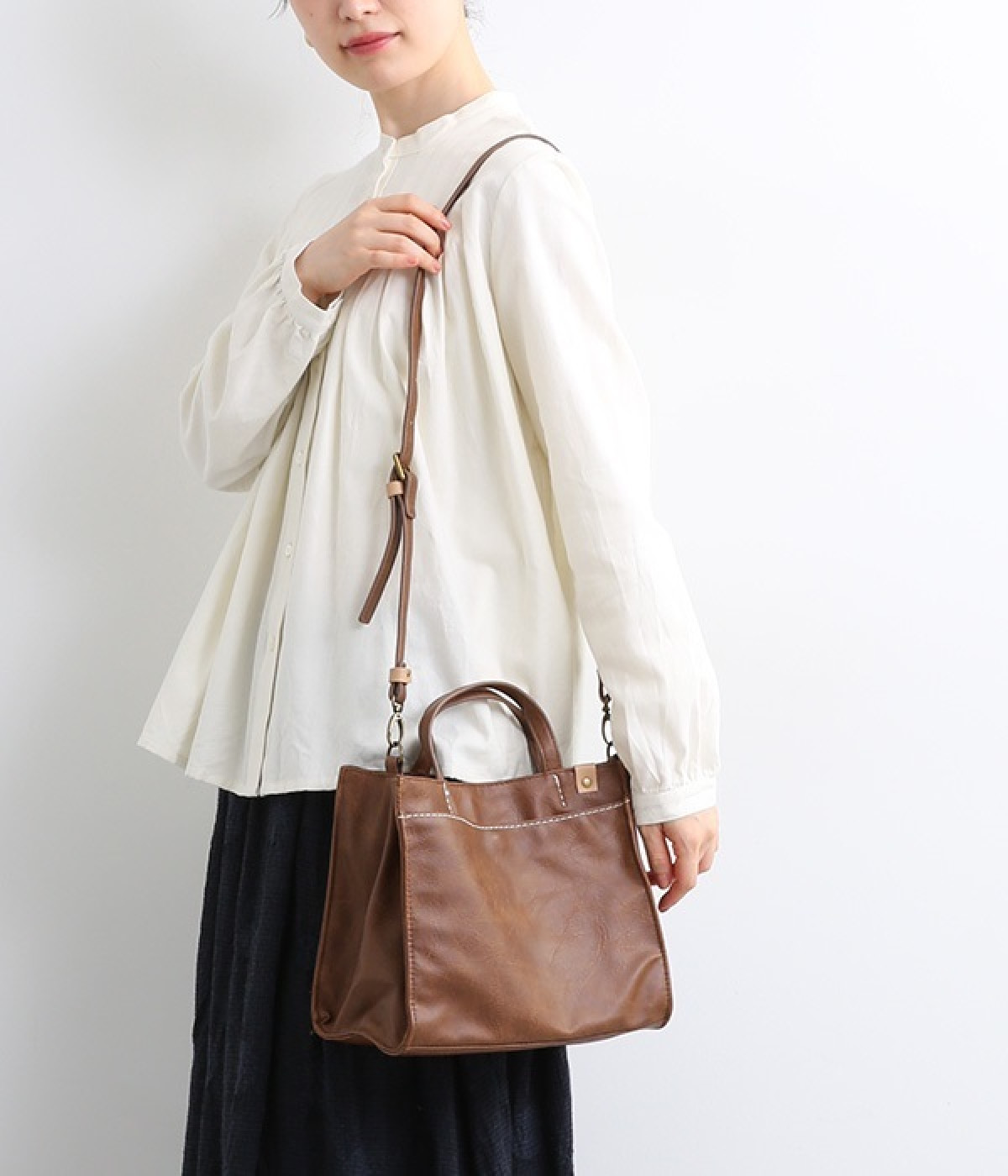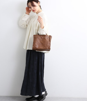 本革風の合皮で作られたトートバッグです。絶妙な色ムラと柔らかな手触りが特徴的。内側には仕切りやポケットがあり整理がしやすく、コンパクトながらも収納力を兼ね備えています。手提げと肩掛けの2wayなので、コーディネートに合わせて印象の変化を楽しめるのが◎。ベーシックなデザインなので、季節やトレンドを問わず長くお使いいただけます。