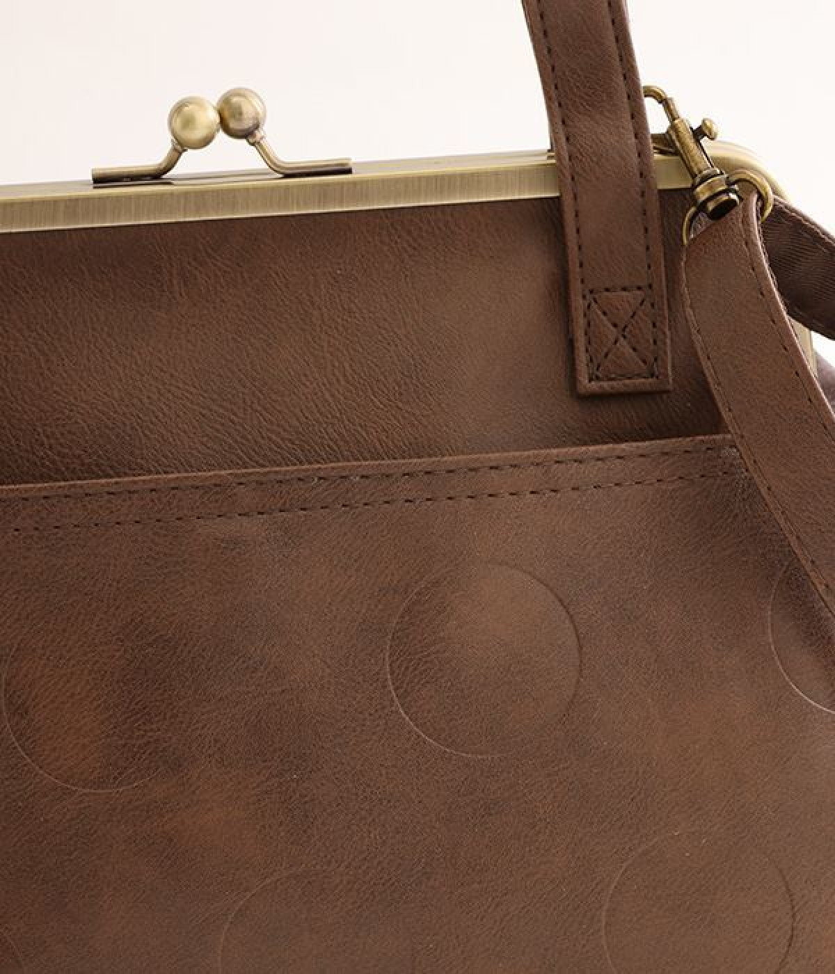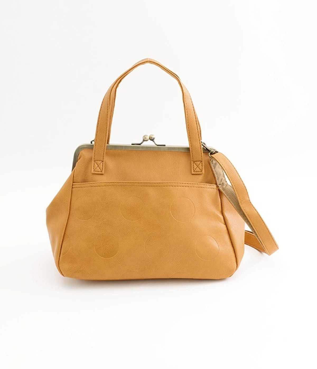 シンプルで柔らかな合皮に型押しドットが大人かわいい印象に仕上がったバッグです。手提げとしてはもちろん、取り外し可能なベルトをつければショルダーバッグとしても活躍する2way仕様で用途によって使い分けられます。マチもしっかりあるので容量も◎合皮なのでちょっとした雨の日でも使え、ポケットも充実しているデイリーバッグです。