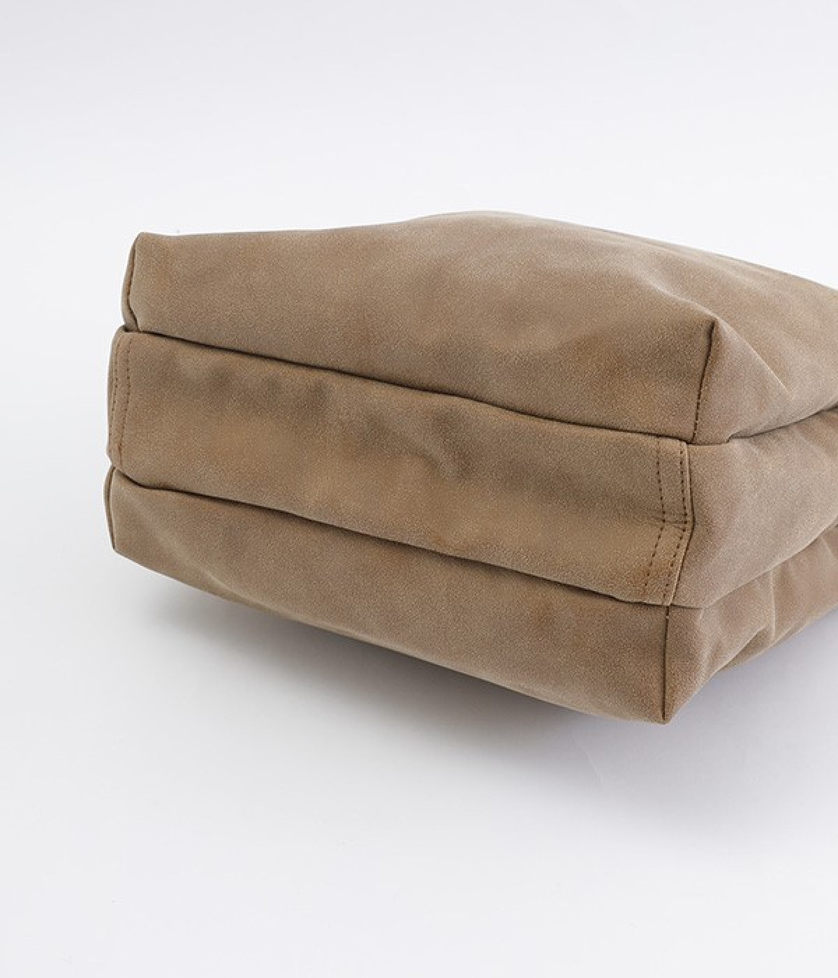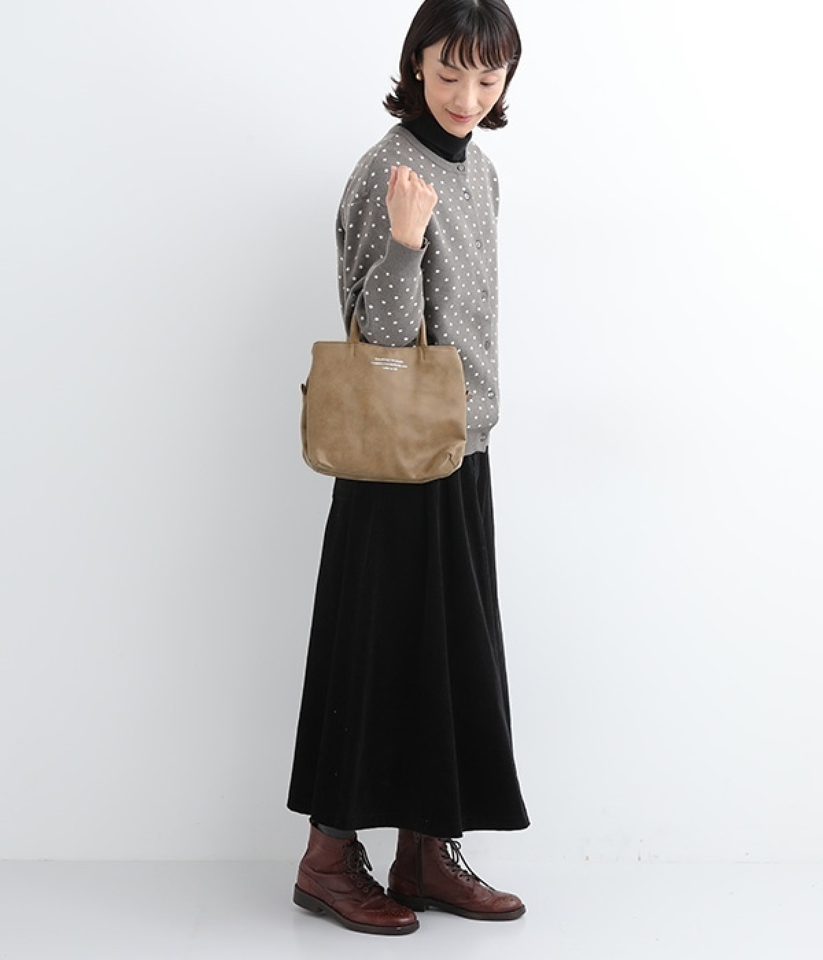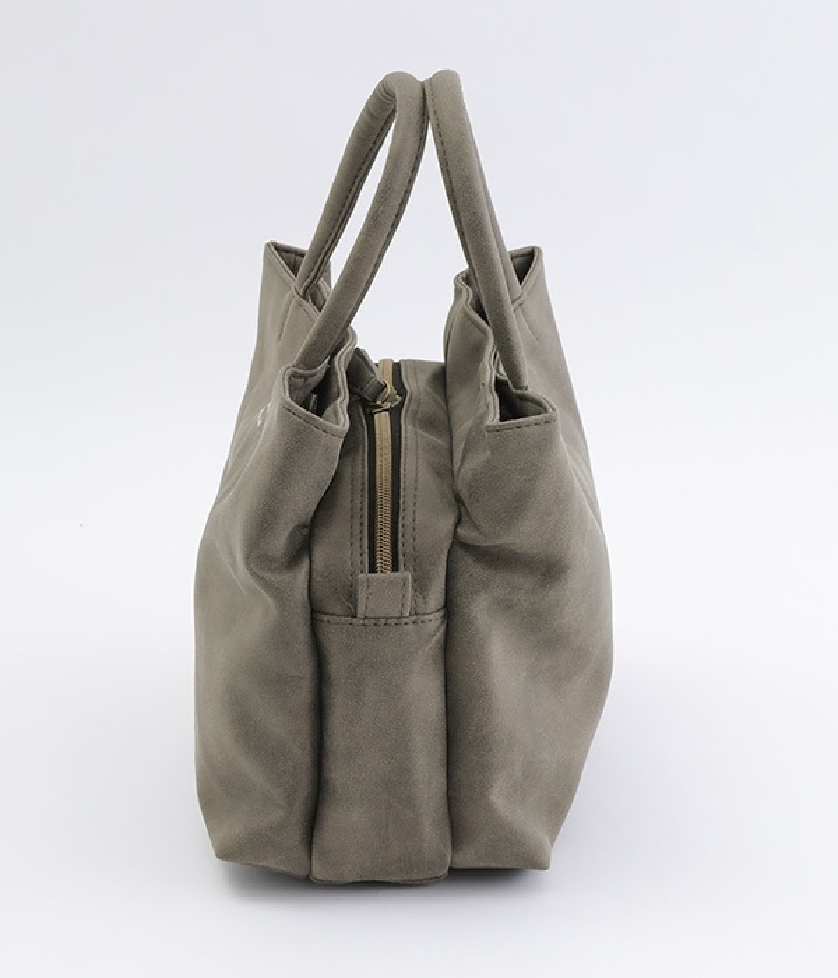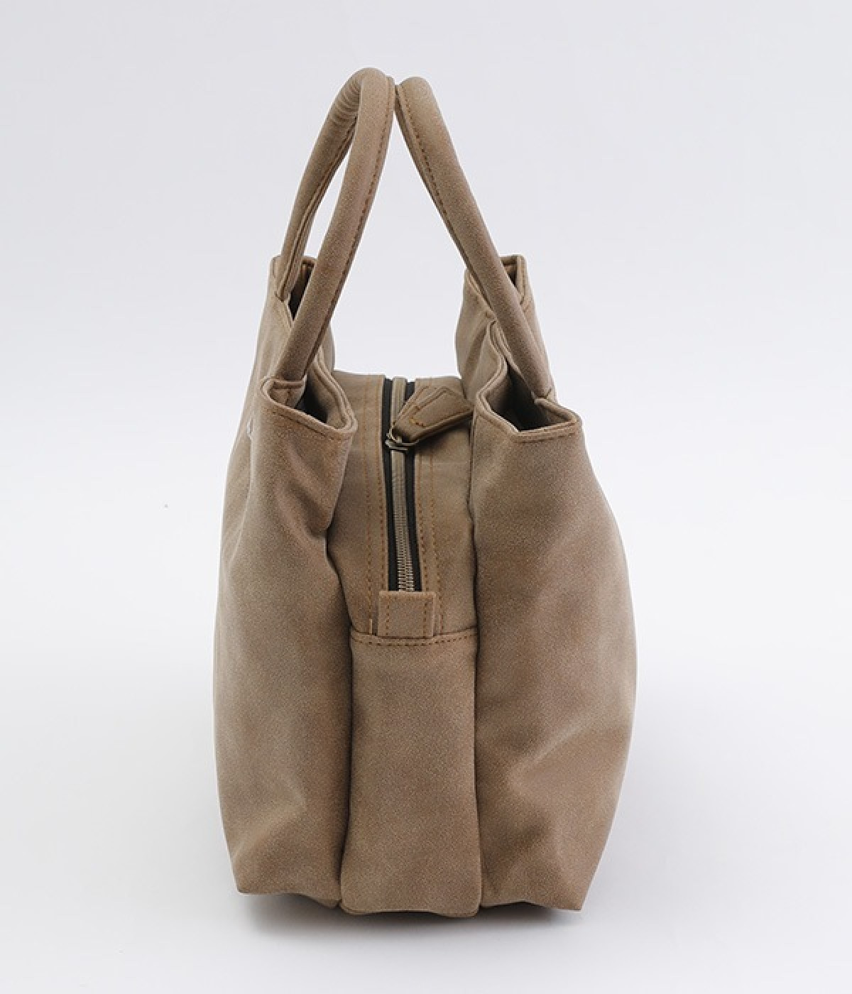 使い込んだようなリアルな風合い&マット仕上げで大人の雰囲気をまとうバッグ。収納部を大きく三つにセパレートして、アイテムごとの仕分けが簡単に行える仕様です。センターの収納部にはファスナーが備わり、貴重品などを入れておくのに便利。いくつものポケットもセットしているので、中身が迷子になりません。コンパクトなシルエットながらマチ幅を確保し、毎日の手まわり品がすっきりとおさまります。とても軽量の仕上がりで手持ちタイプでも持ち歩きやすいのが魅力です。