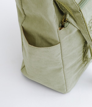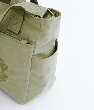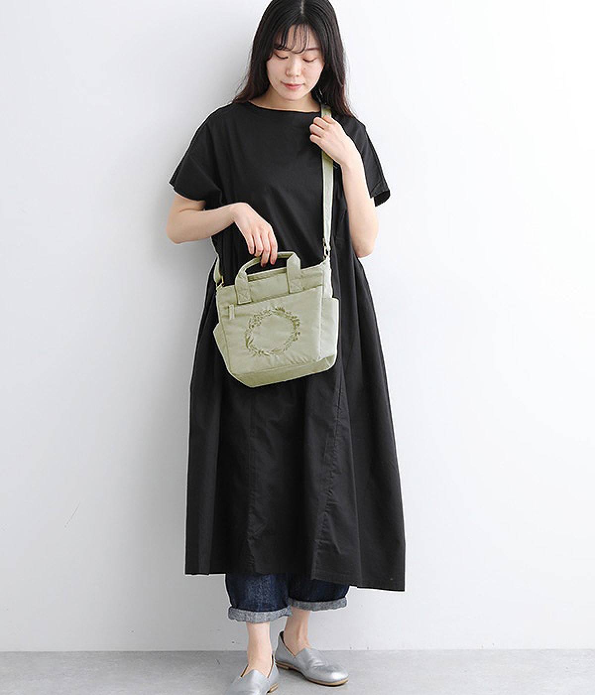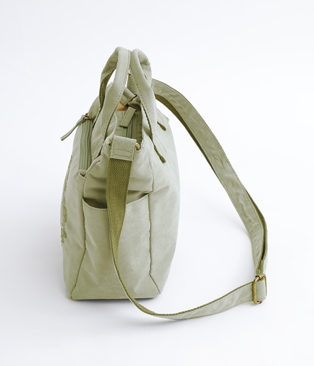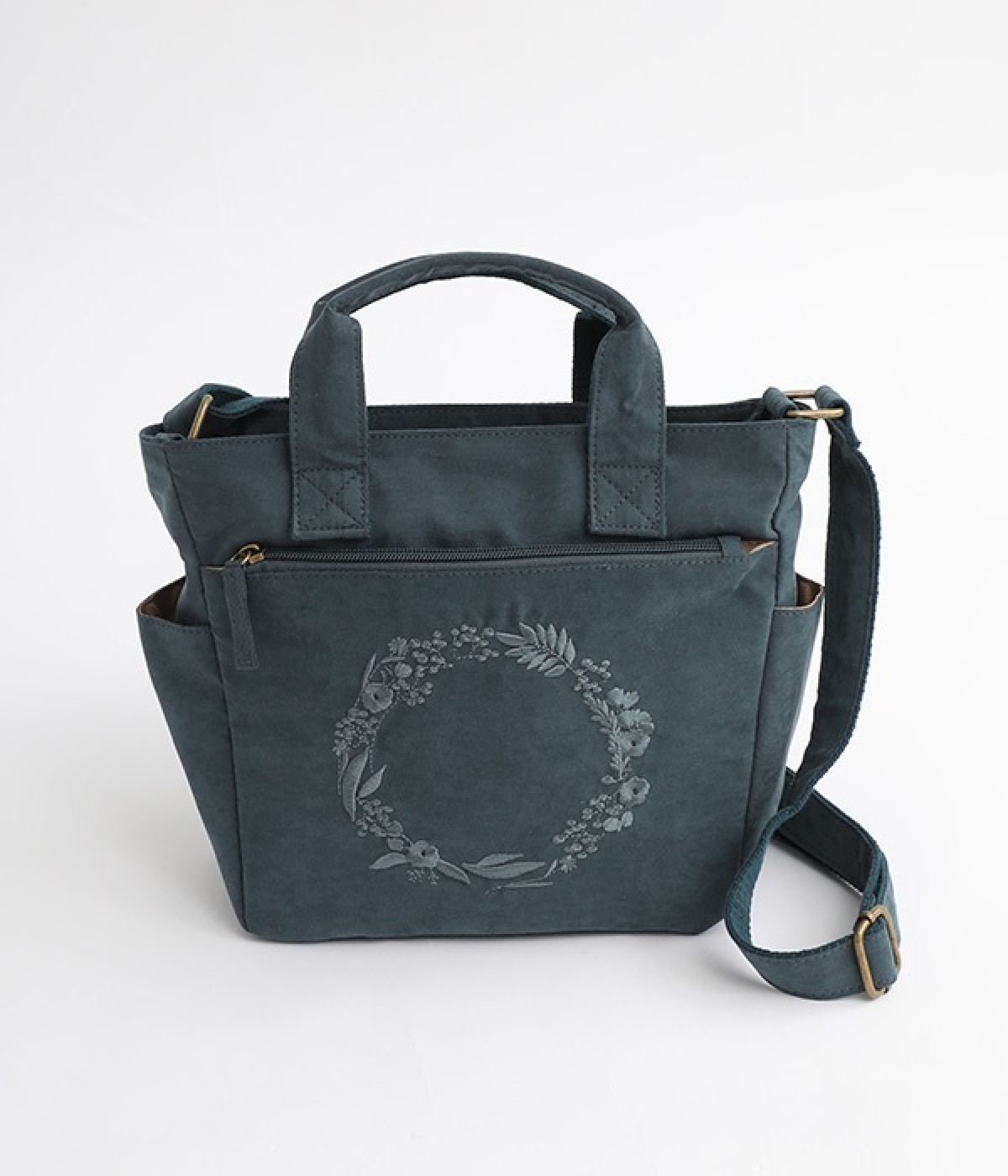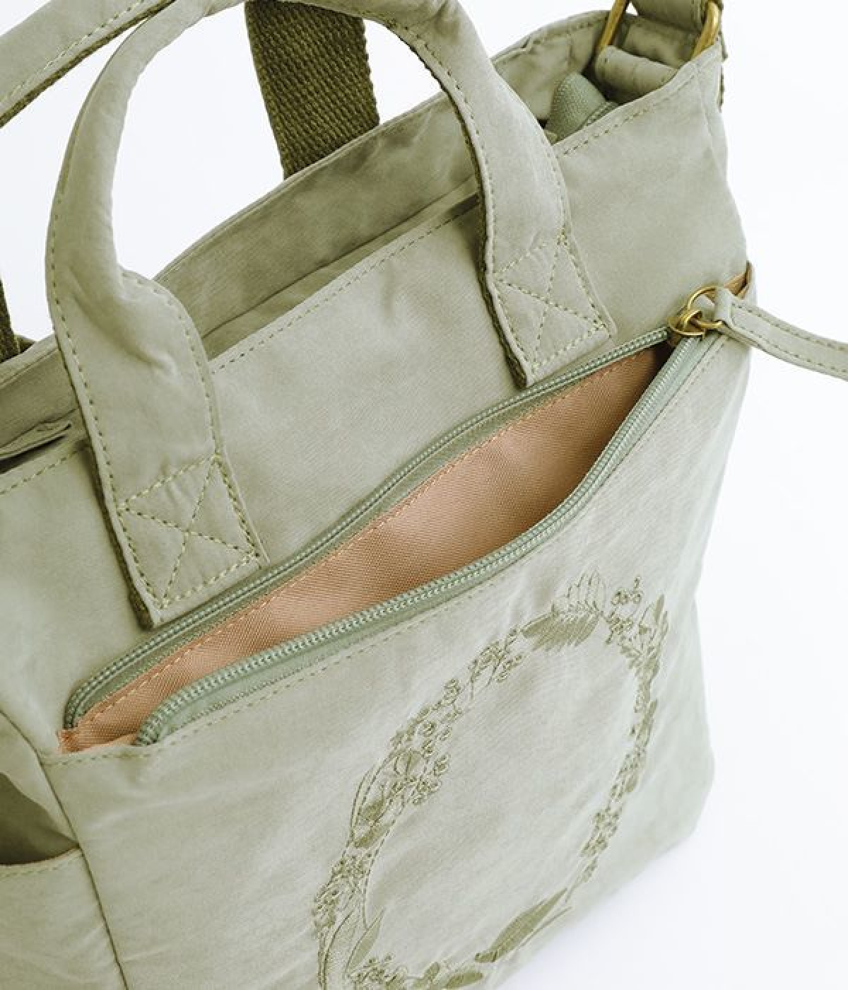 やわらかい手触りが特徴のピーチスキン風生地に、ボタニカル柄刺しゅうを施したショルダーバッグです。表情豊かな仕上がりで、大人のナチュラルスタイルと相性◎。手提げも肩掛けも可能なので、荷物の量やコーディネートに合わせて持ち方がアレンジできます。ファスナー開閉で防犯面も安心。ポケットも充実しているため整理整頓しやすく、デイリーのお出掛けに活躍します。