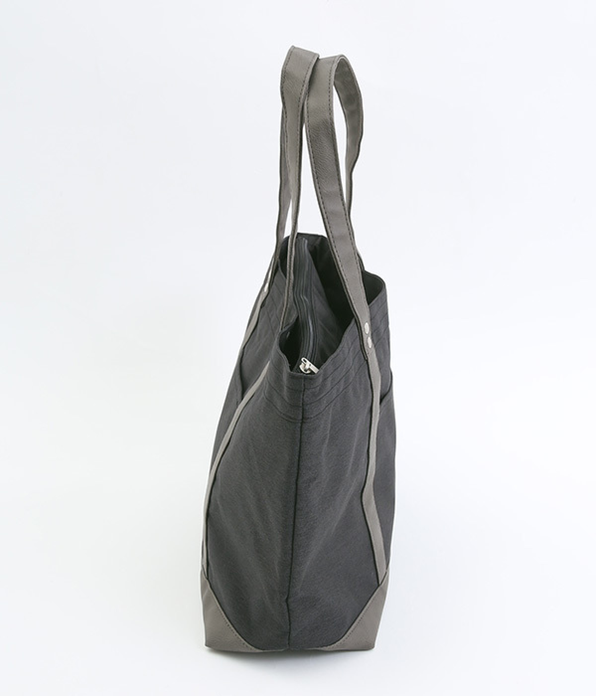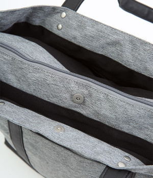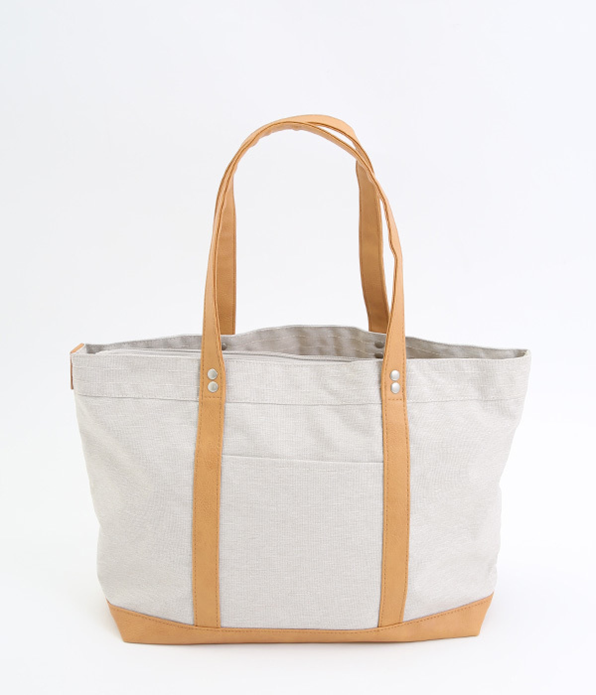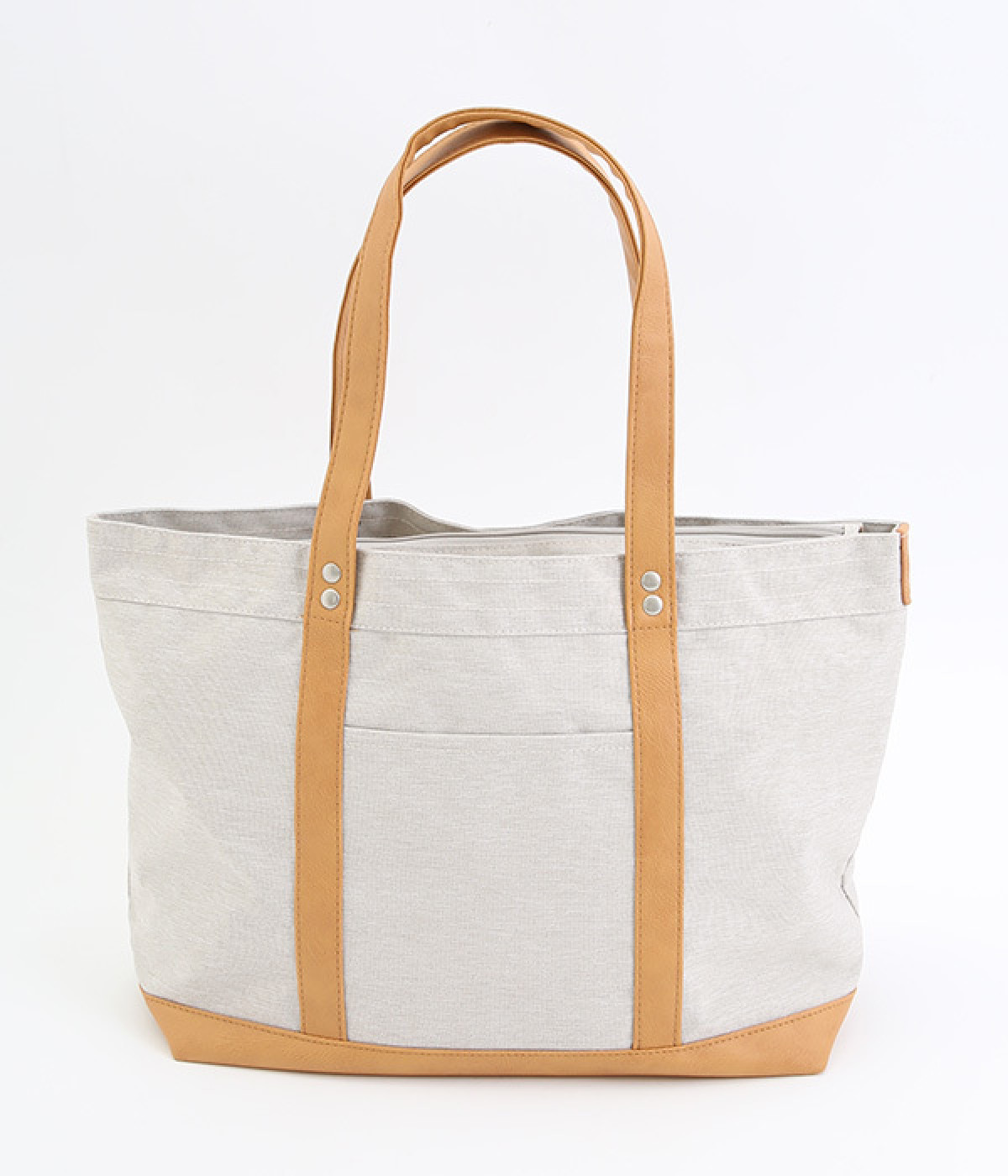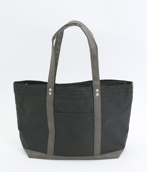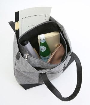 風合いのよいポリ帆布と合皮を使用したトートバッグです。しっかりとした底マチが備わった、A4サイズが楽に収納できる大容量サイジング。充実のポケットと仕切りをつけて、機能性抜群なアイテムに仕立てました。シンプルの中にもきれいめな雰囲気と高級感があり、お出かけシーンでも活躍。サイドに入ったブランド型押しロゴもポイントに。